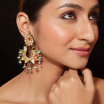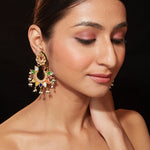 Statement multicolored earrings featuring intricate stonework and a radiant gold-tone finish. Perfectly designed for festive and traditional occasions, adding elegance and charm to any ethnic attire.