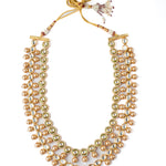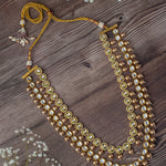 Exquisite multi-layered necklace featuring golden beads & intricate Kundan embellishments, paired with an adjustable cord for versatile styling. Perfect for traditional & festive occasions.
