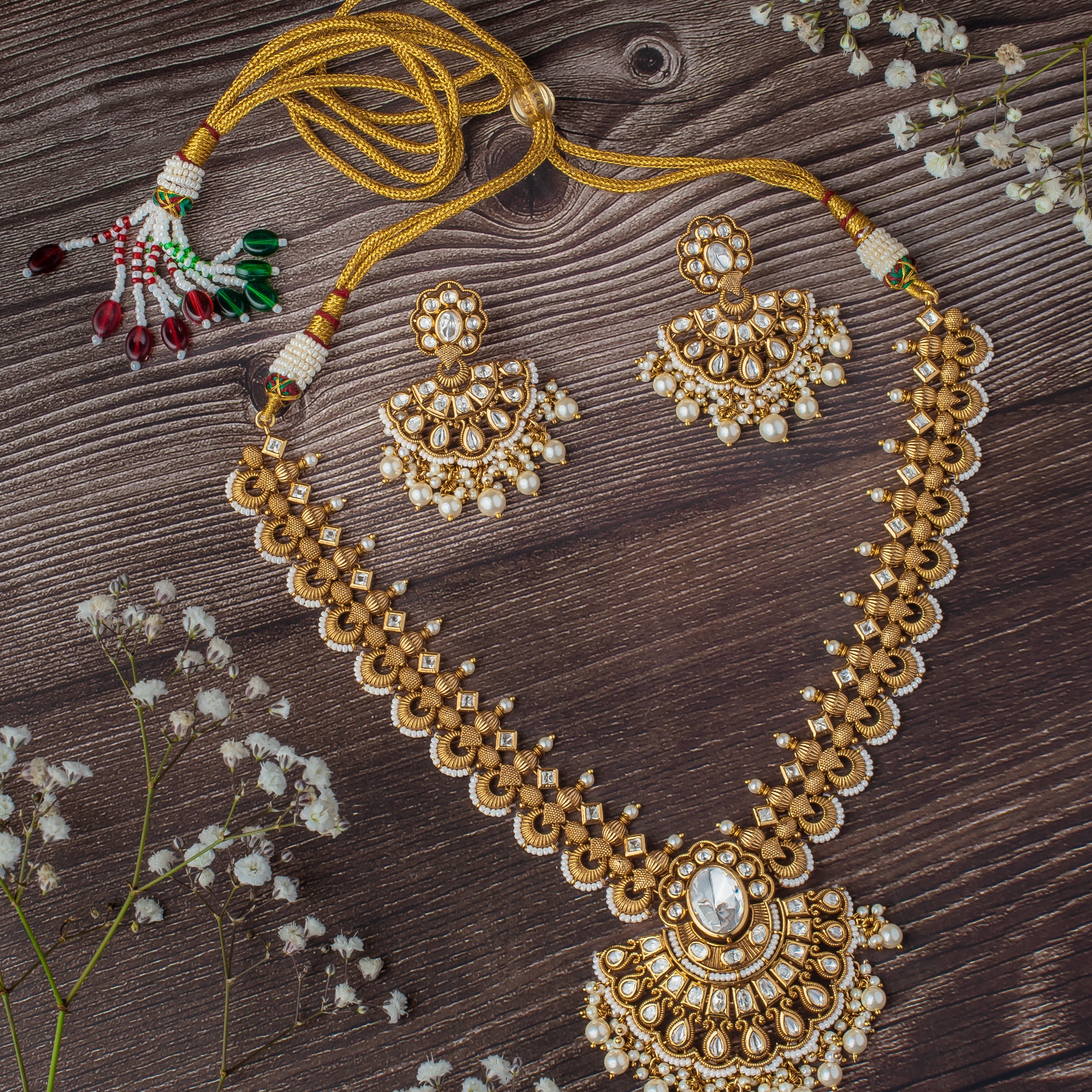 Isvaraah Gold Plated Womens Kundan Polki Short Necklace Set with Pair of Earrings