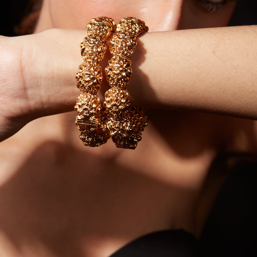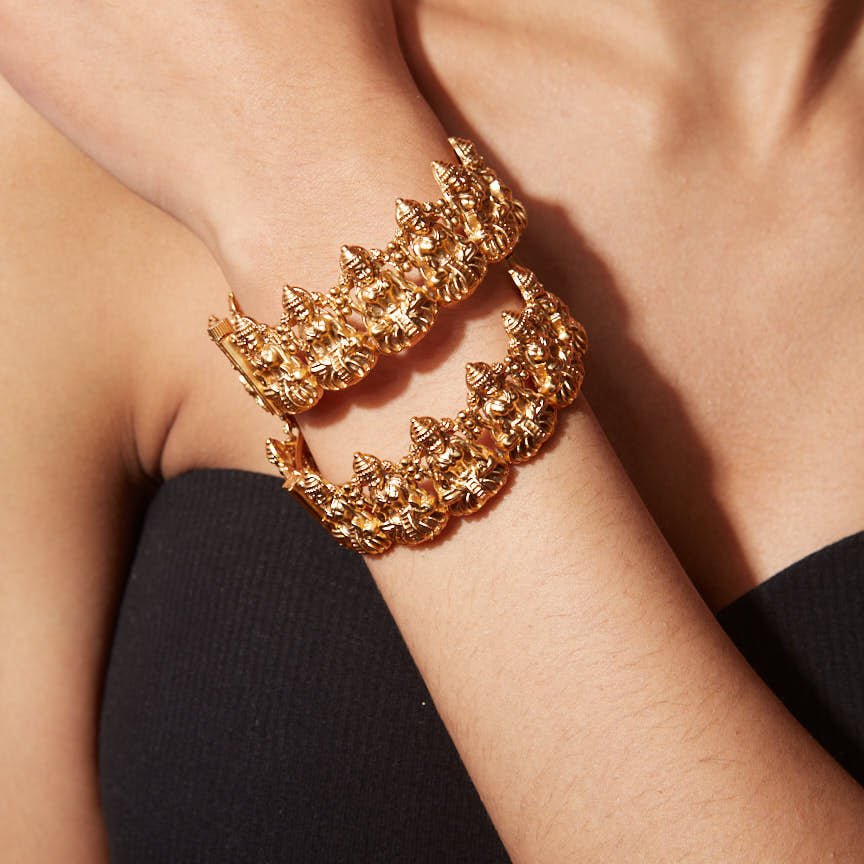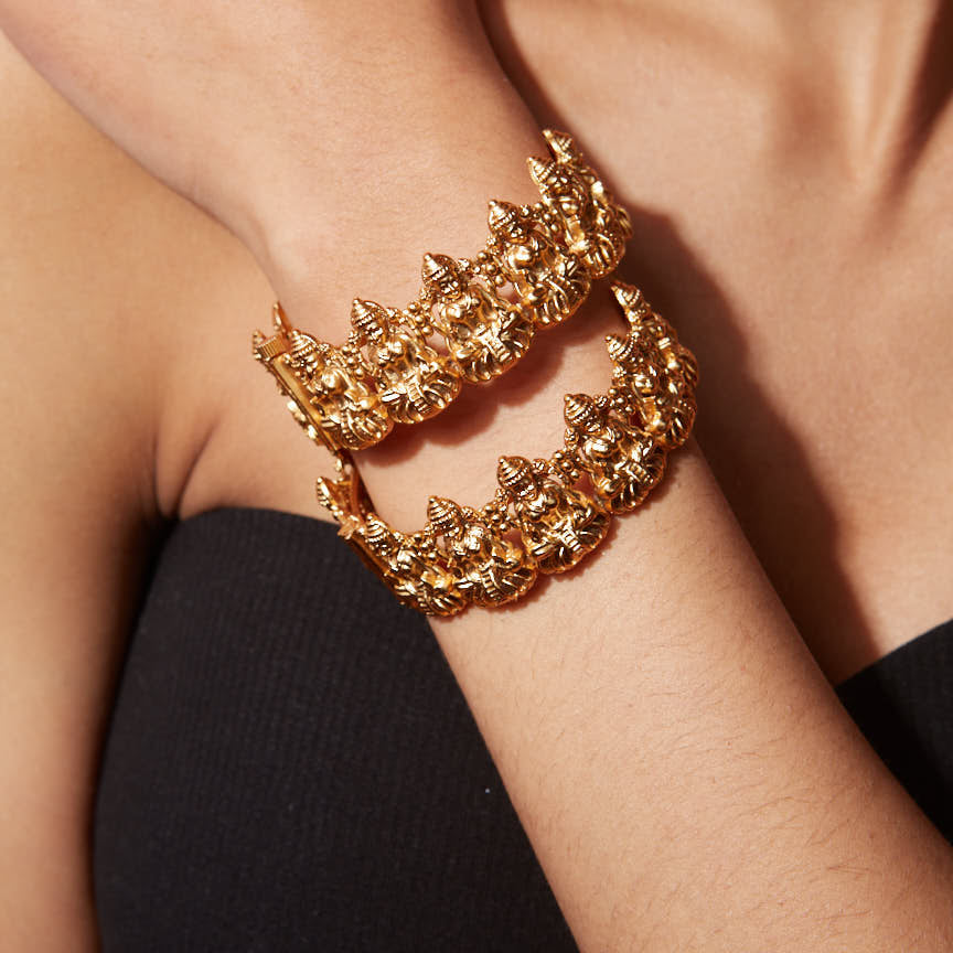 Isvaraah Gold Plated Womens Kundan, Polki Pair of Bangles
