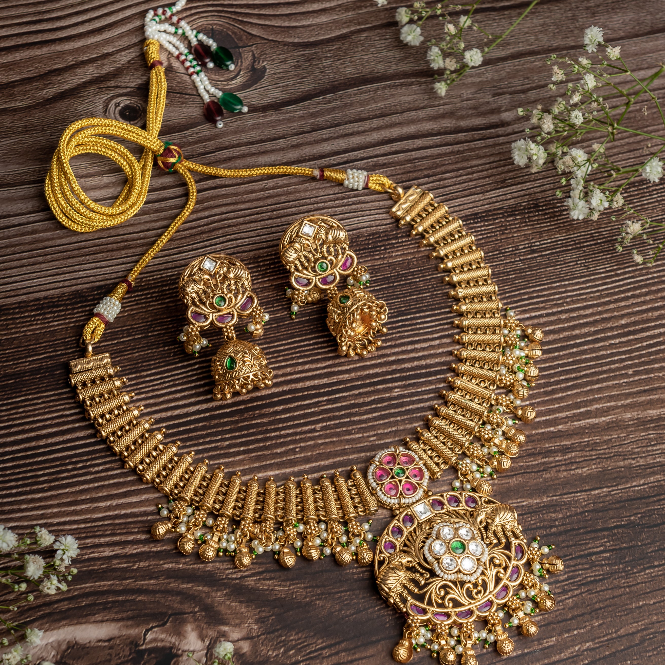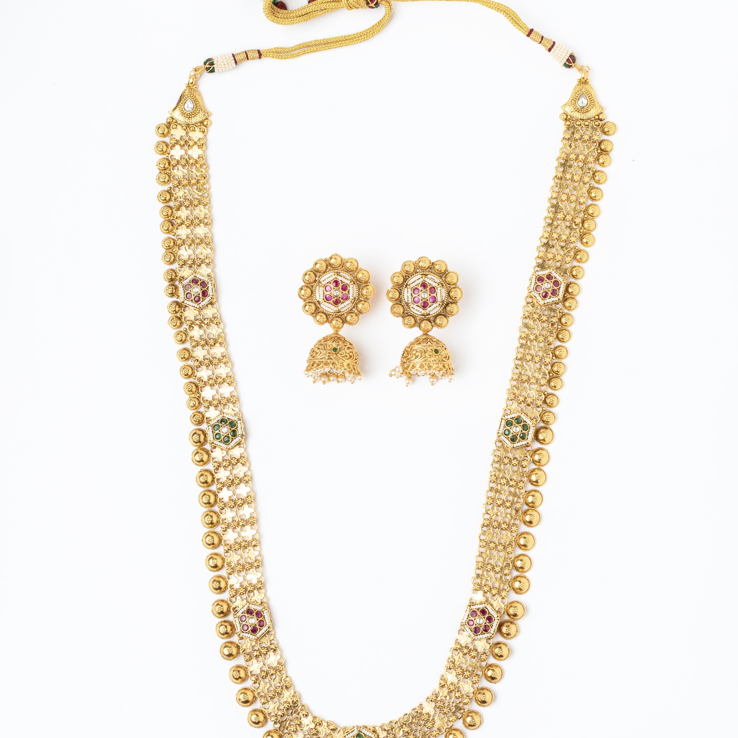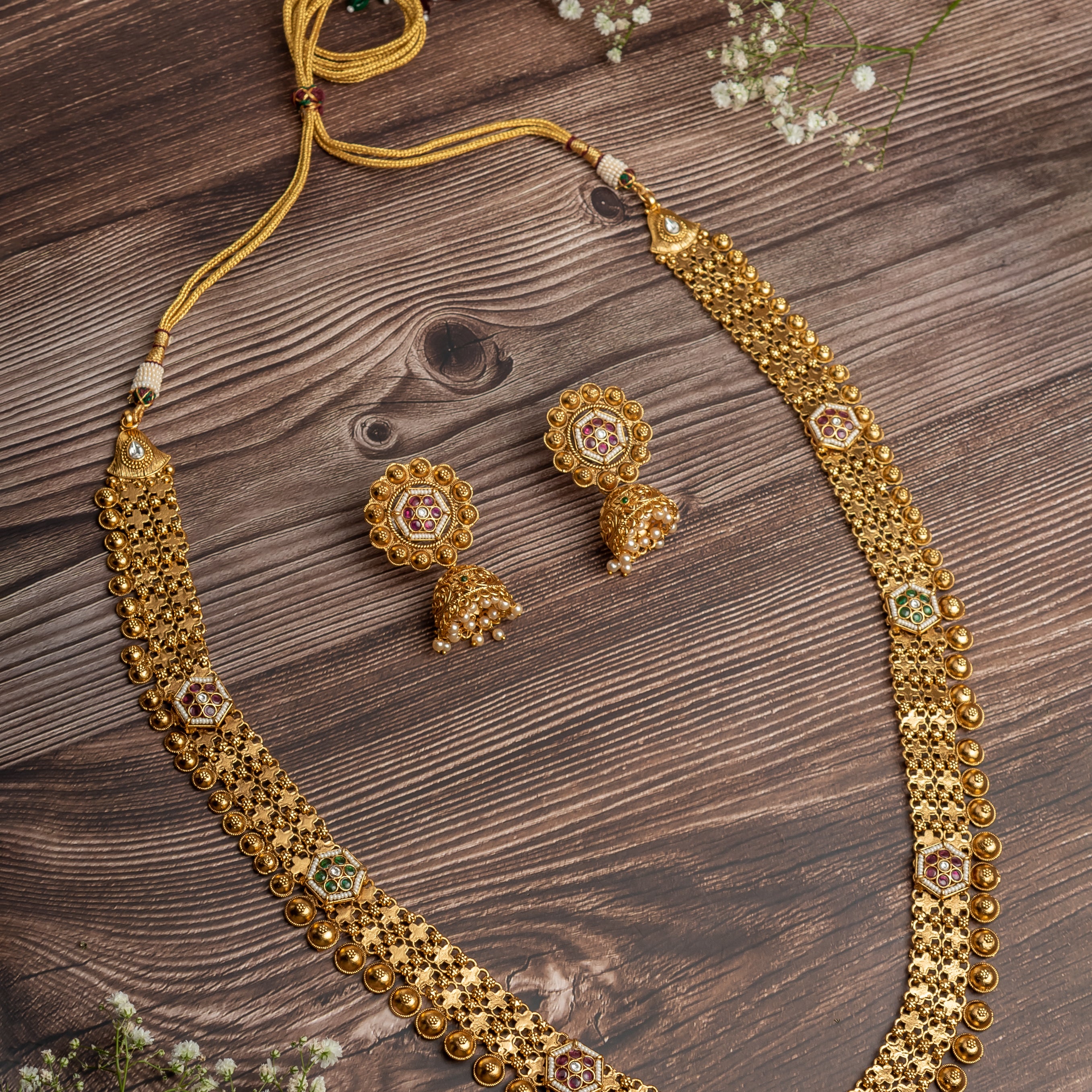 Isvaraah 2.0 Gold Plated Long Necklace Set with Pair of Earrings