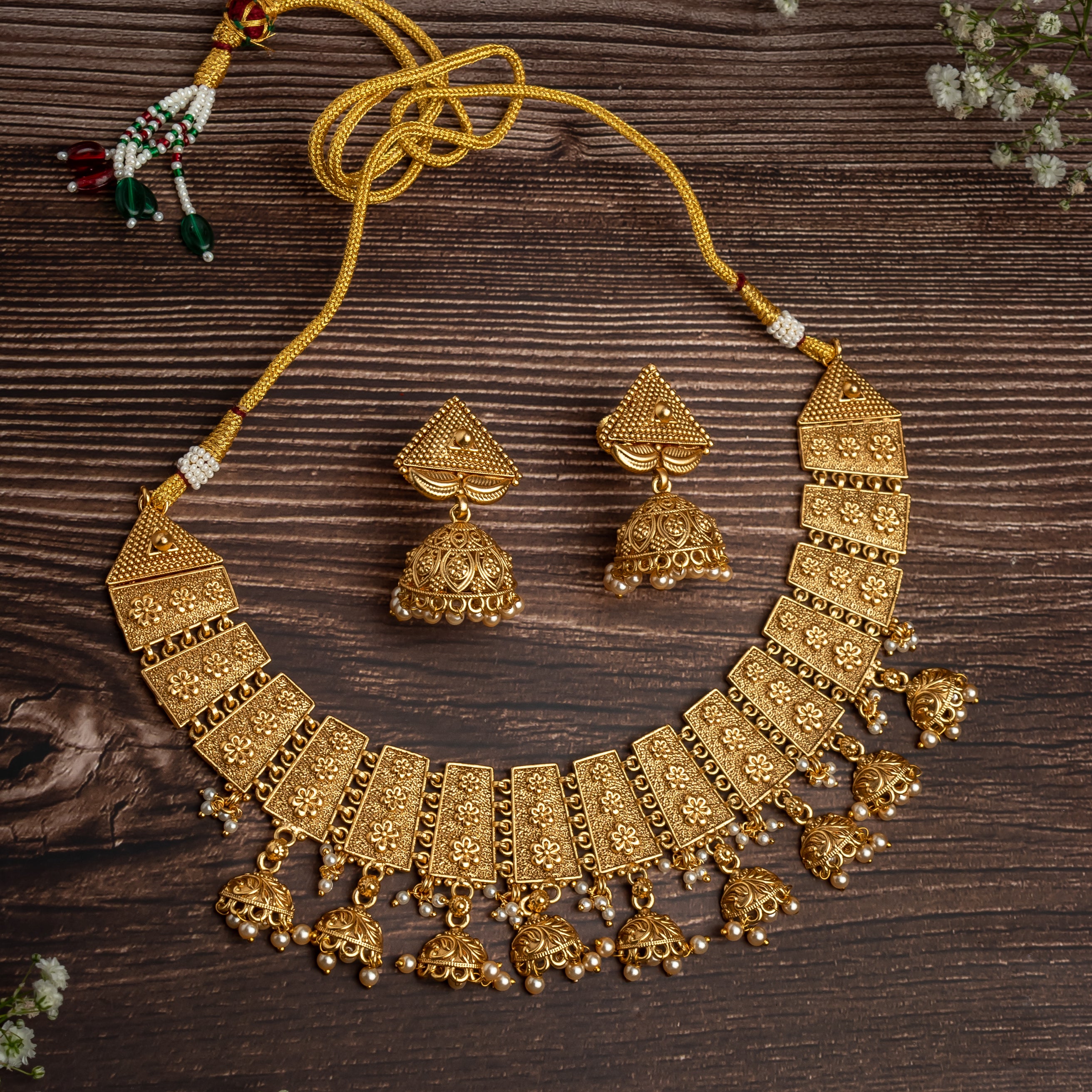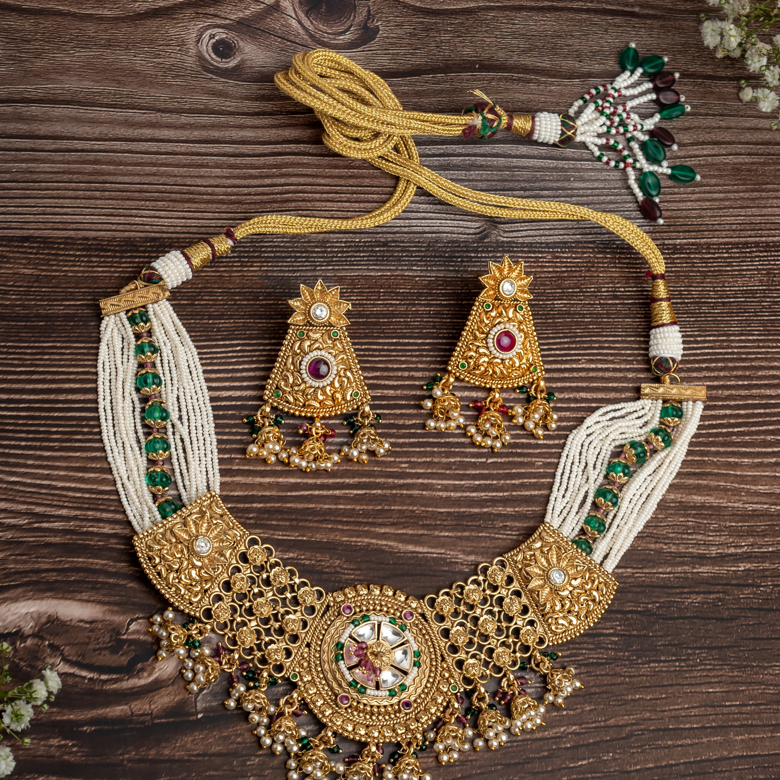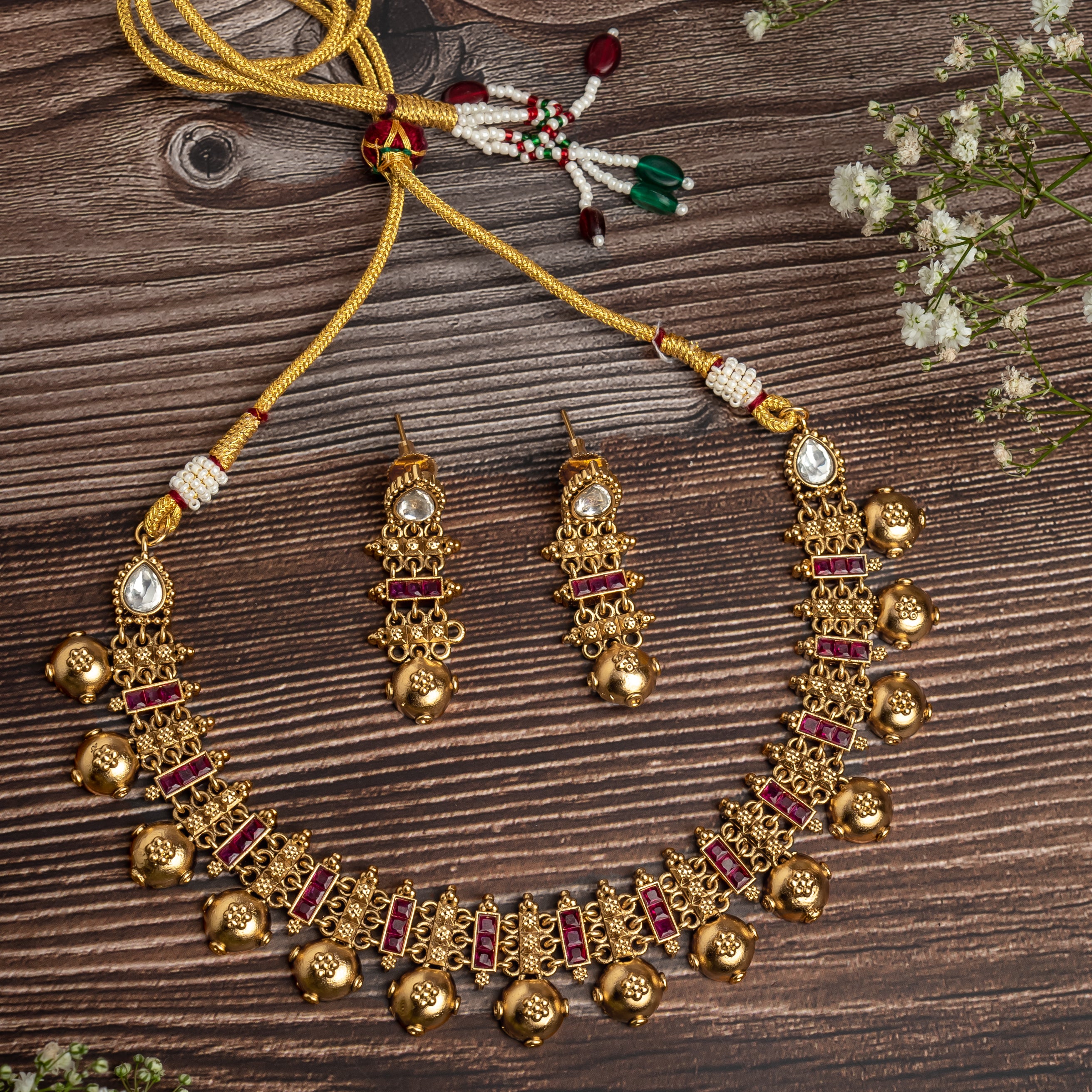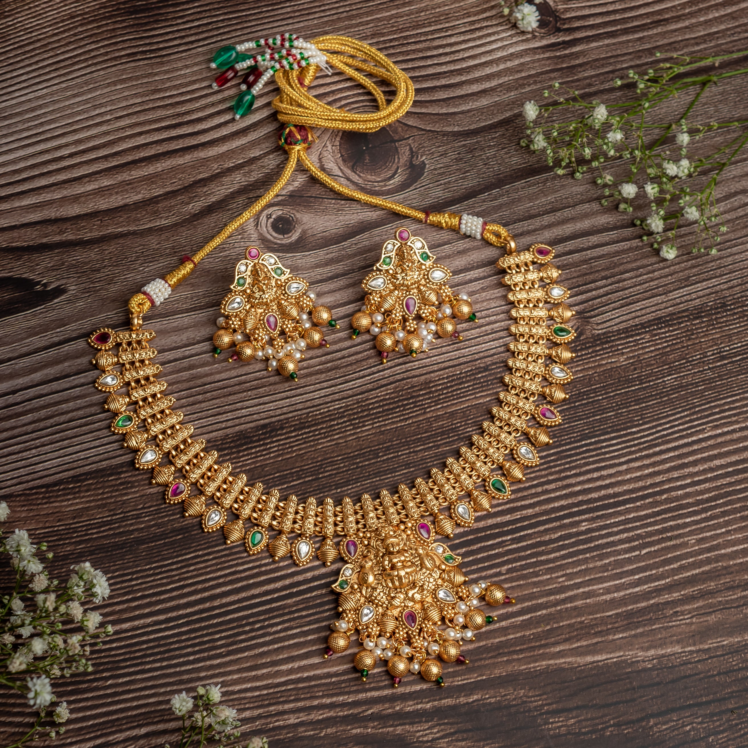 Isvaraah 2.0 Gold Plated Short Necklace Set with Pair of Earrings