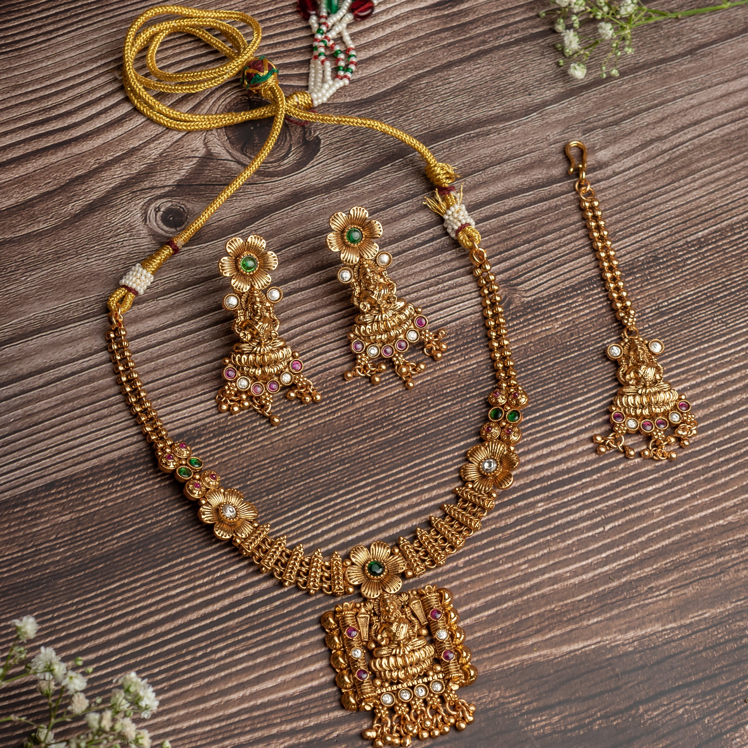 Isvaraah 2.0 Gold Plated Short Necklace Set with Maangtikka & Pair of Earrings