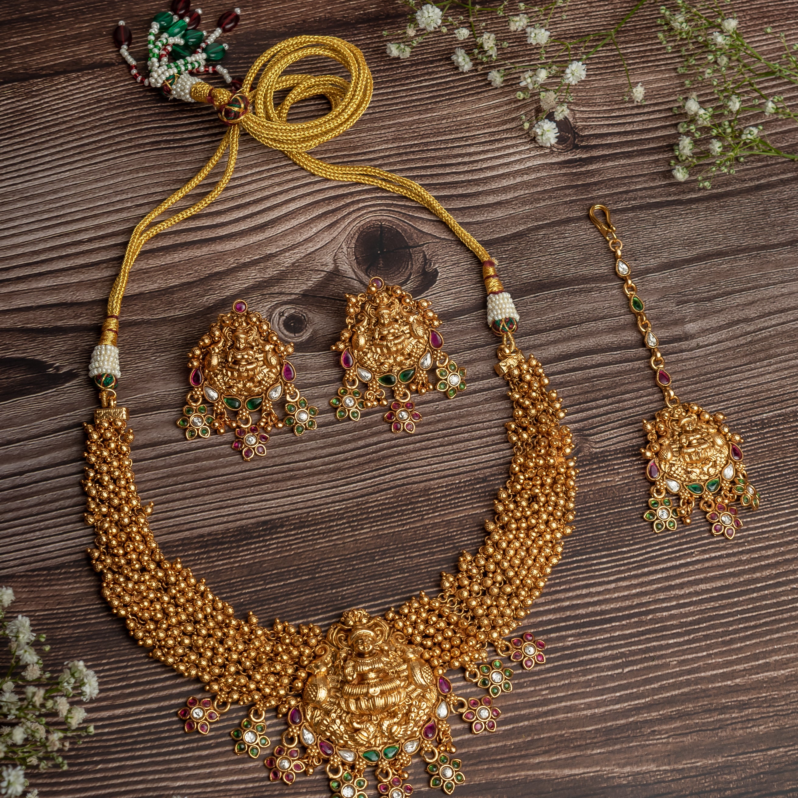 Isvaraah 2.0 Gold Plated Choker Necklace Set with Maangtikka & Pair of Earrings