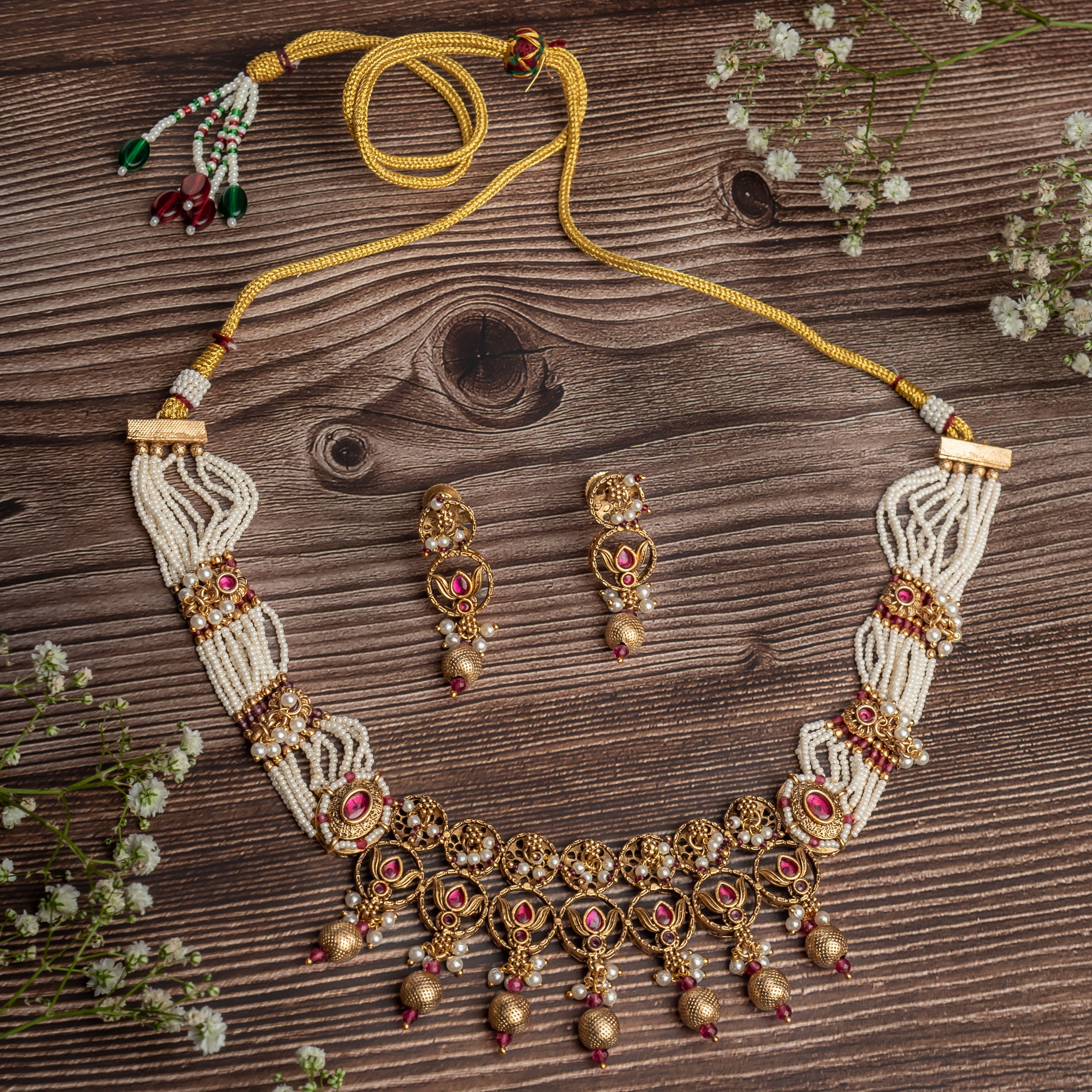 Isvaraah 2.0 Gold Plated White Choker Necklace Set with Pair of Earrings