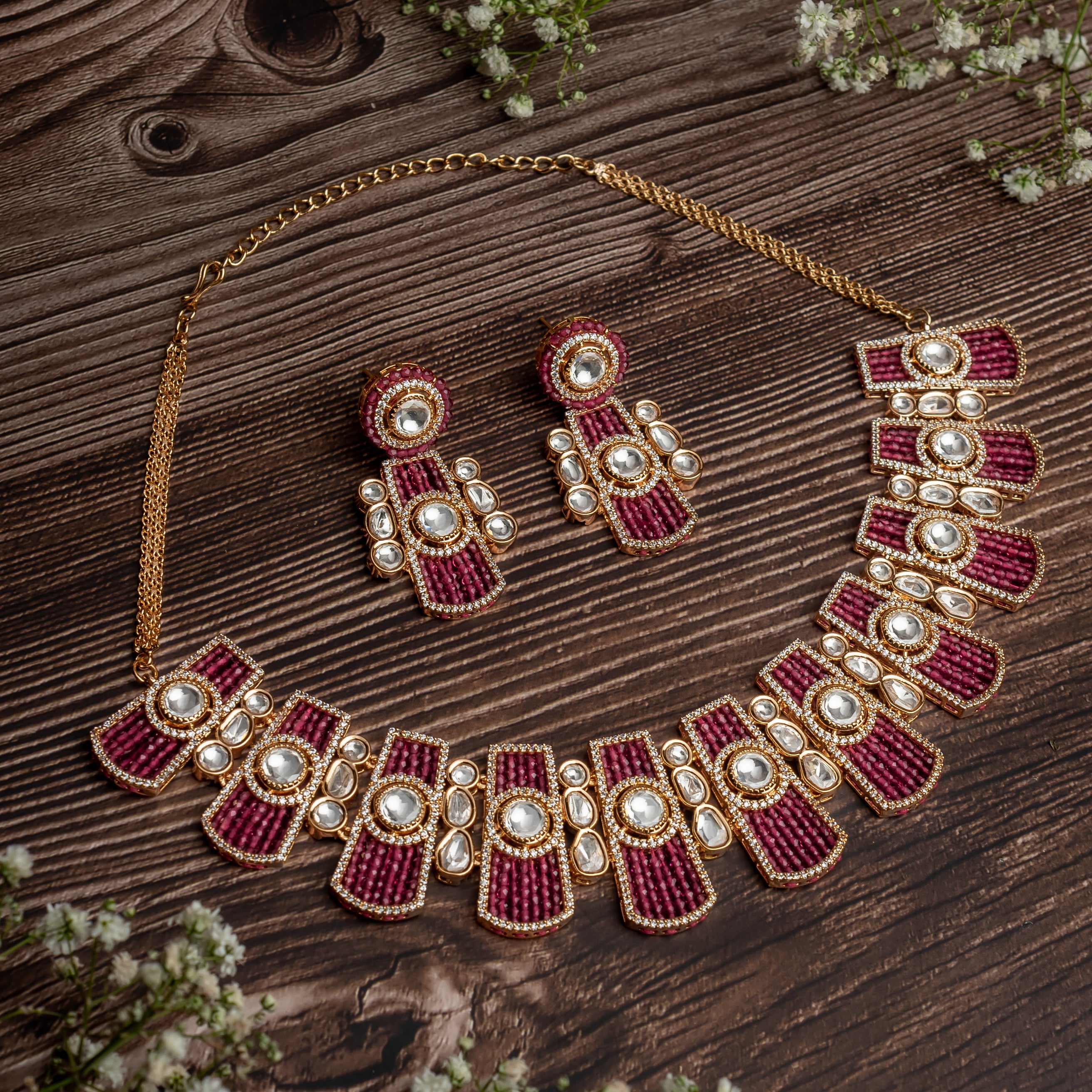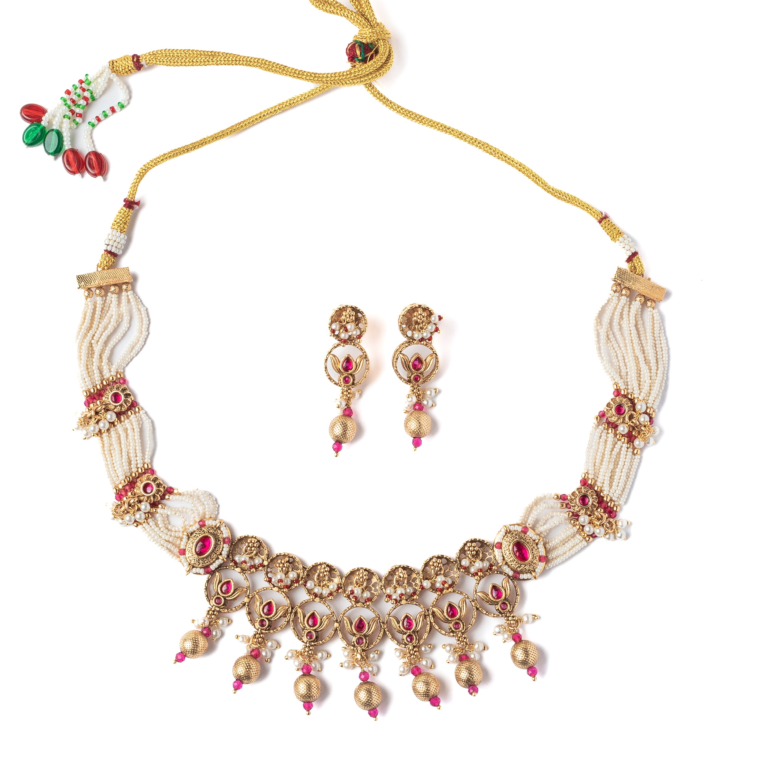 Isvaraah 2.0 Gold Plated Pink Choker Necklace Set with Pair of Earrings
