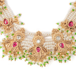 Add grace to your style with this elegant jewelry set, featuring a pearl-adorned necklace and matching earrings. Designed with vibrant accents and intricate detailing, it's perfect for weddings, festivals, and celebrations.