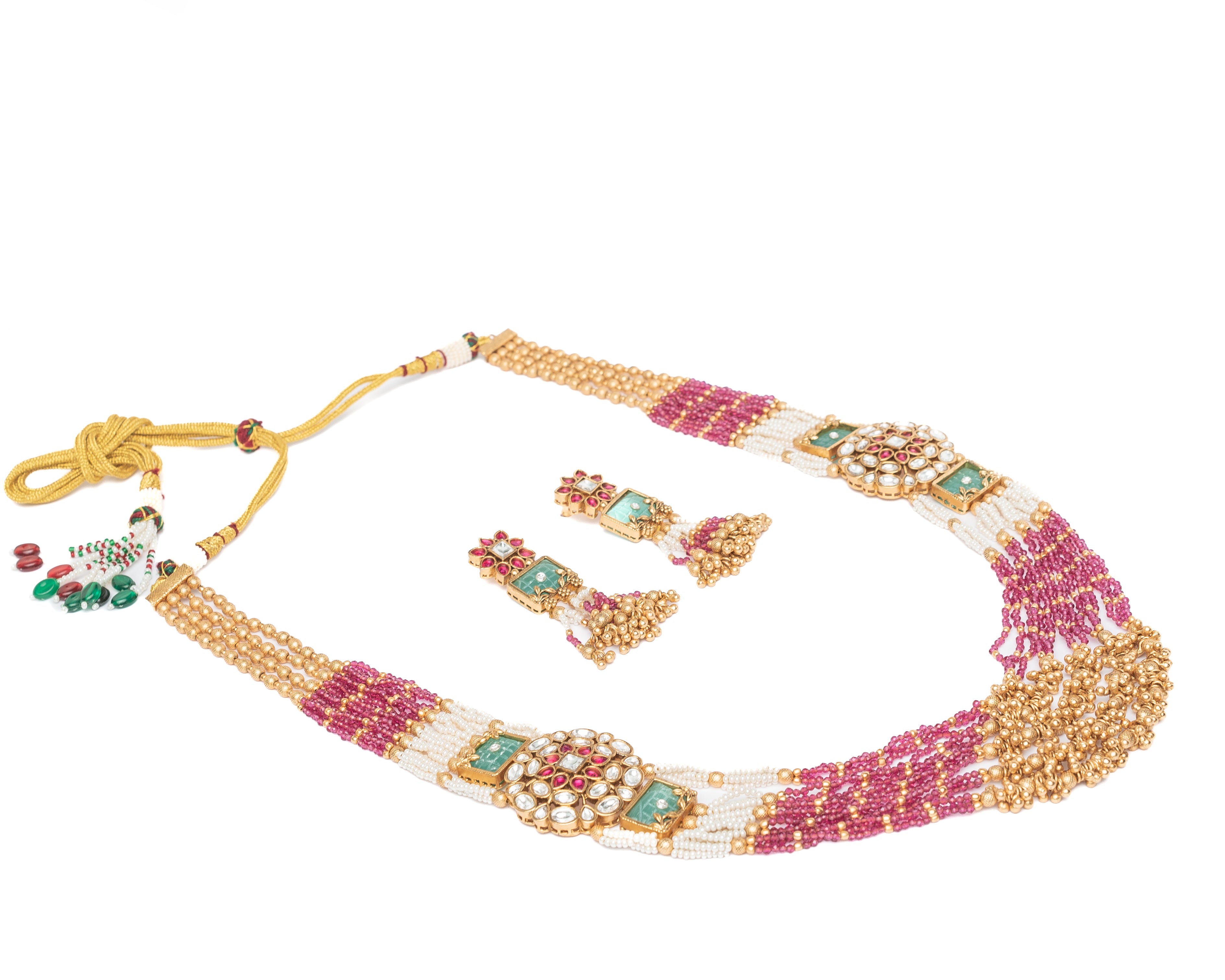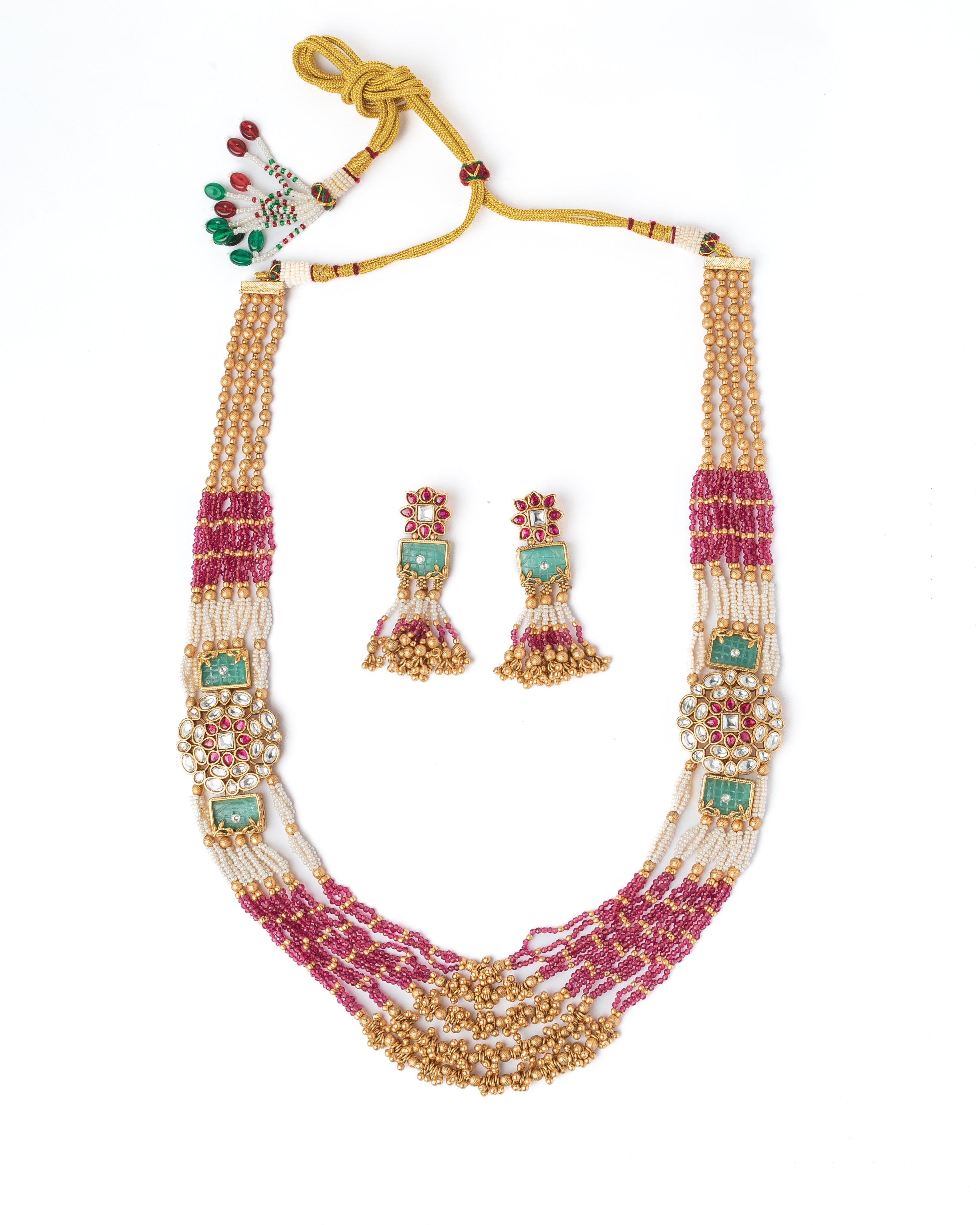 Isvaraah 2.0 Gold Plated Pink Long Necklace Set with Pair of Earrings