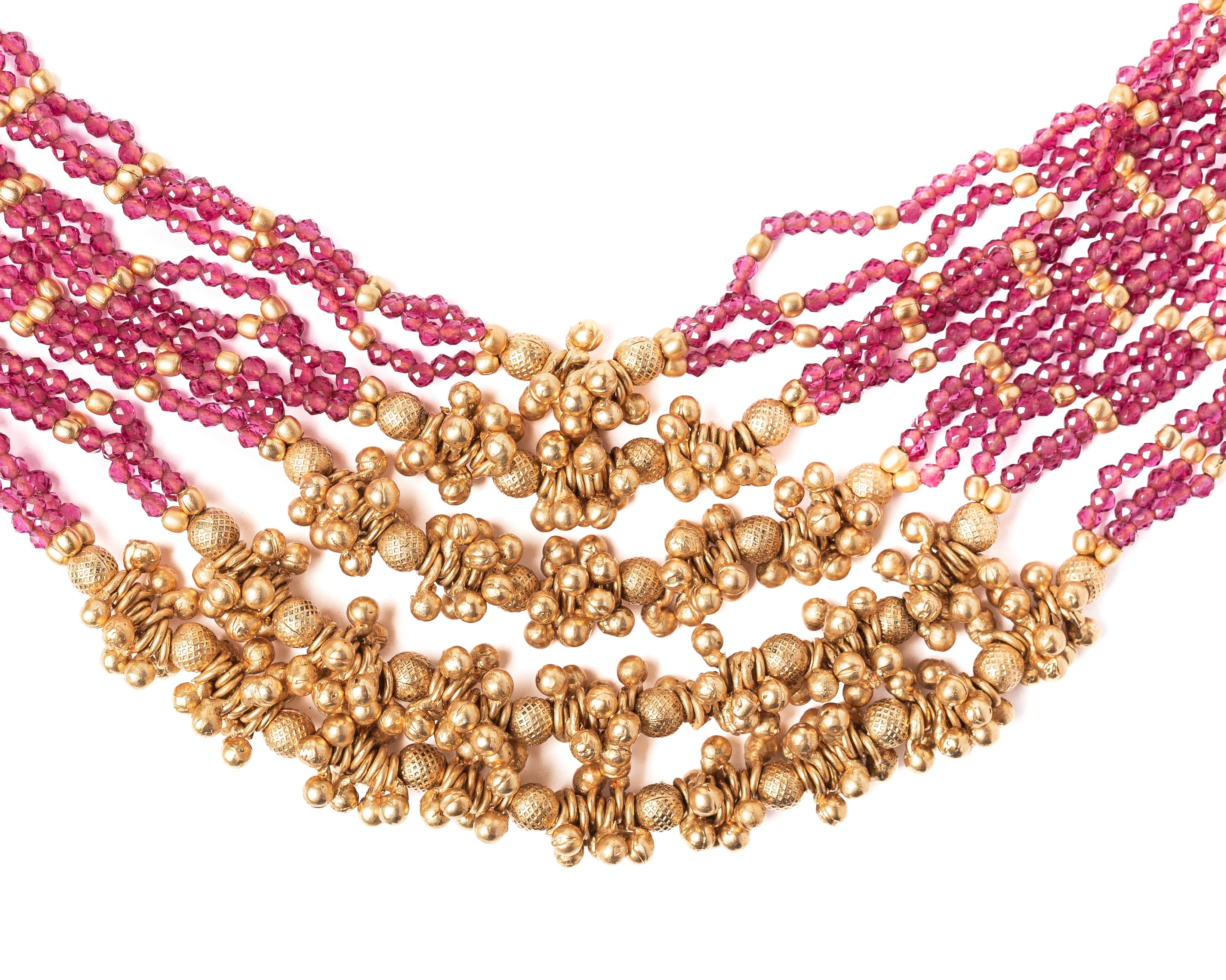 - Elegant Multi-Strand Design: Features layered maroon and pearl beads with intricate floral accents.