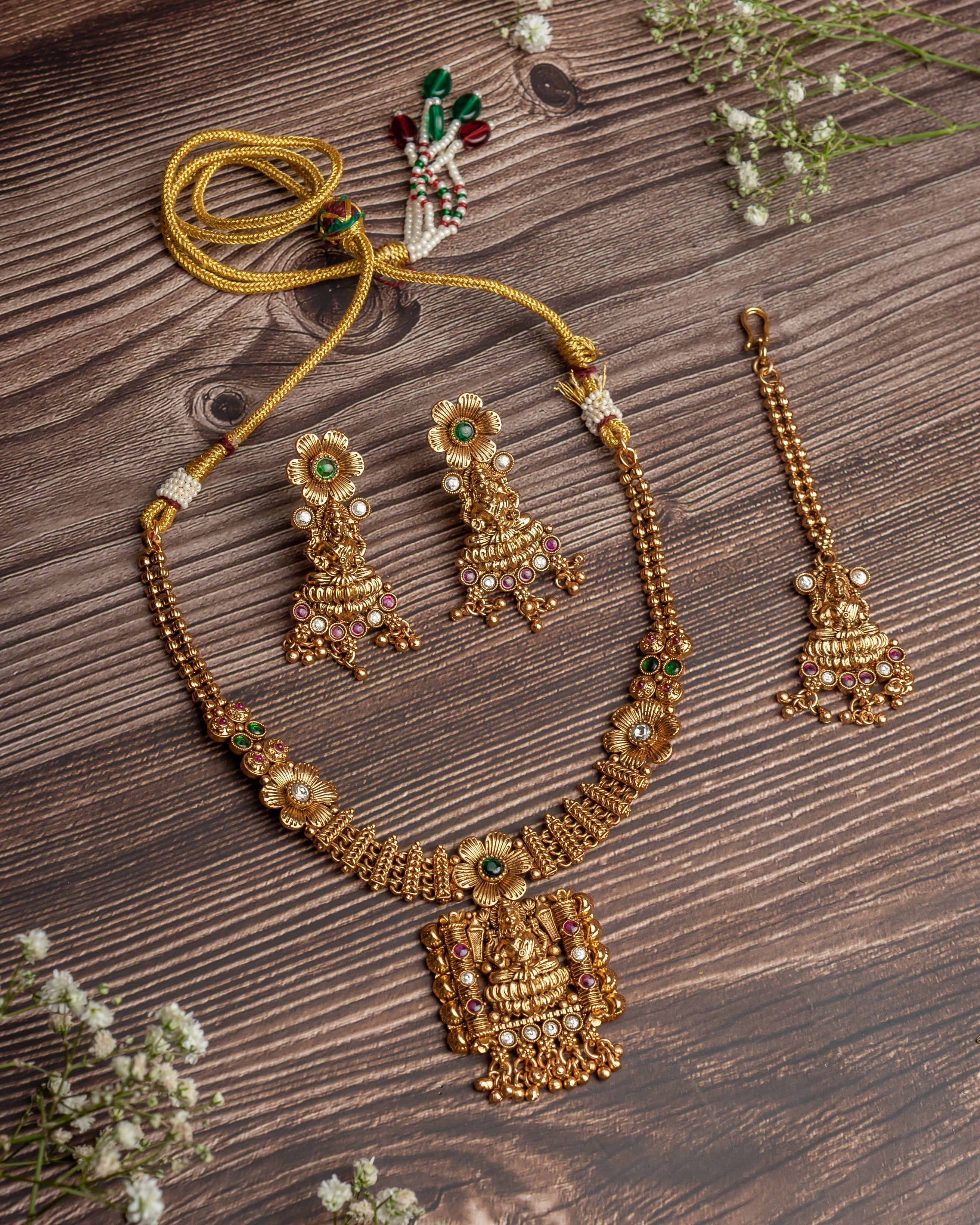 - Complete Set: Includes a necklace, matching earrings, and a maang tikka, offering a cohesive and elegant look.