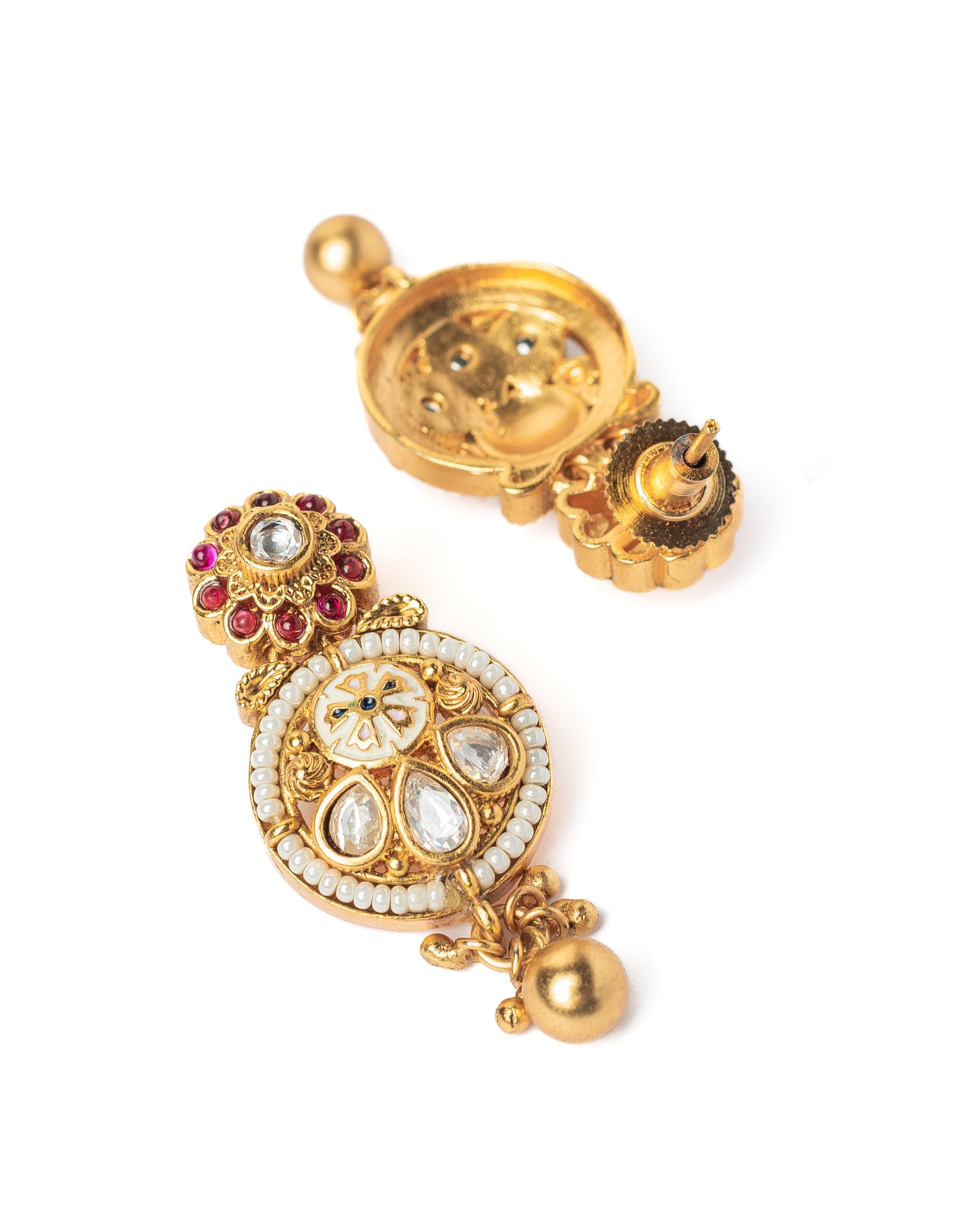 - Floral Motif Design: The central pendant and earrings are adorned with intricate floral patterns for a timeless appeal.