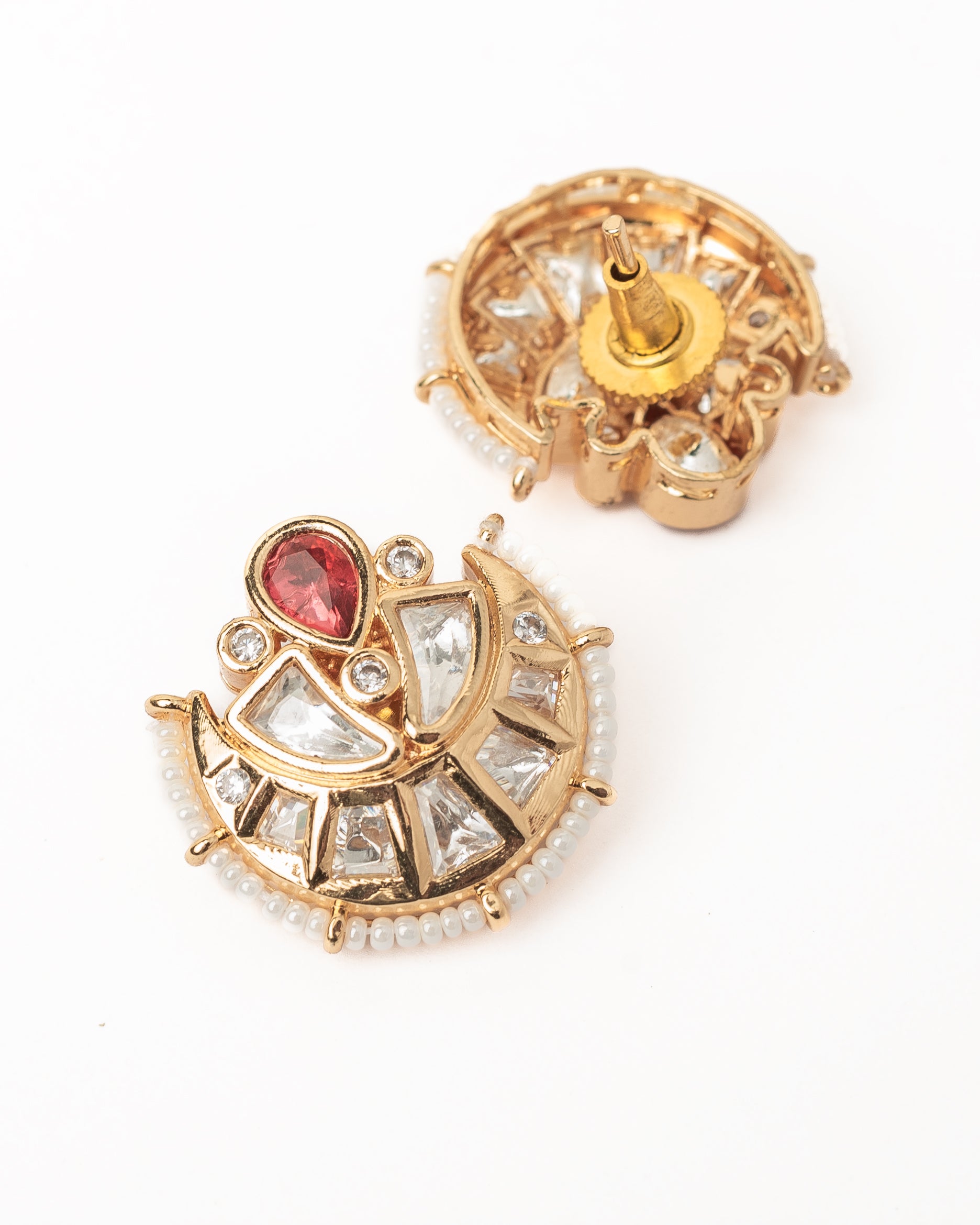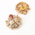 - Statement Pendant Design: Features intricate gold-toned pendants with white and red stone detailing, creating a luxurious focal point.