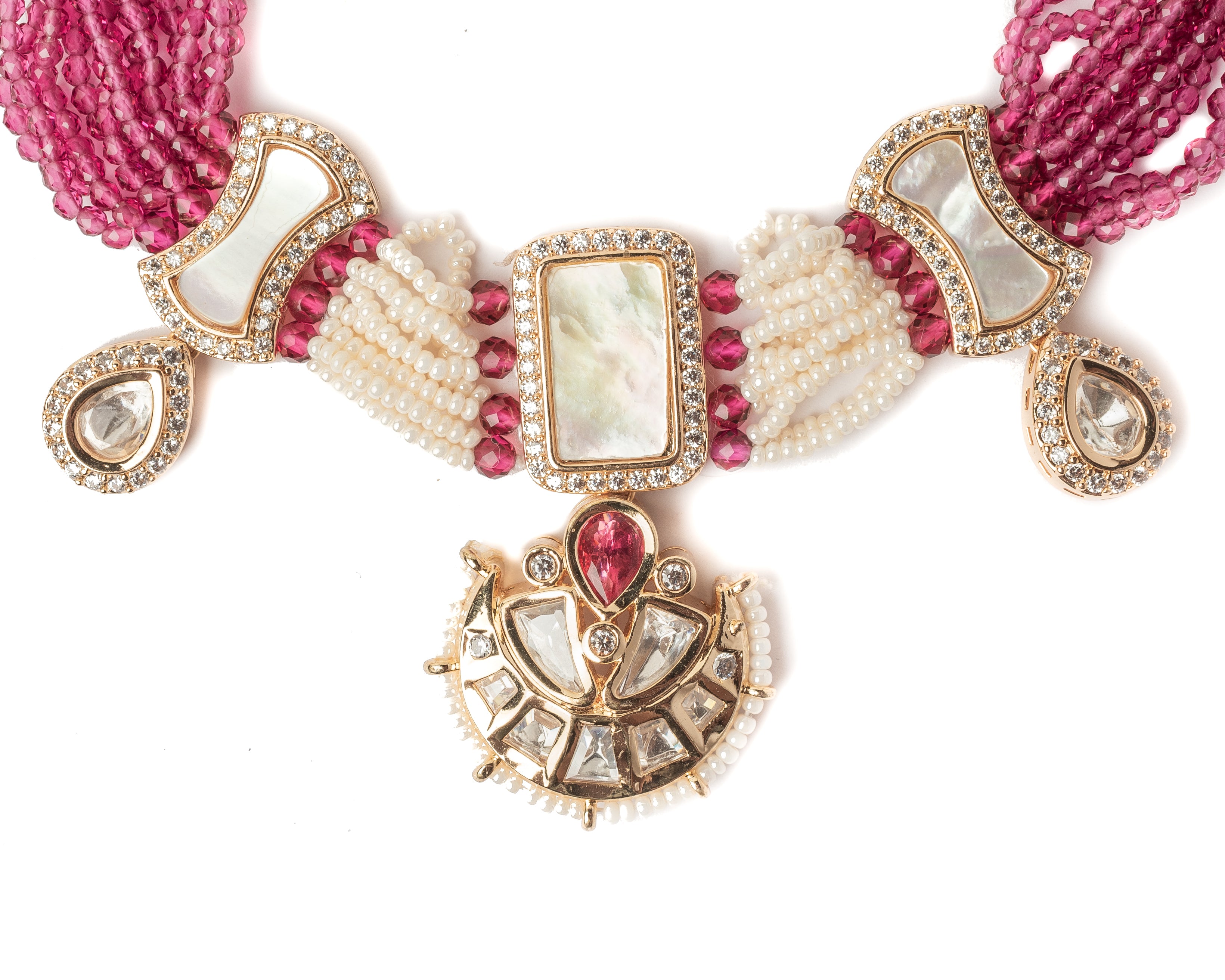 Isvaraah 2.0 Gold Plated Pink Choker Necklace Set with Pair of Earrings