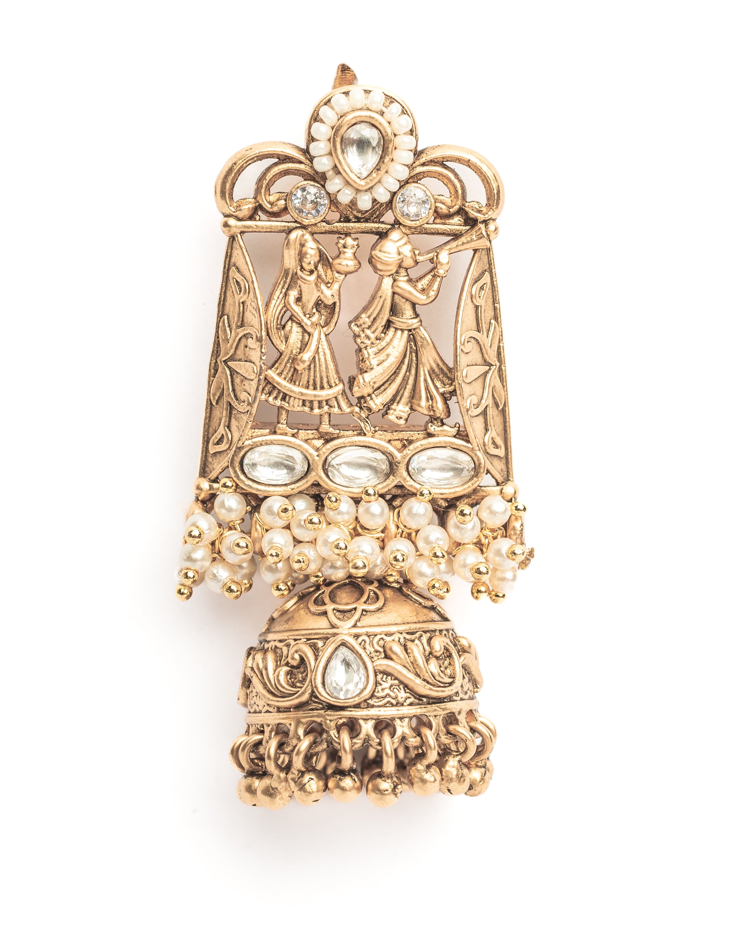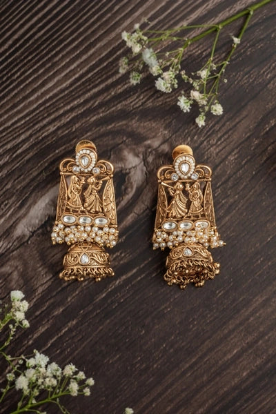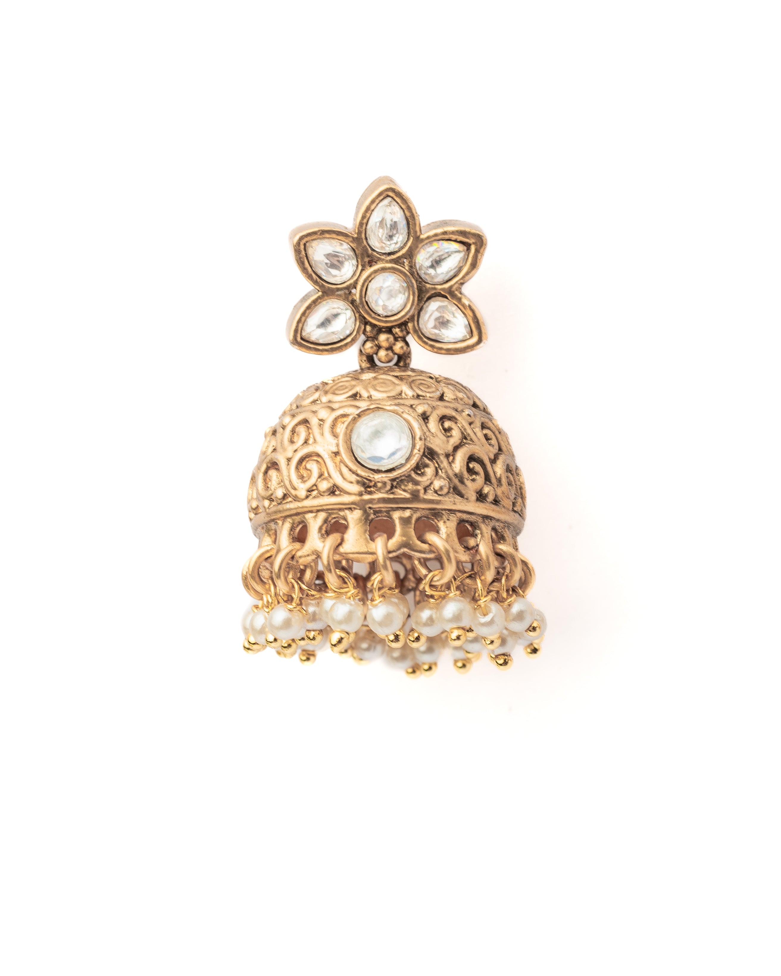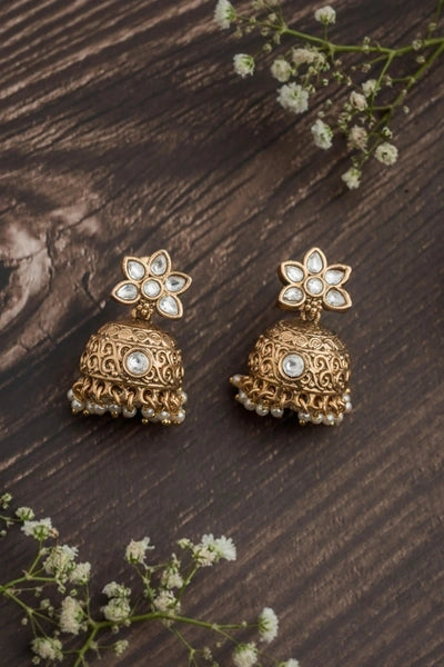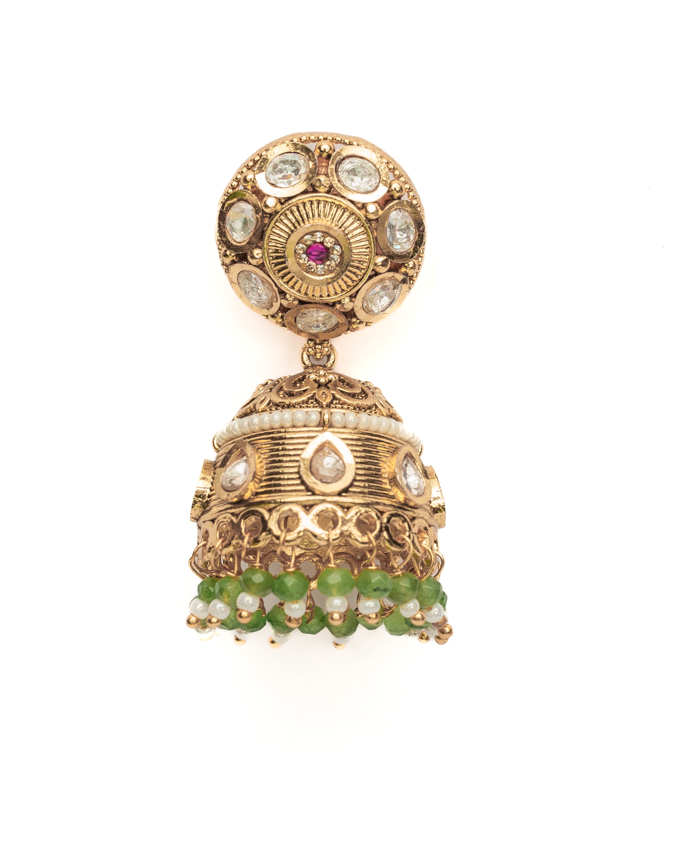 Gold Plated Kundan Studded Beads Drop Jhumka Earrings