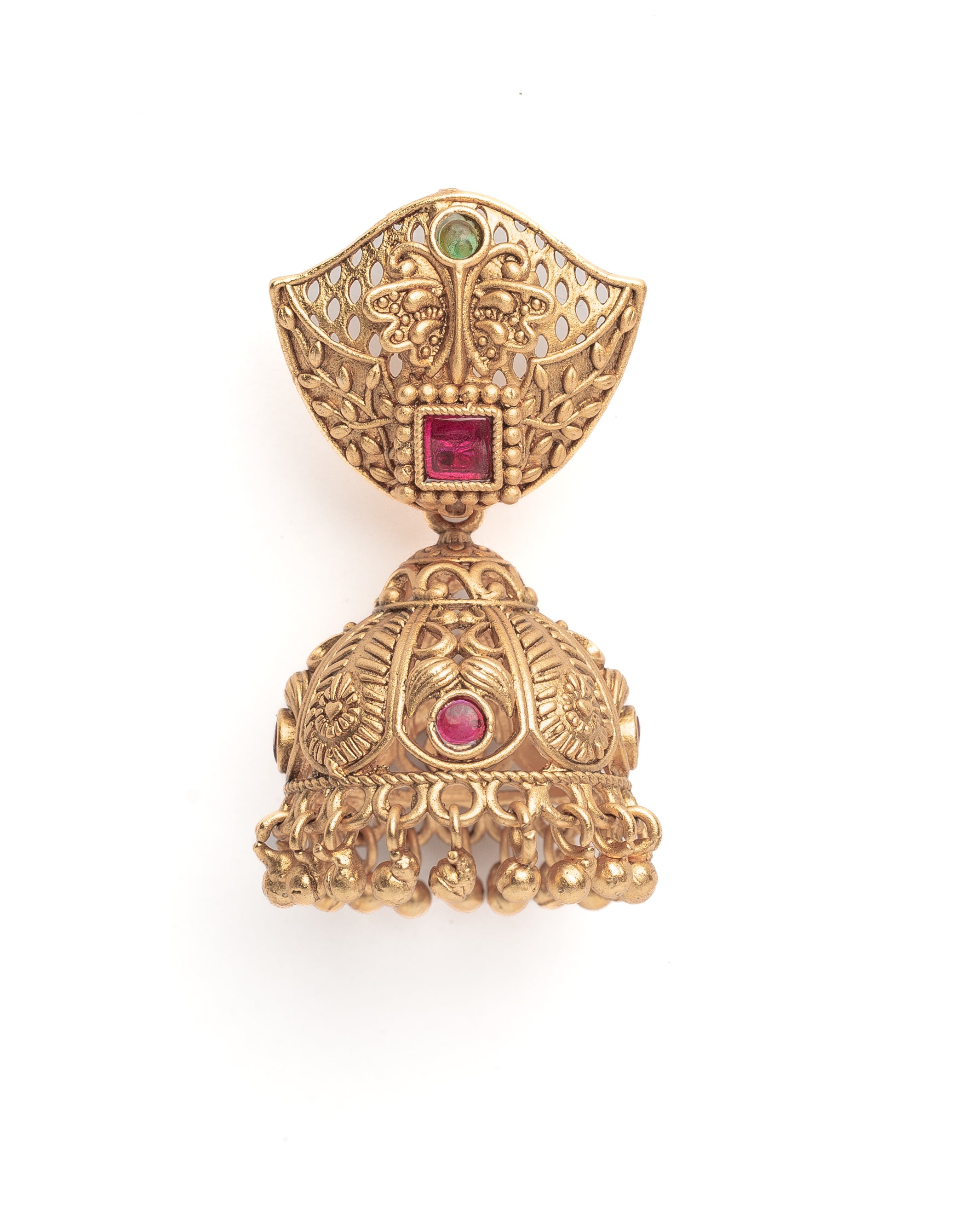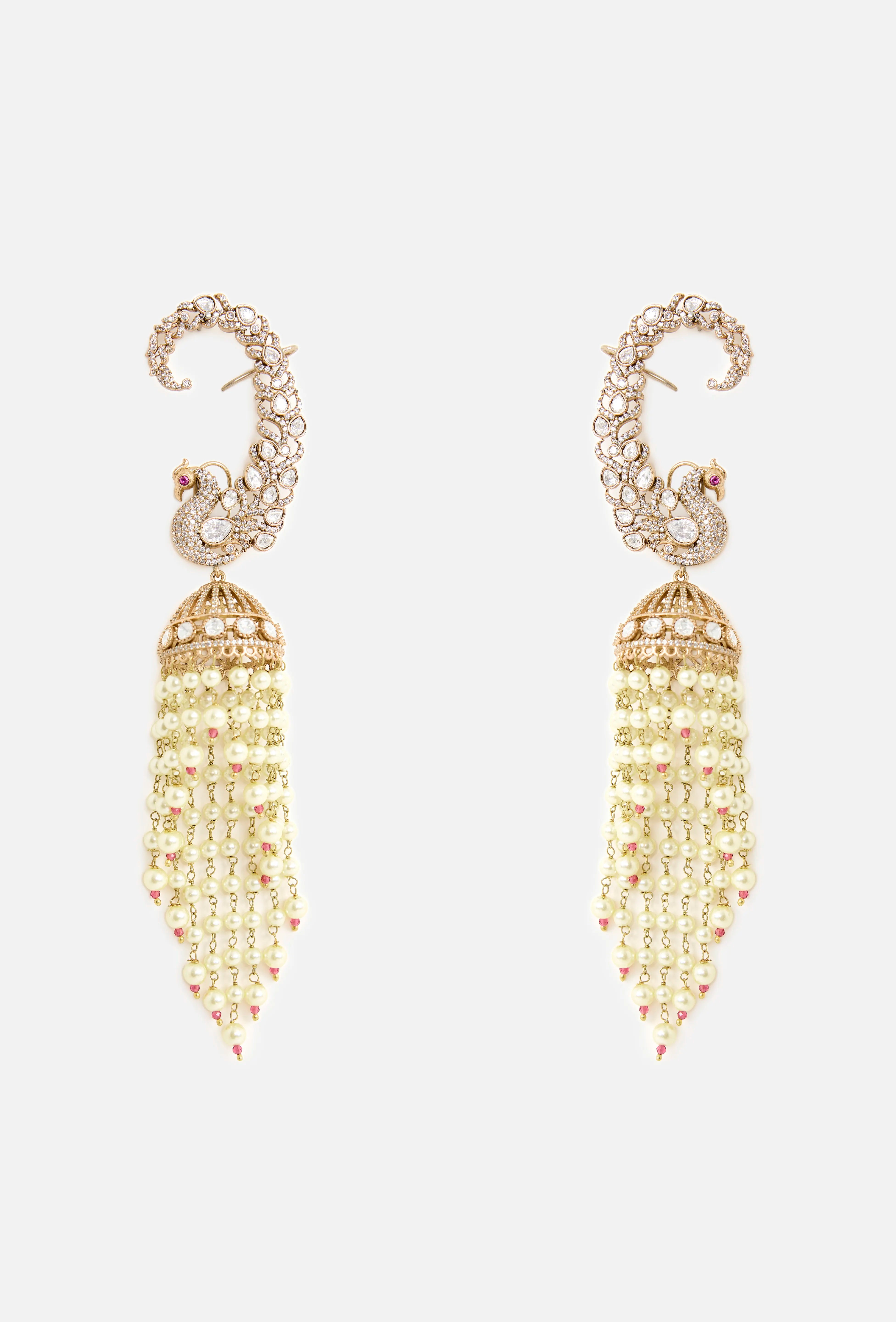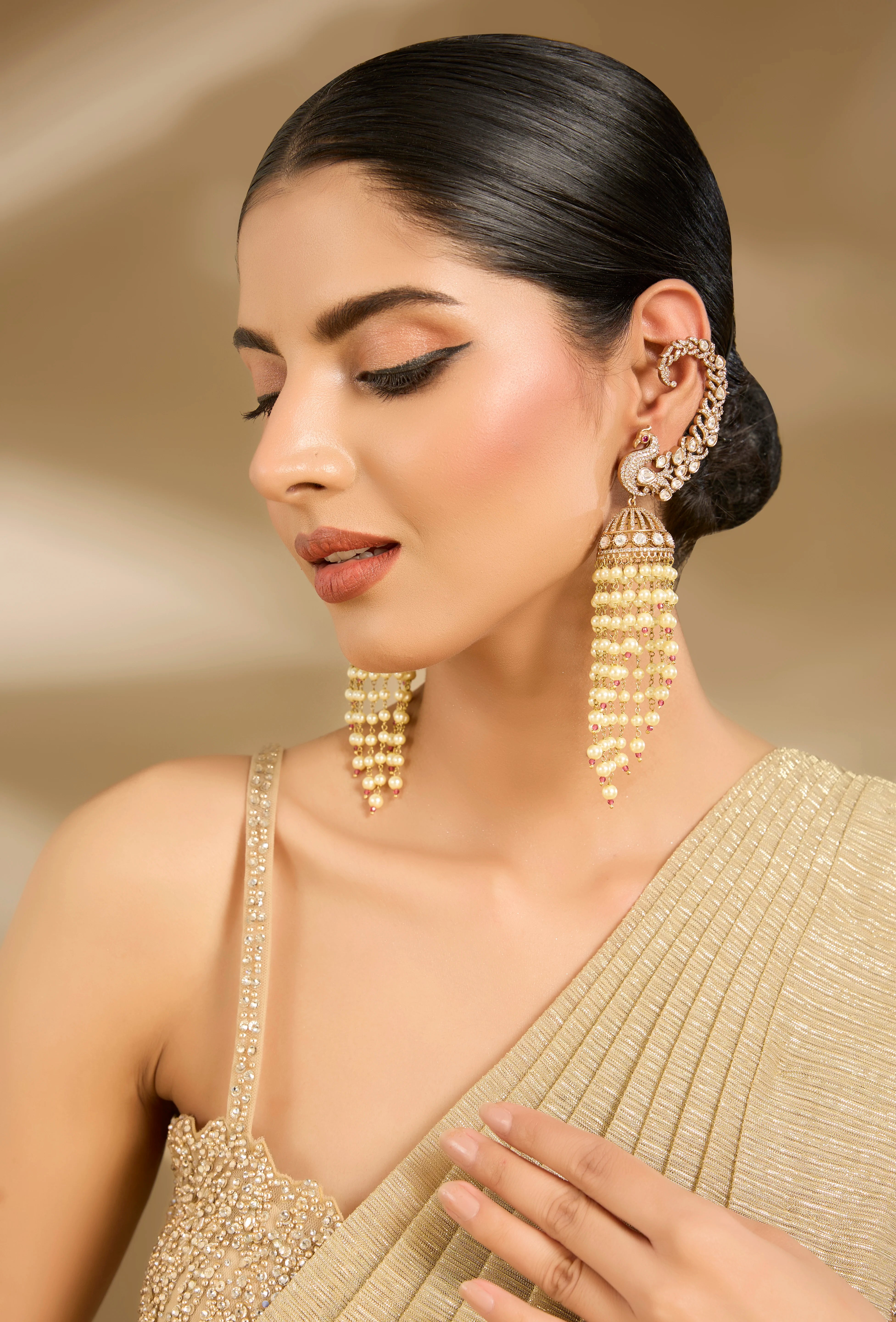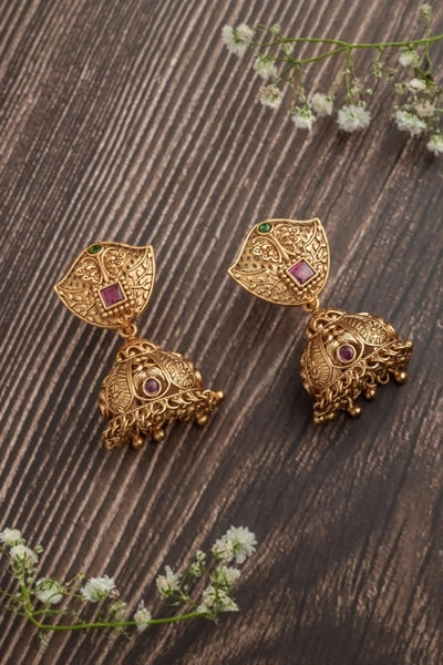Gold Plated Kundan Studded Beads Drop Jhumka Earrings