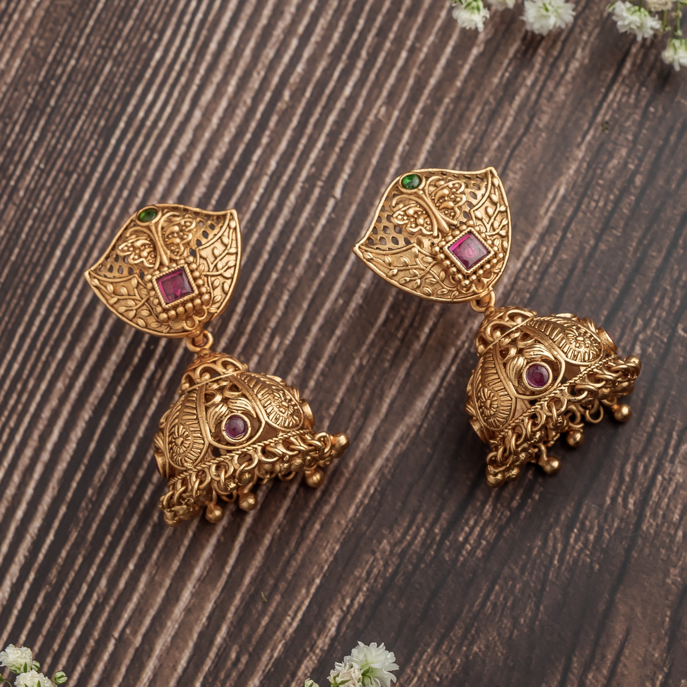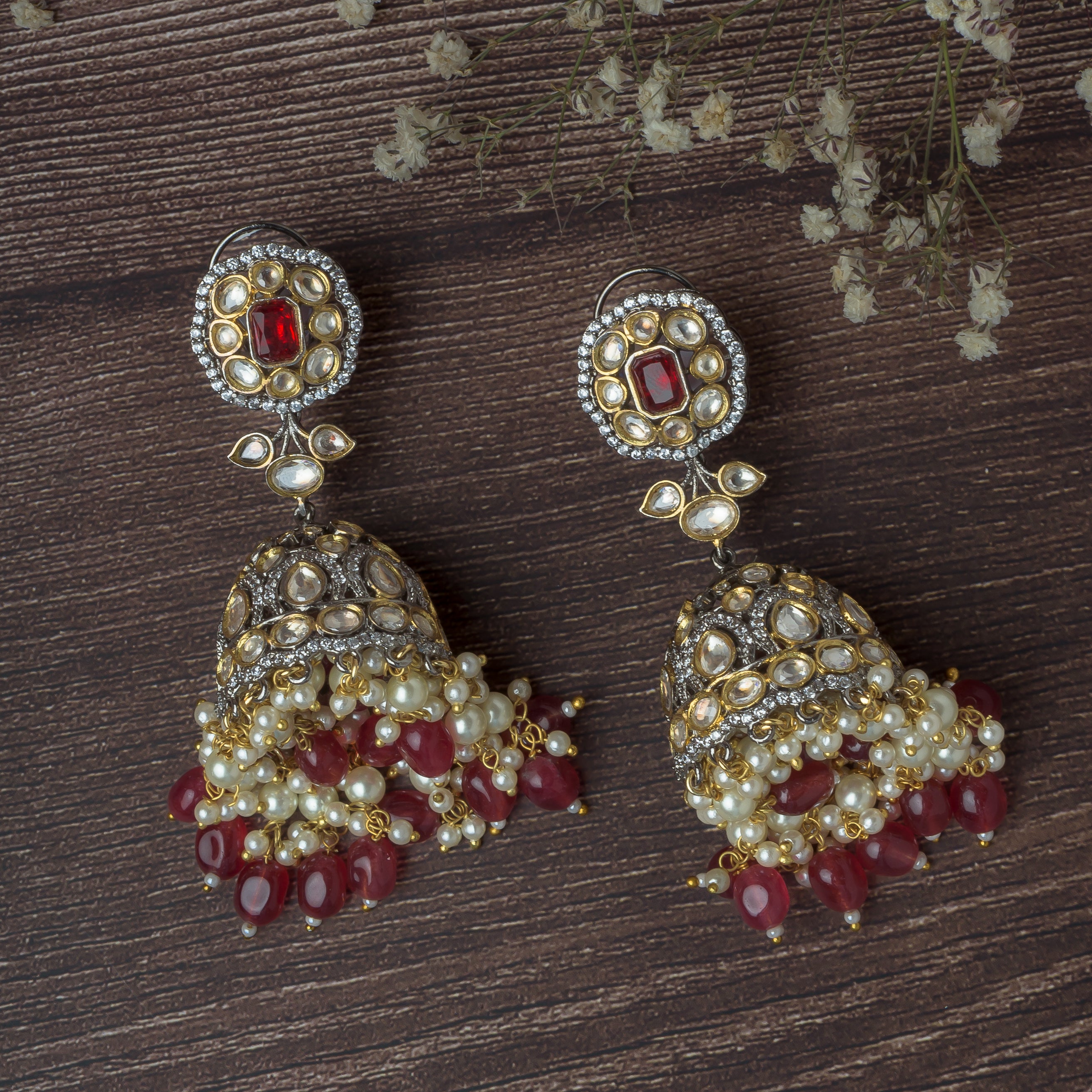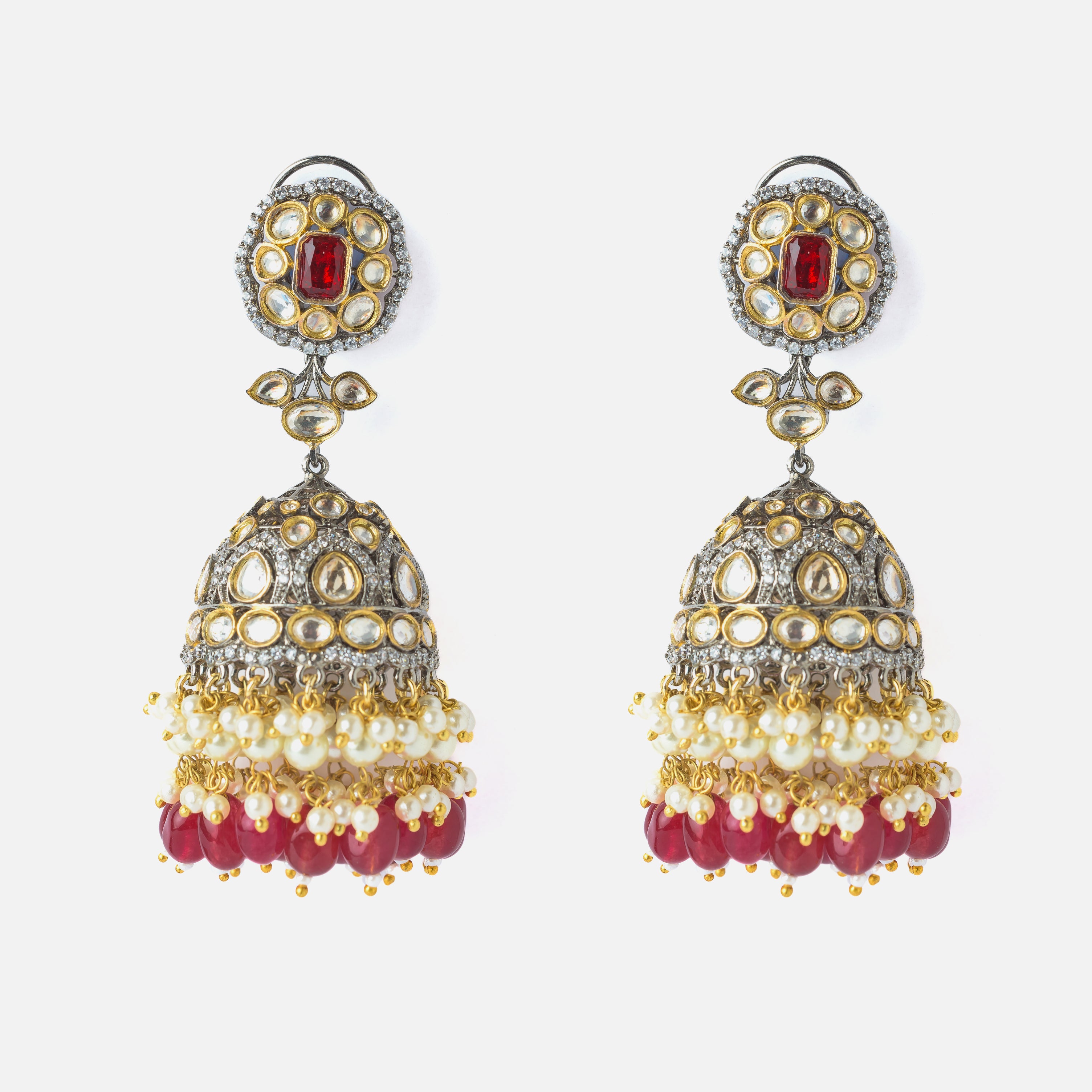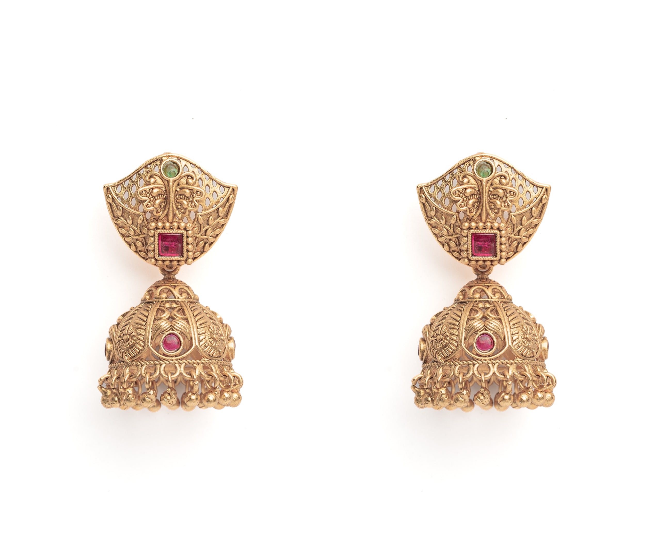 Gold Plated Red Womens Pair of Jhumka Earrings