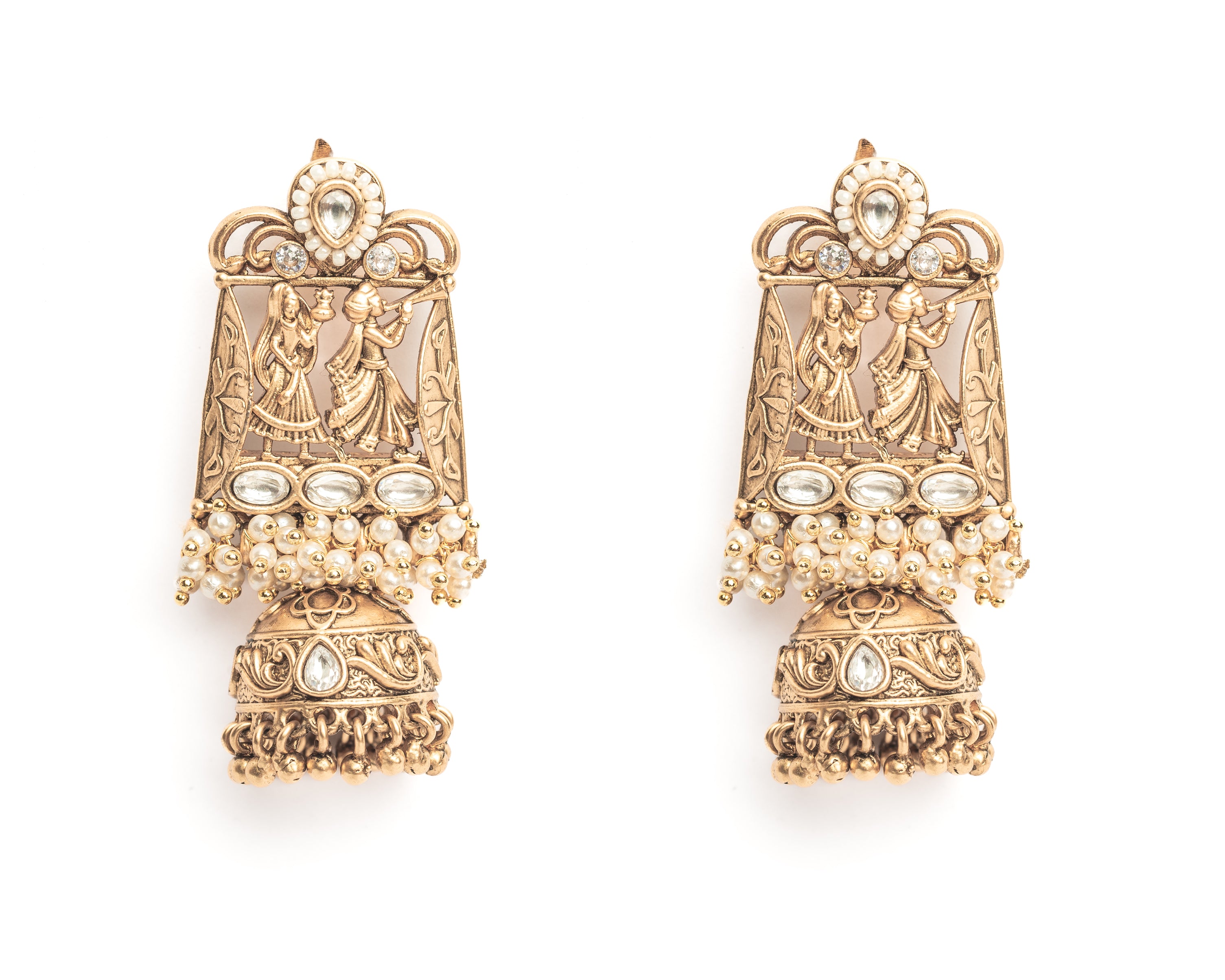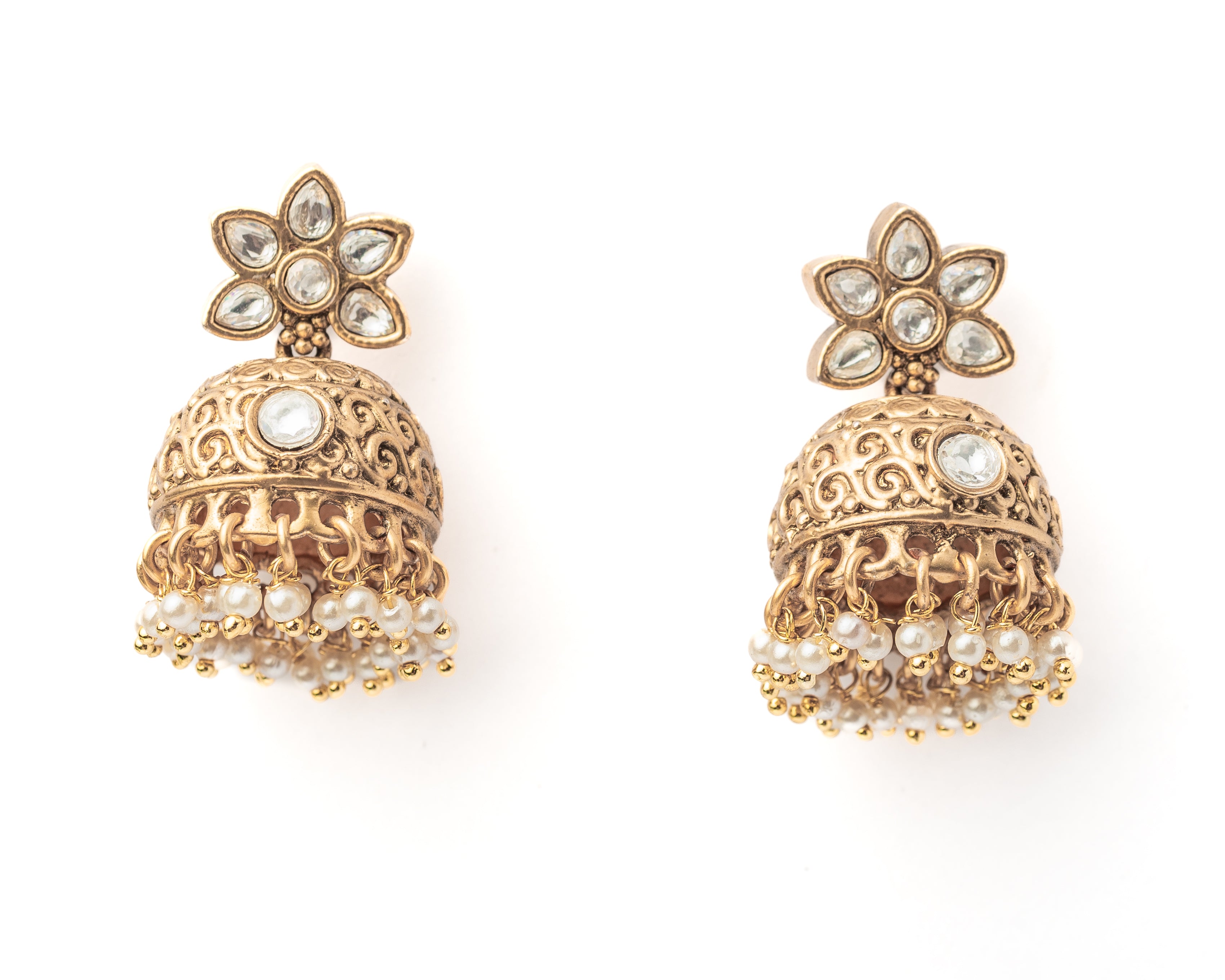 Isvaraah 2.0 Gold Plated White Womens Pair of Jhumka Earrings