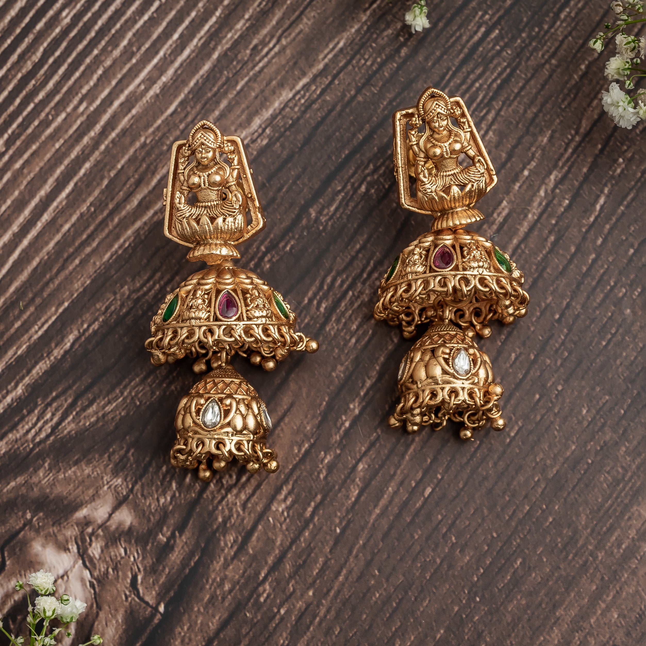 Gold Plated Temple Long Necklace & Jhumka Earring Set