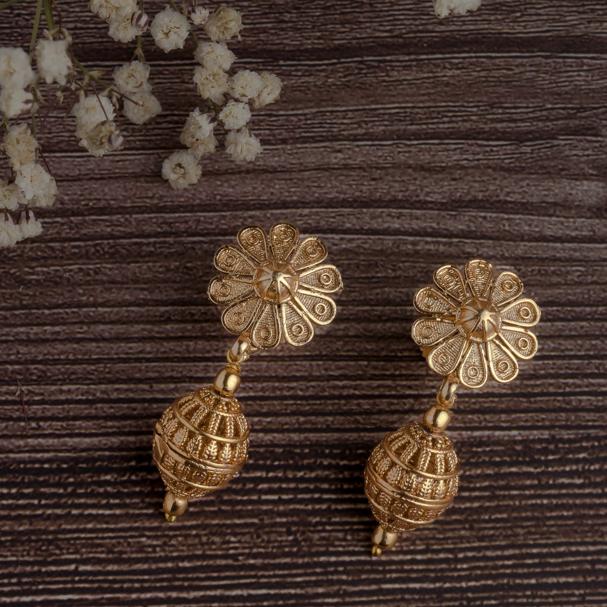 Gold Plated Womens Pair of Jhumkas Earrings