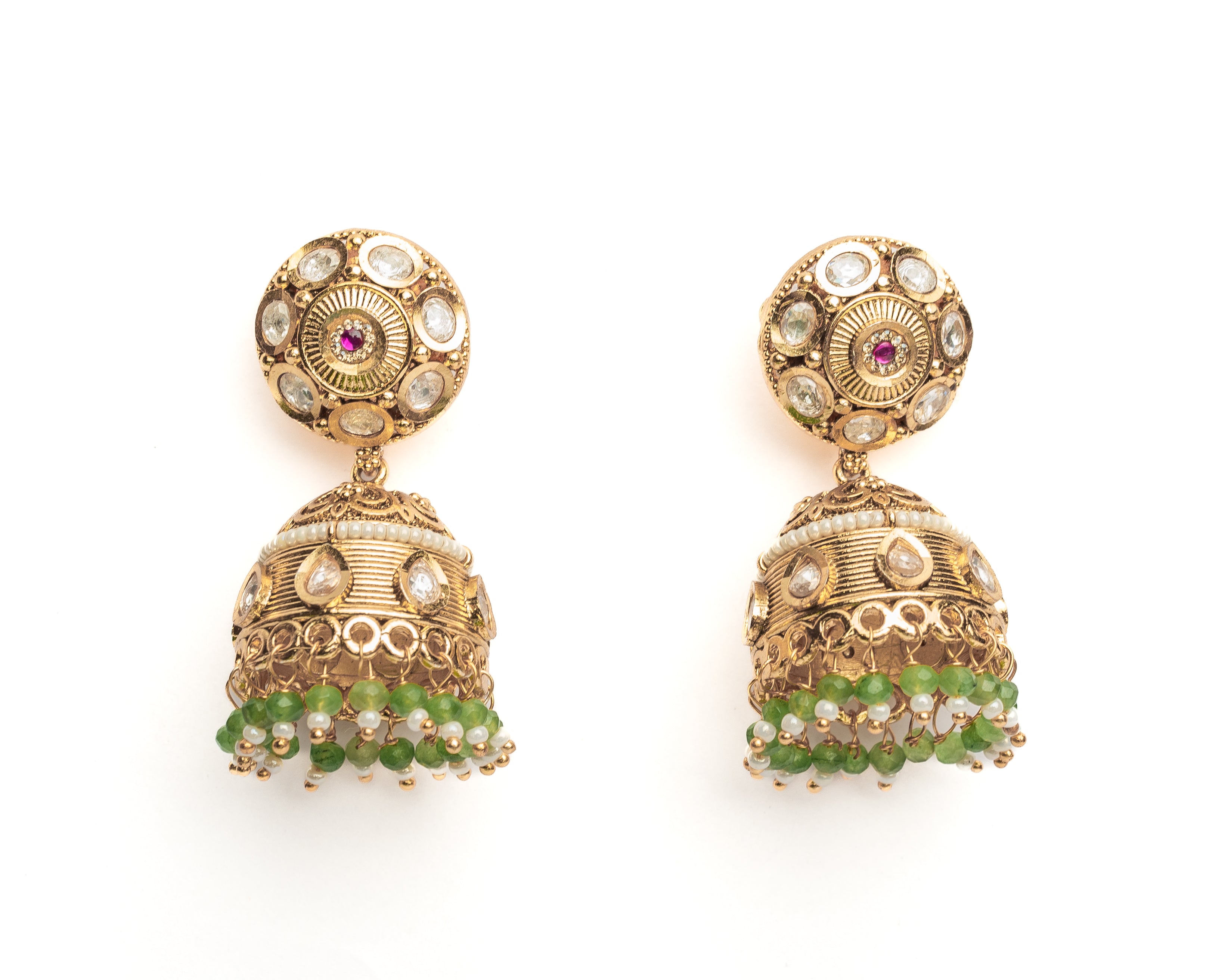 Isvaraah 2.0 Gold Plated Green Womens Pair of Jhumka Earrings