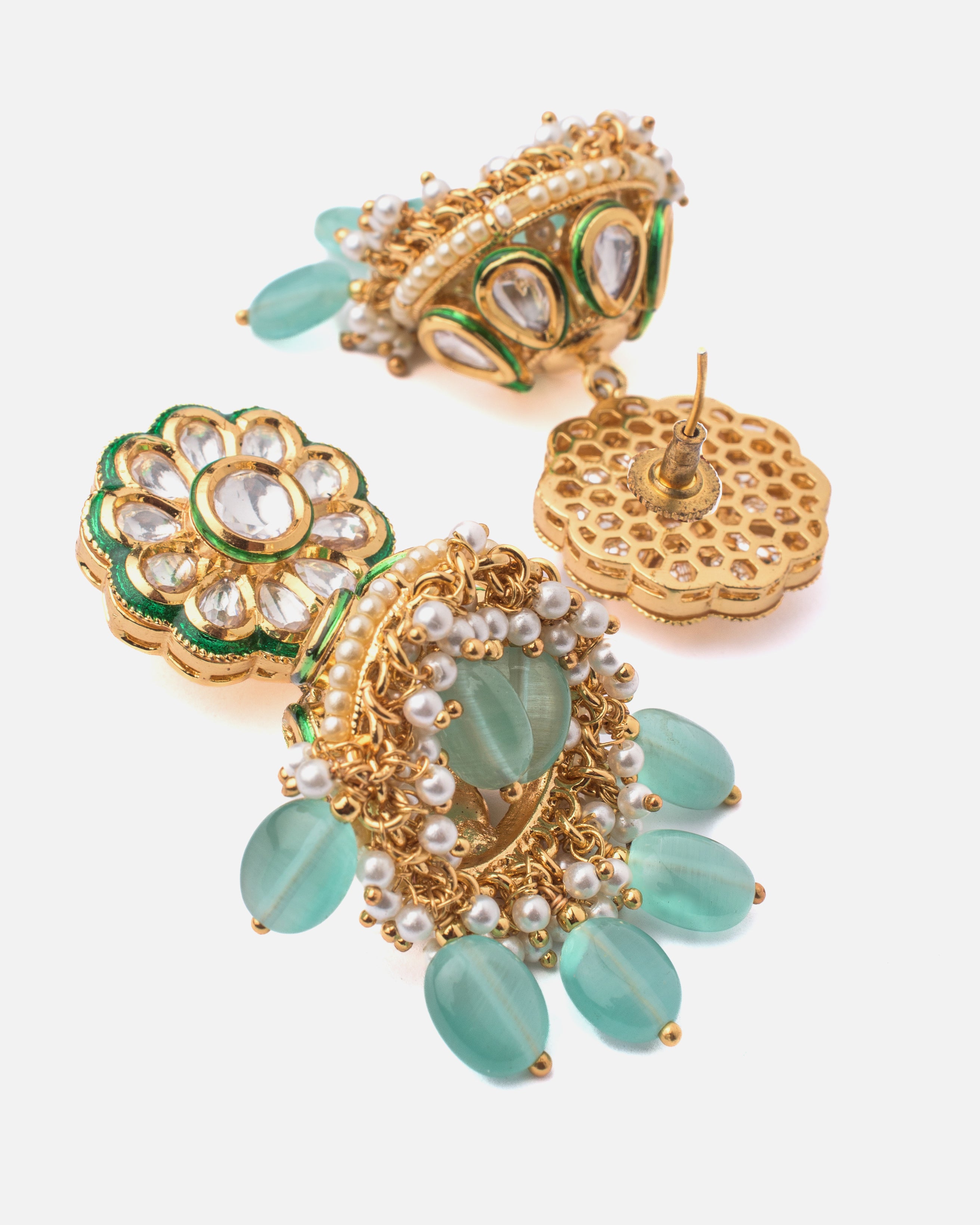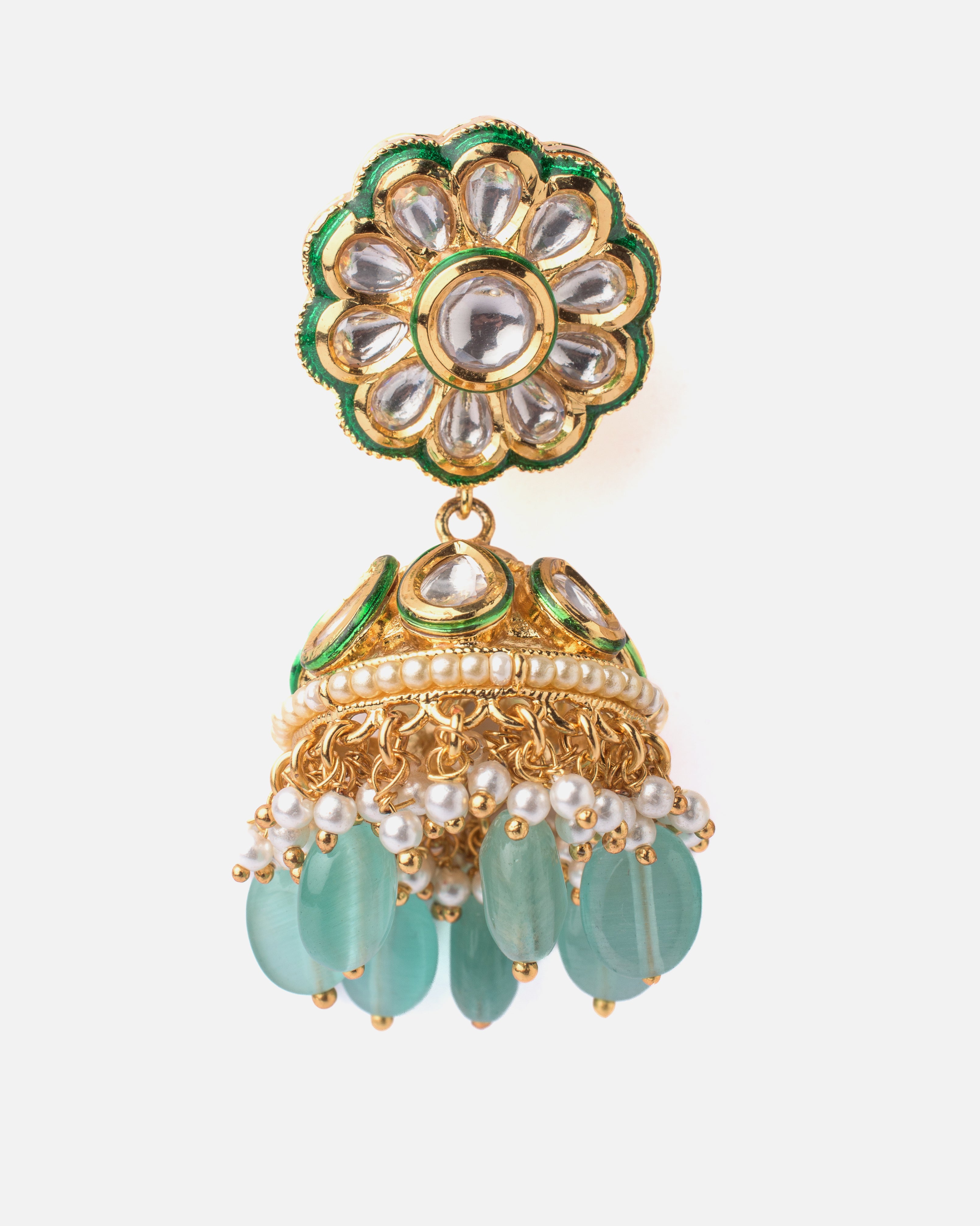 Saadgi Gold Plated Green Womens Pair of Jhumka Earrings