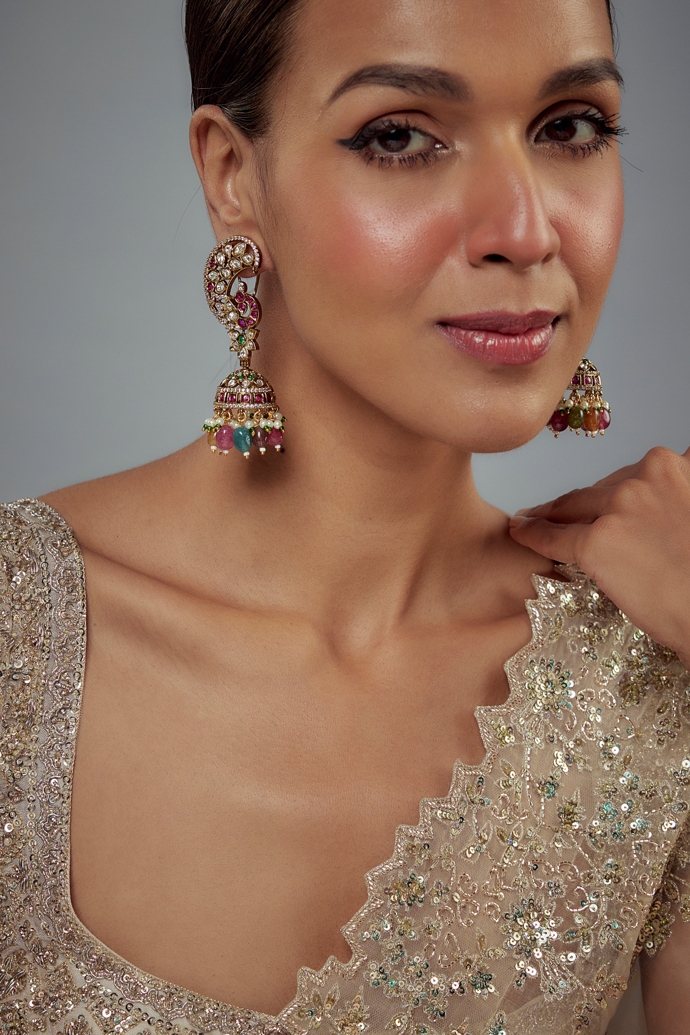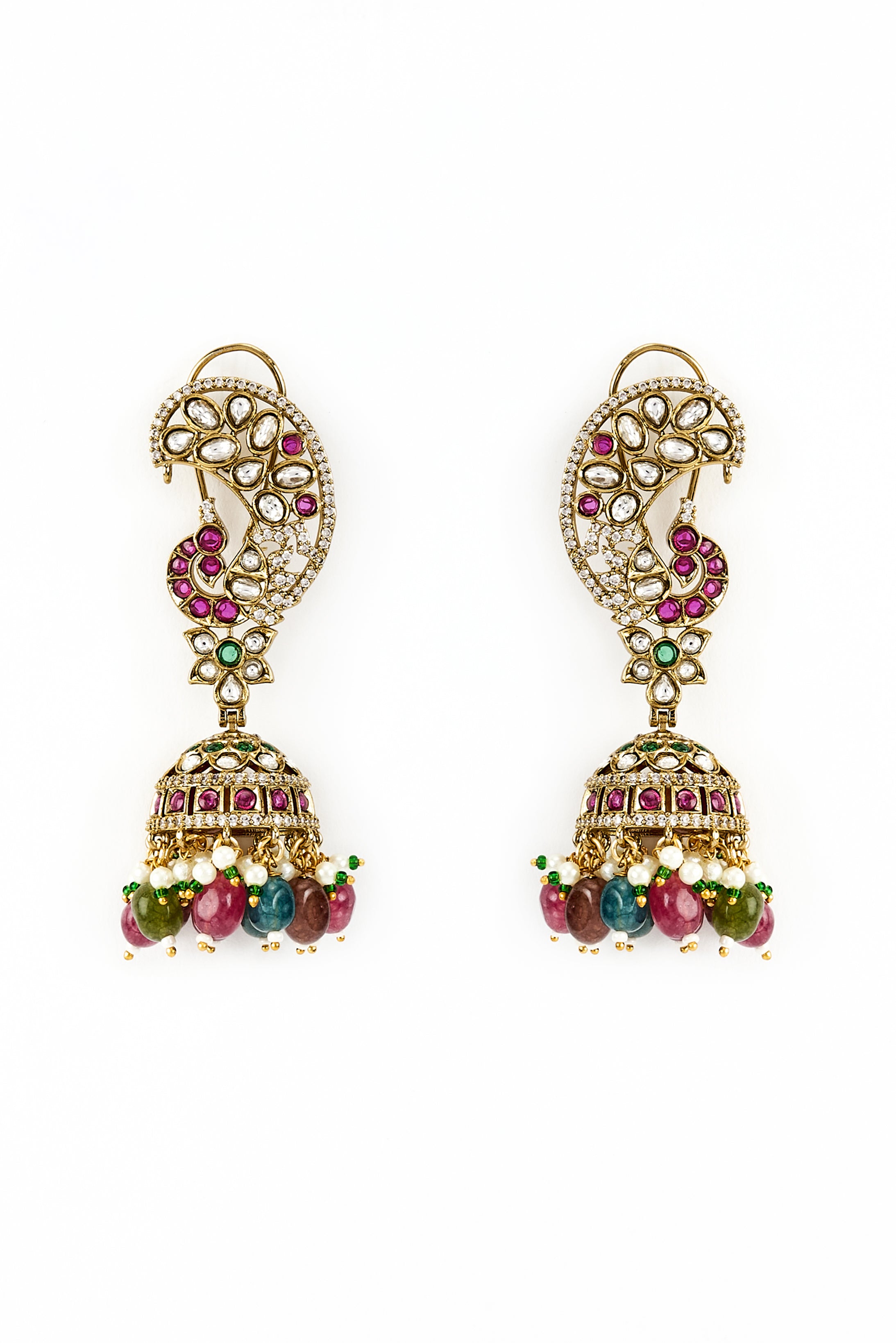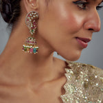 Morpankh Gold Plated Multicolored Kundan, Polki Womens Pair of Jhumkas Earrings (Freesize)