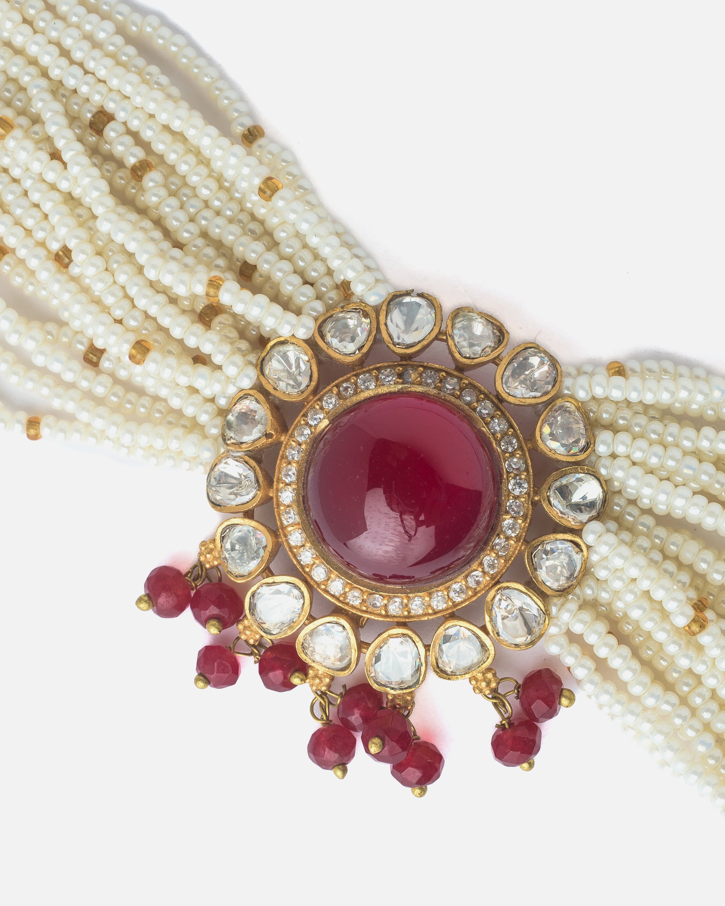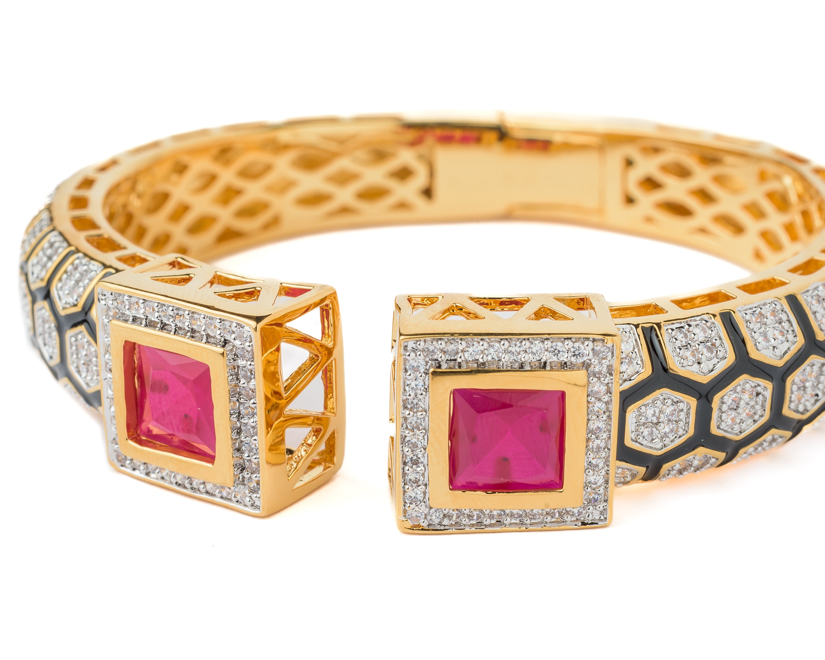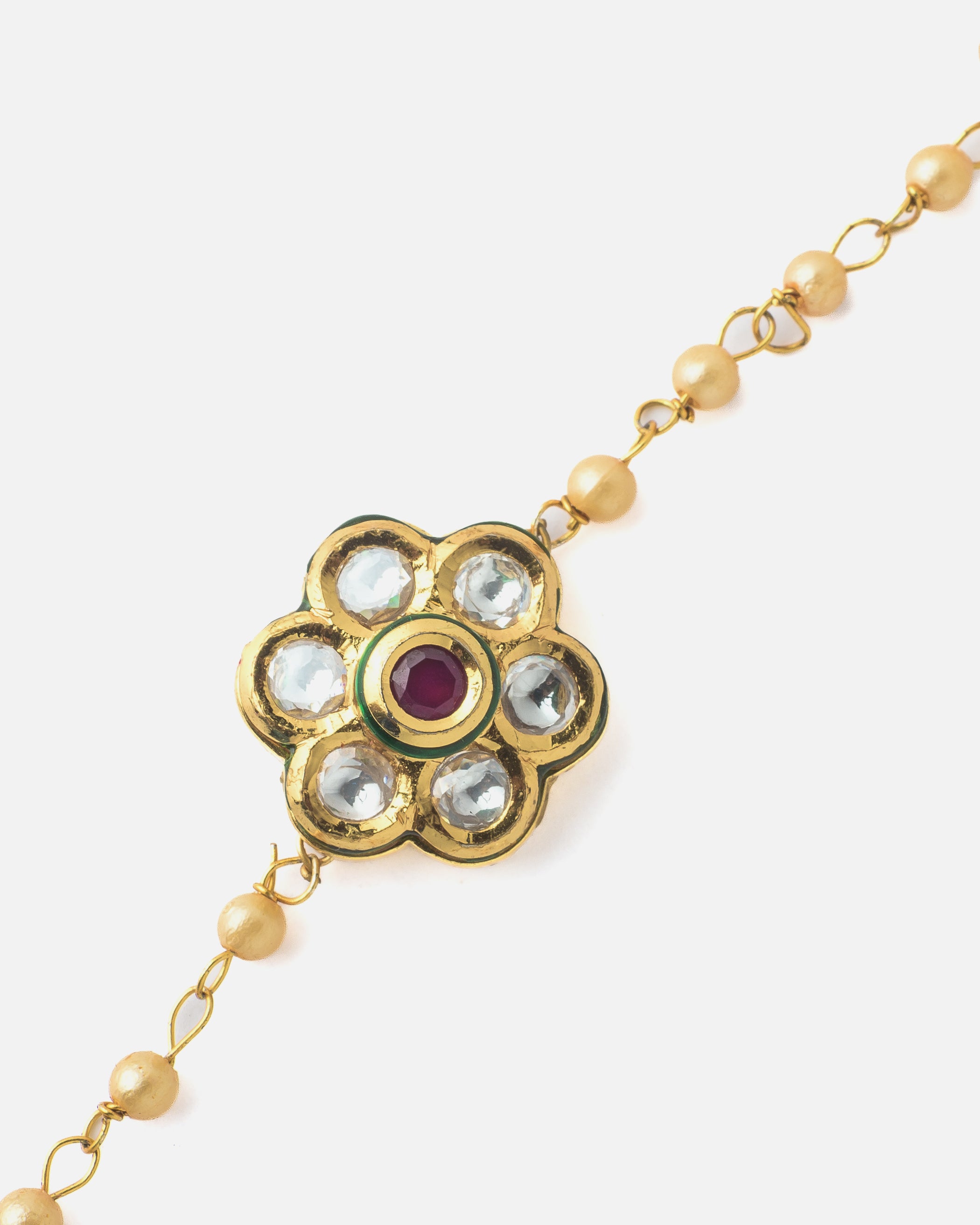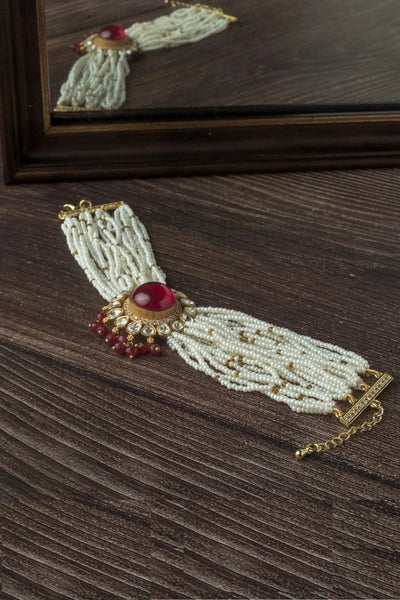 Gold Plated Red Womens Kundan & Polki Bracelet