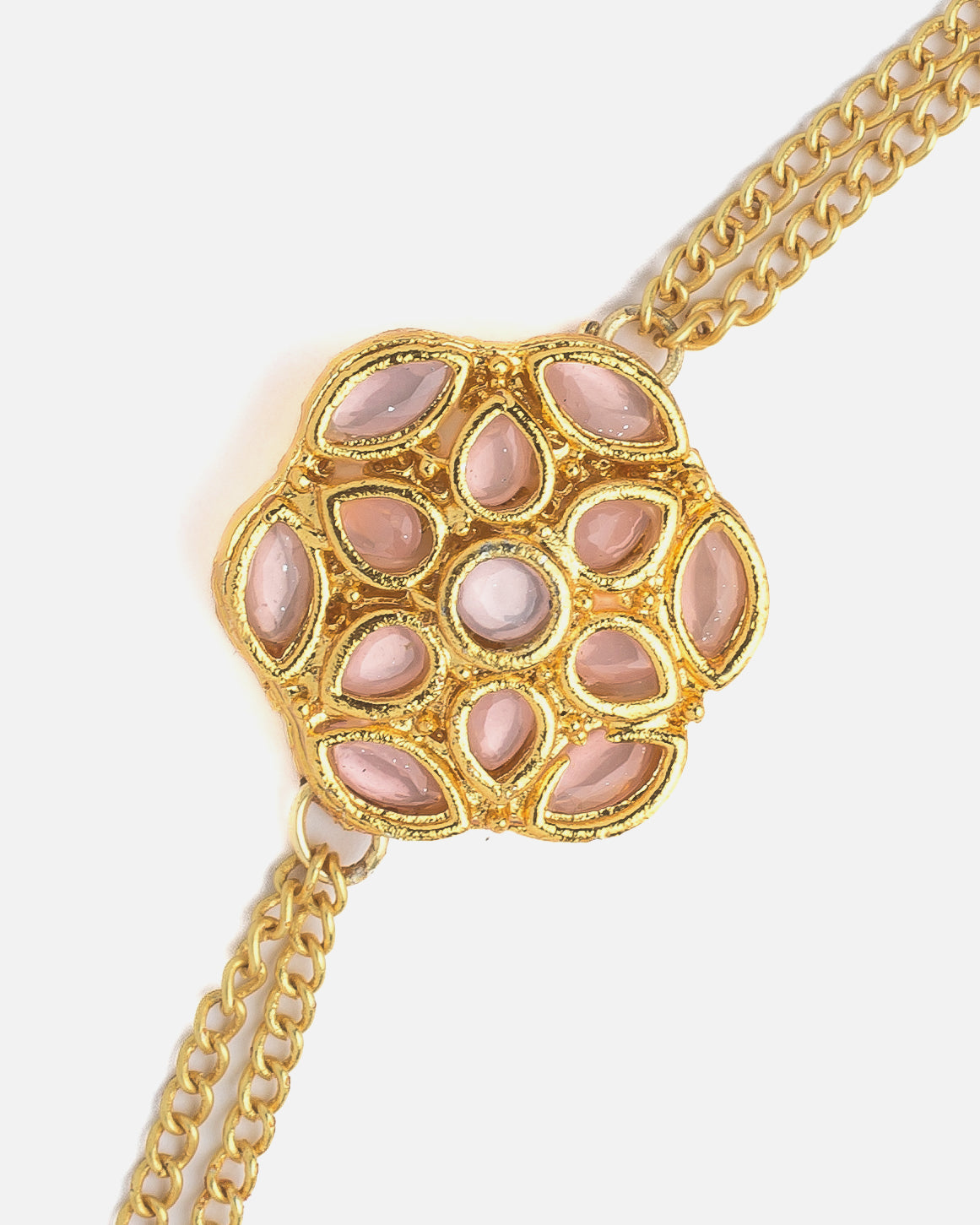 Gold Plated Pink Womens Kundan & Polki Bracelet