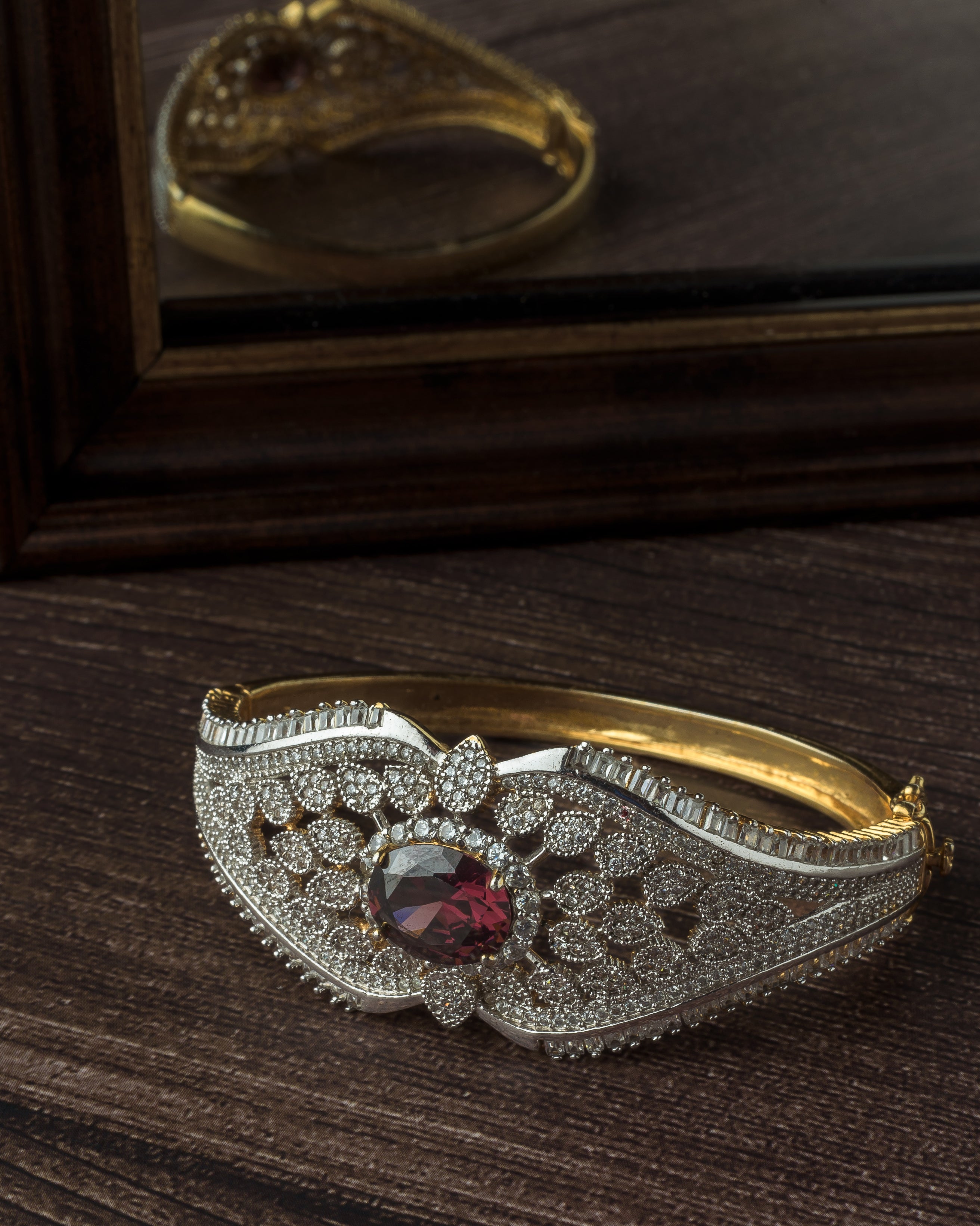 • Elegant Filigree Design: The bangle features a graceful openwork lattice adorned with intricate motifs, exuding sophistication.