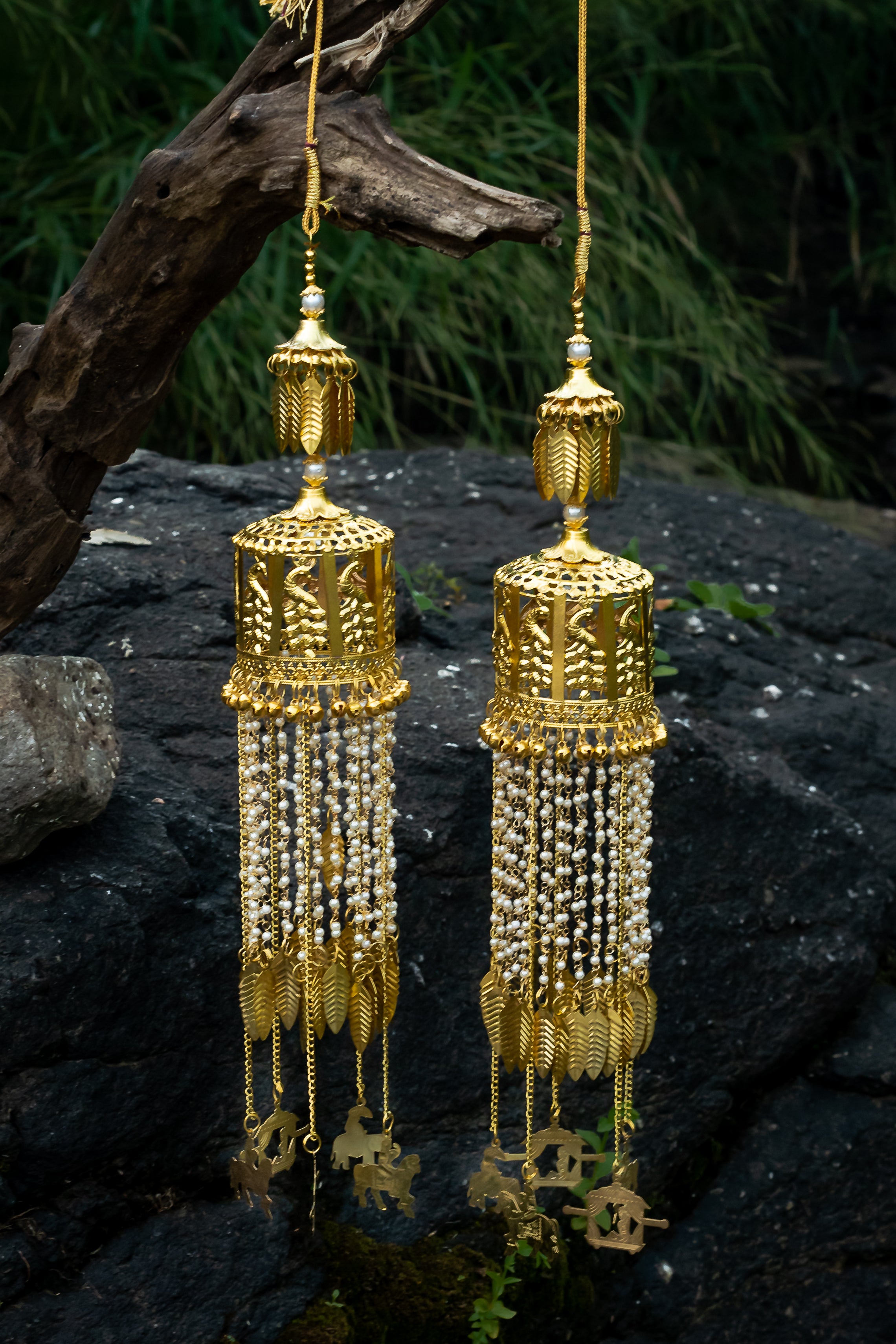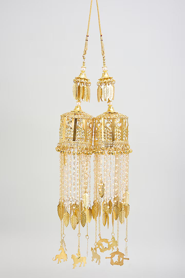 - Intricate Detailing: Features delicate golden patterns and dangling embellishments for a refined look.