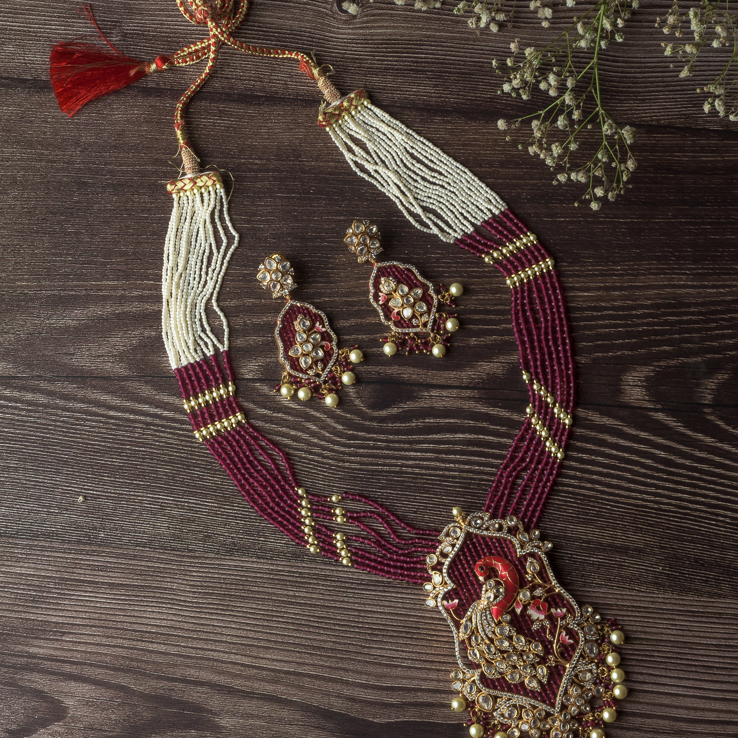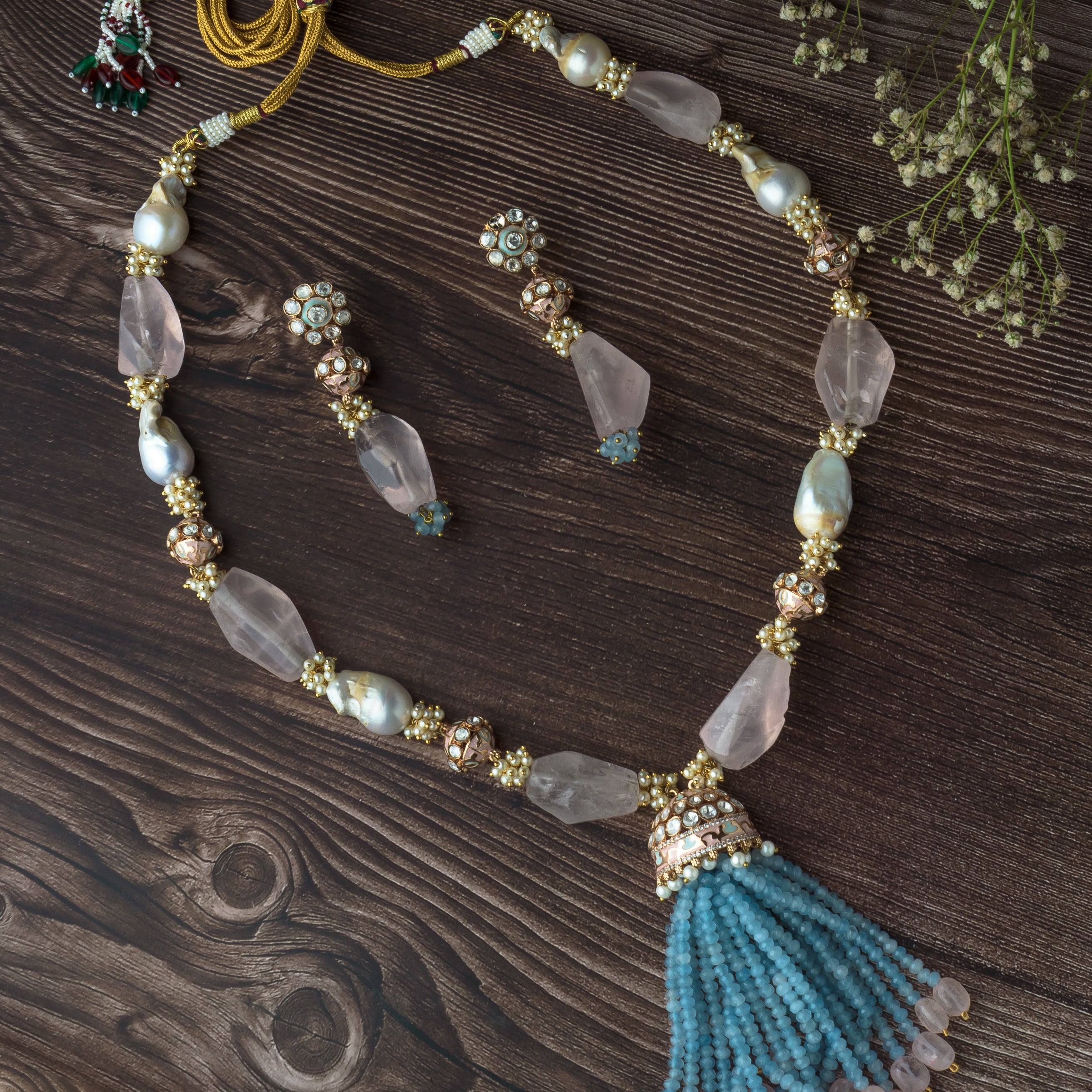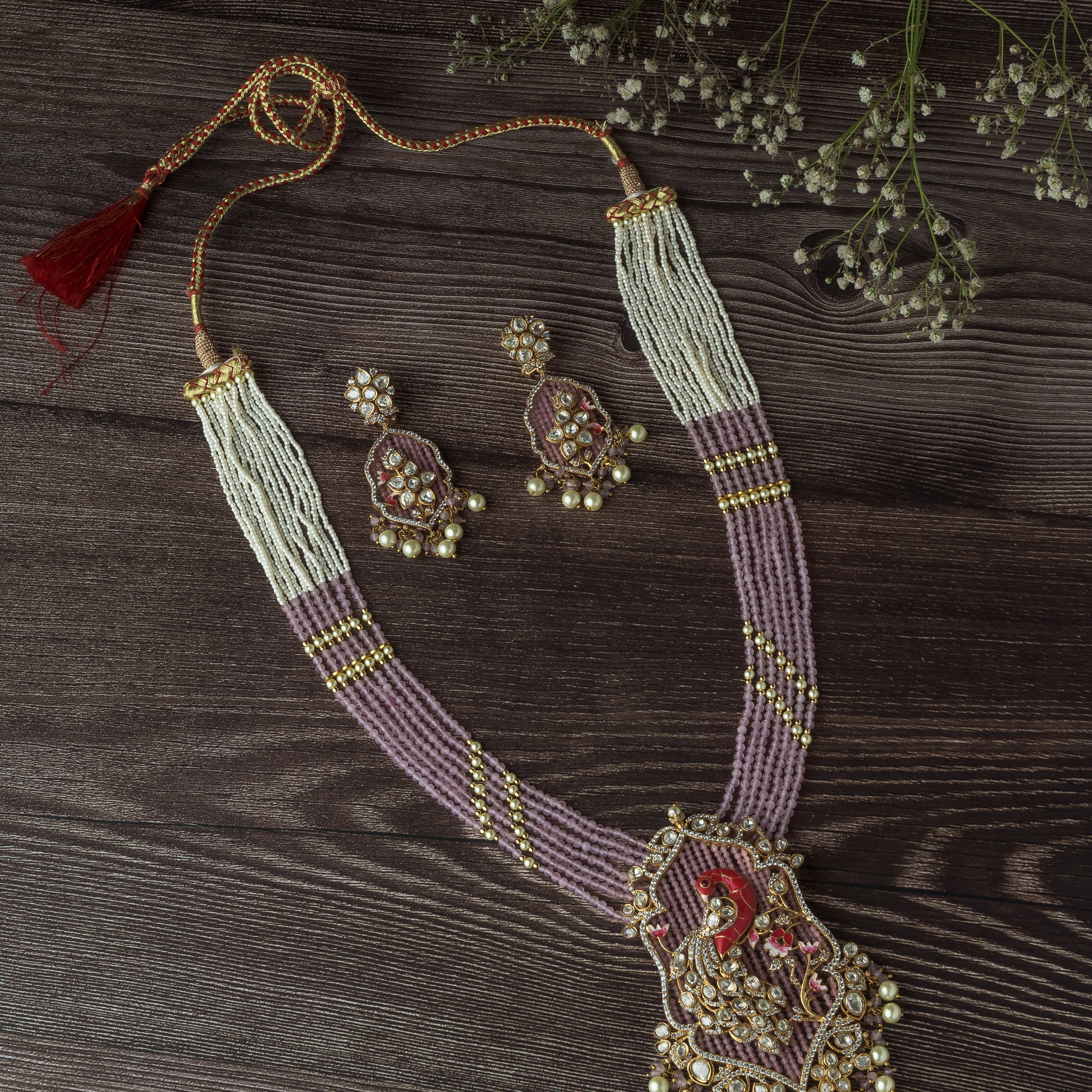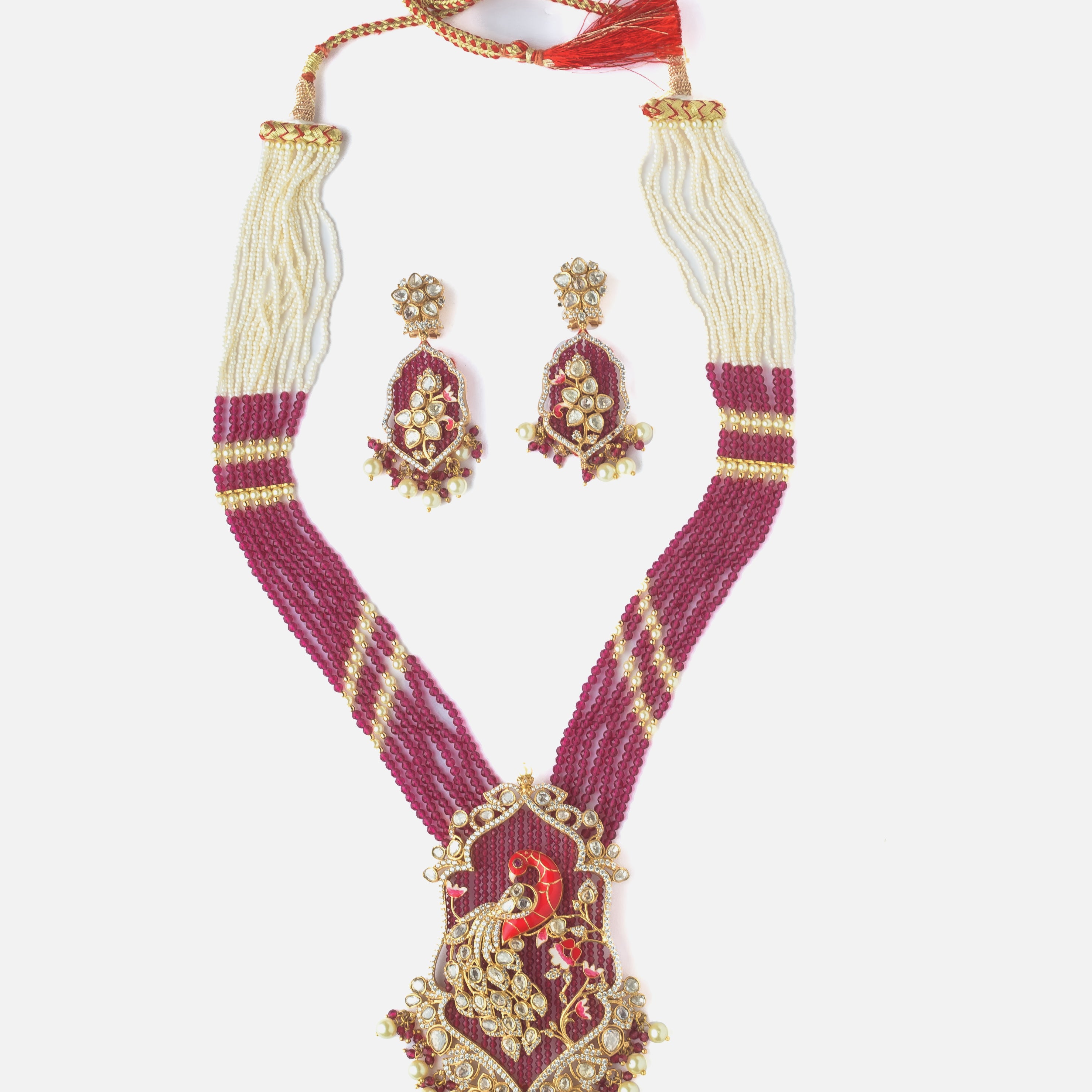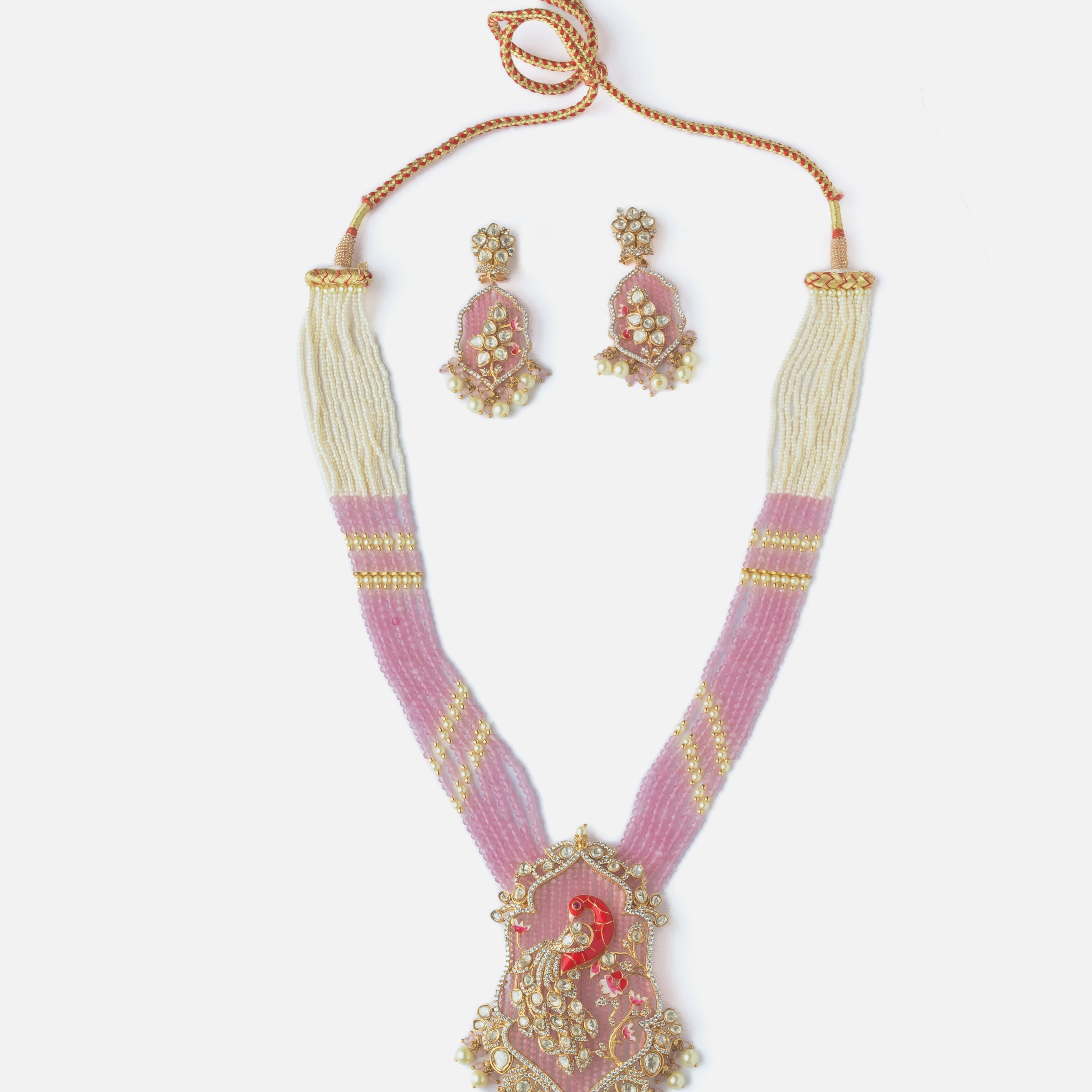 Isvaraah 2.0 Gold Plated Pink Long Necklace Set with Pair of Earrings