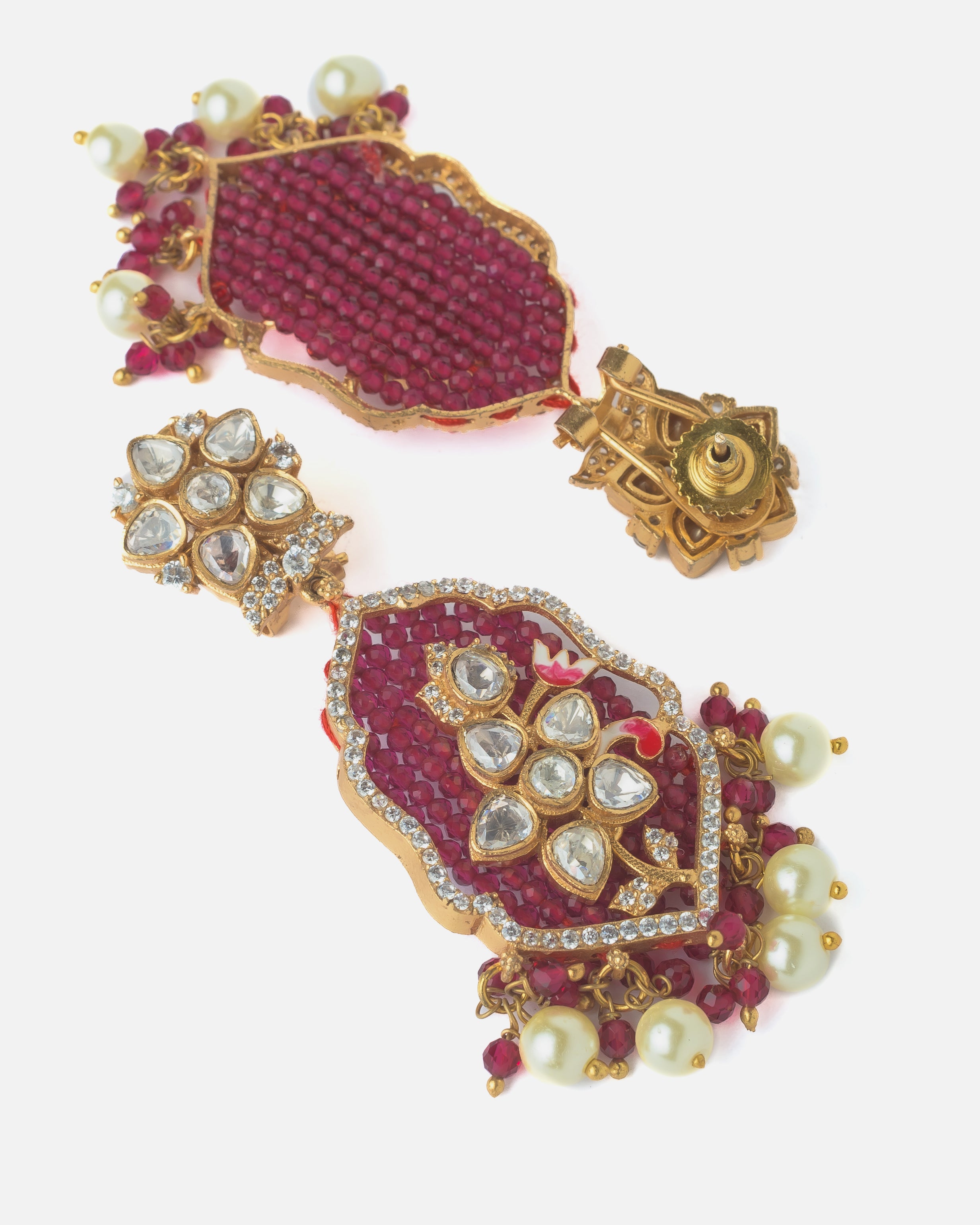 - Matching Earrings Included: Coordinated earrings mirror the pendant’s design, adorned with kundan and pearls for a complete look.