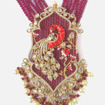 - Intricate Peacock Pendant: Features a beautifully detailed peacock design embellished with kundan stones and pearl drops for a regal touch.