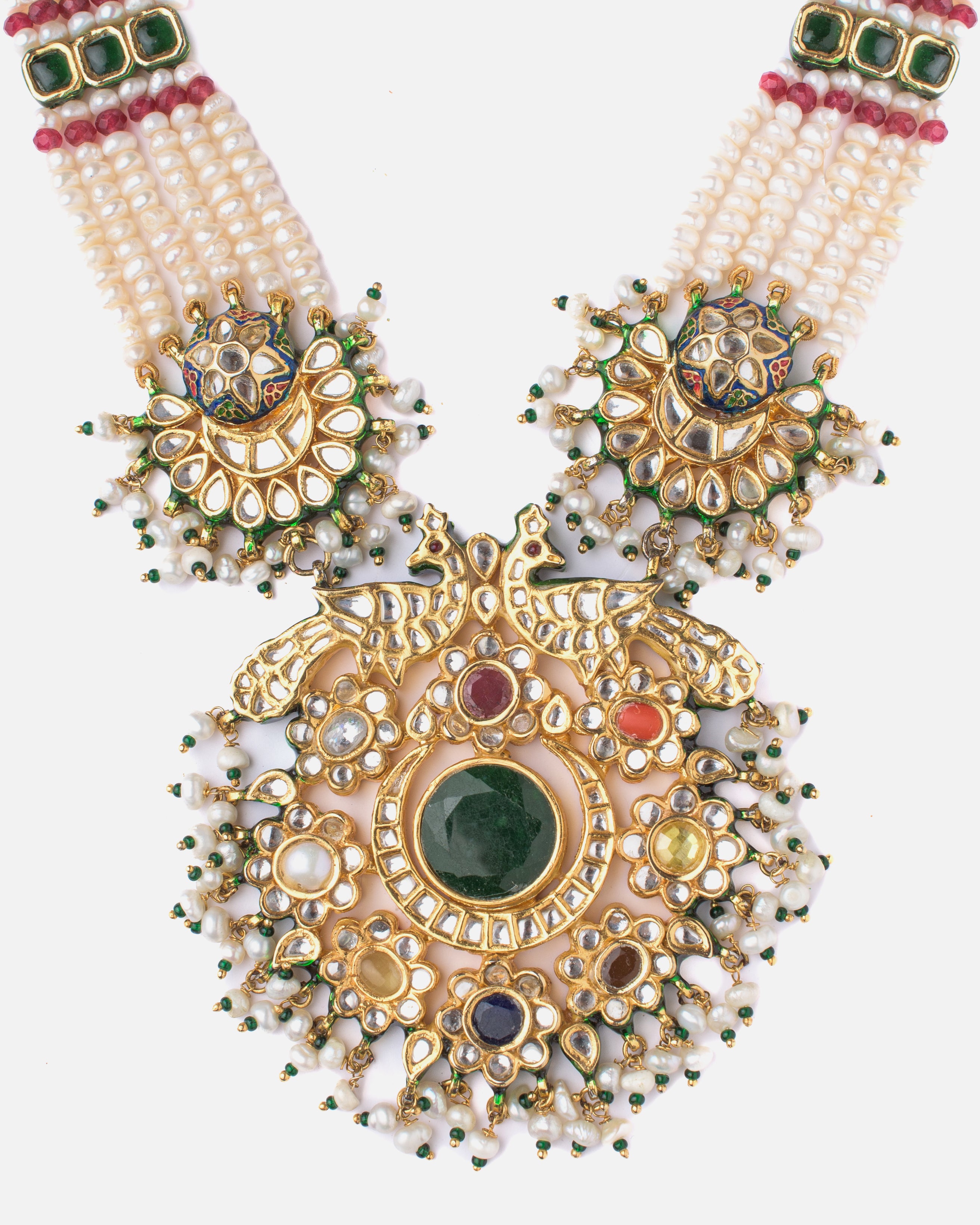 - Regal Design: Features layered pearl strands with ornate gold-toned work