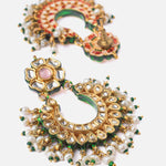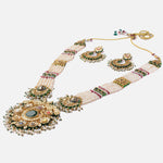 Saadgi Gold Plated Green Womens Long Necklace Set with Pair of Earrings