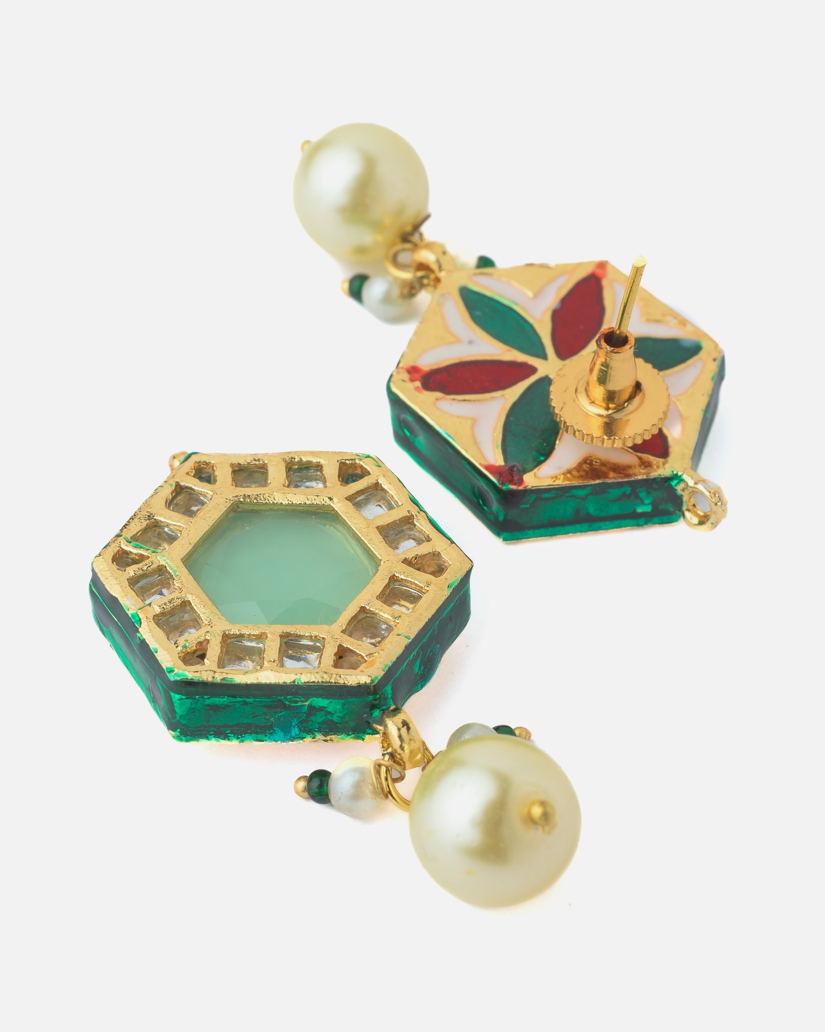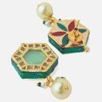 - Colorful Enamel Pendants: Intricately crafted with floral and geometric enamel charms in red, green, and gold tones.