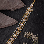 Gold Plated White Womens Kundan, Polki Maathapatti