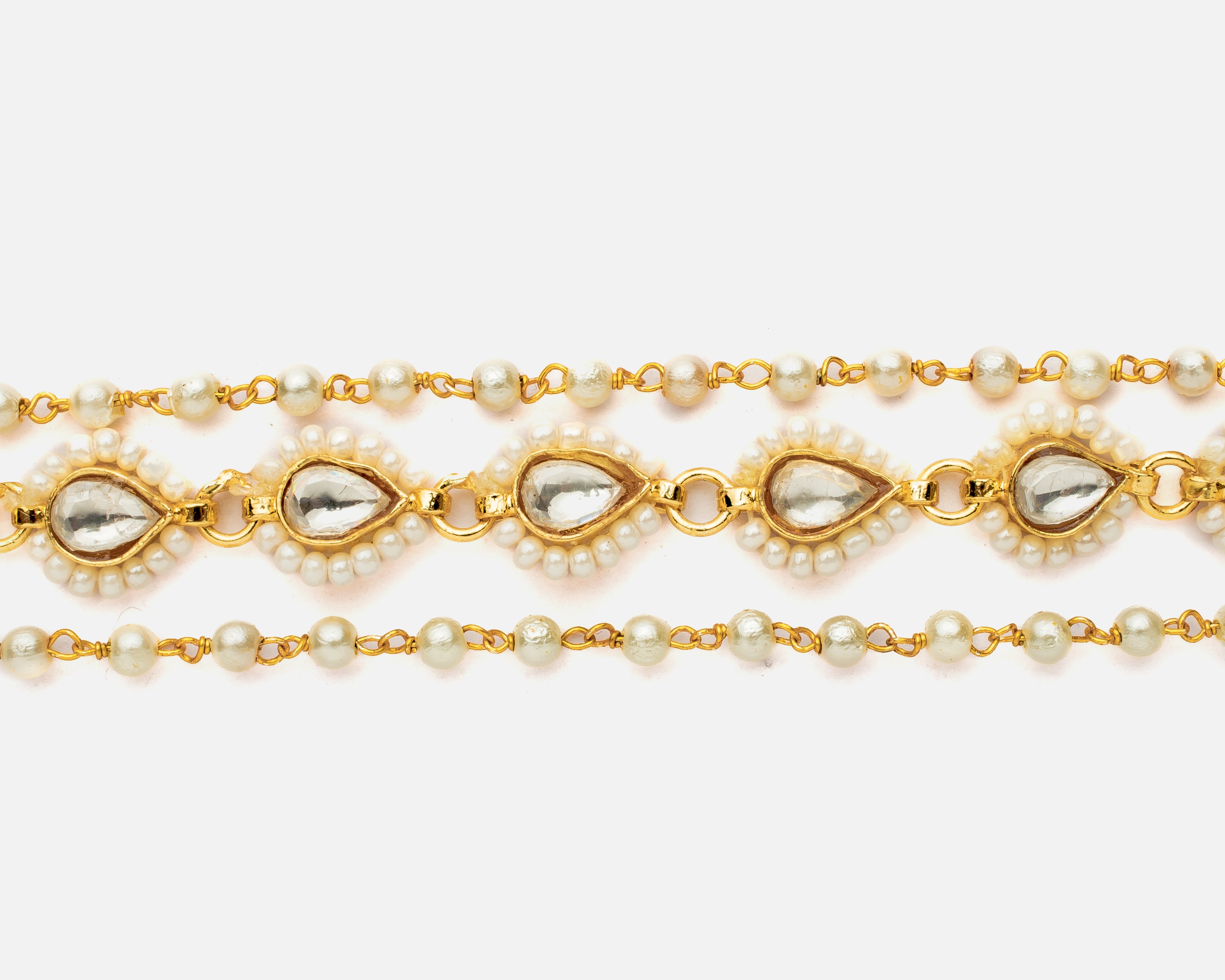 - Pearl and Kundan Work: It combines pearls with Kundan stones, adding a touch of elegance and richness to the accessory.