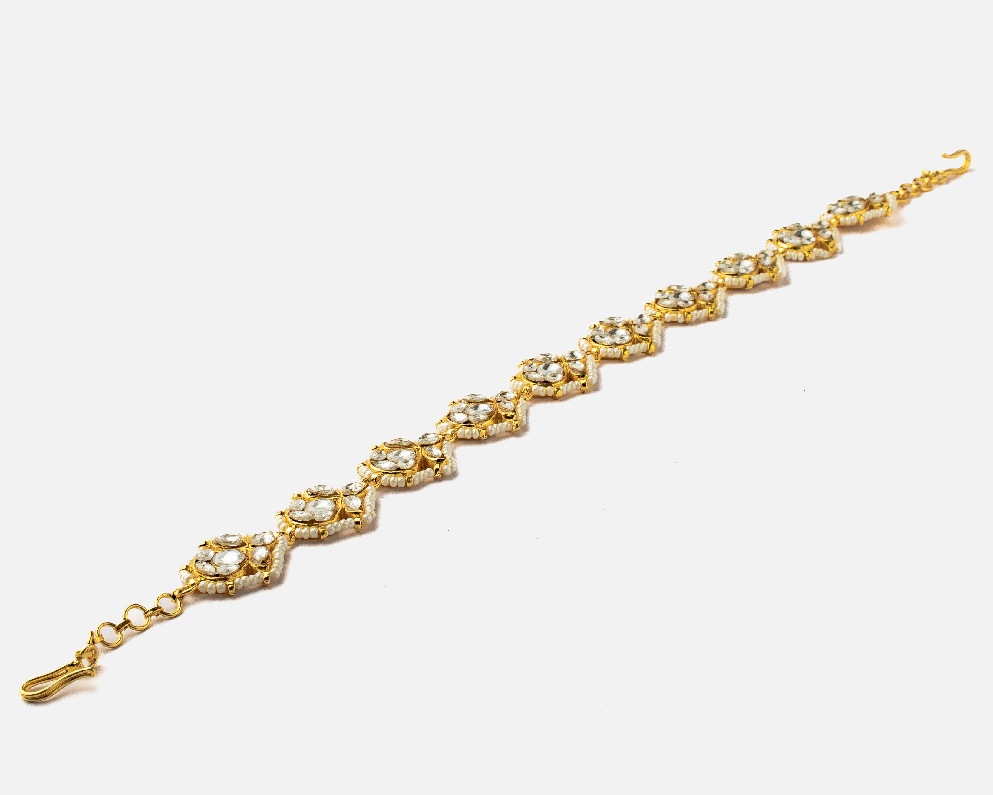 Gold Plated White Womens Kundan, Polki Maathapatti
