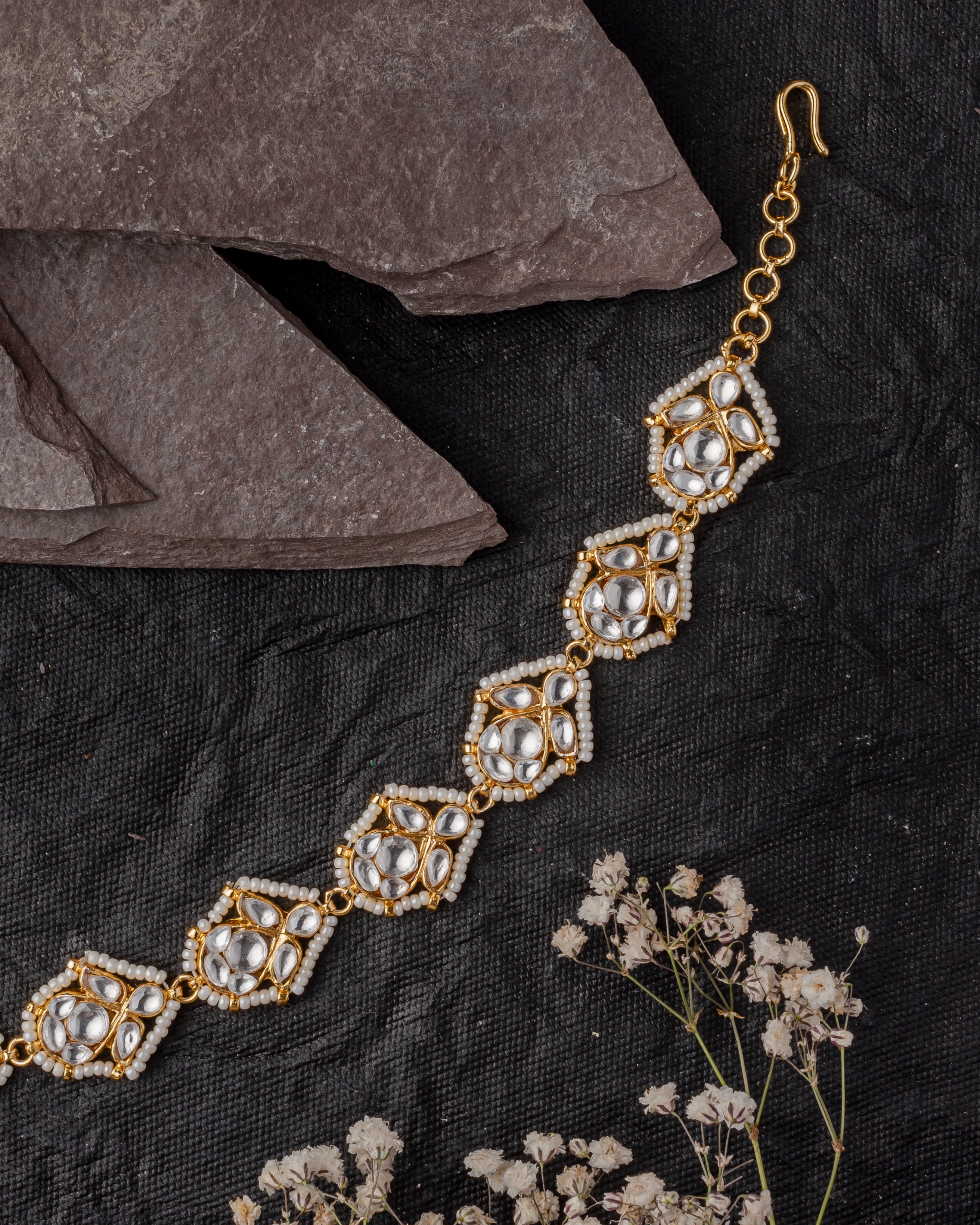 - Exquisite Design β This maathapatti features a stunning symmetrical pattern with intricate Kundan work, adding a royal charm.
