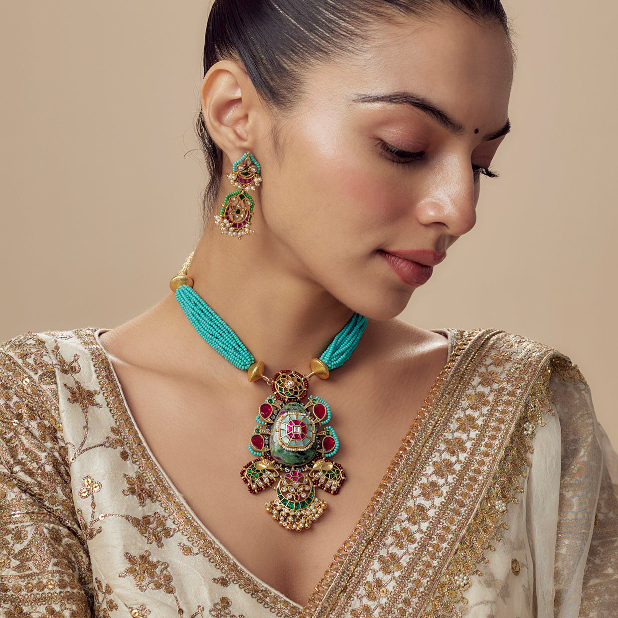 Morpankh Multicolored Womens Beaded Short Necklace Set with Pair of Earrings