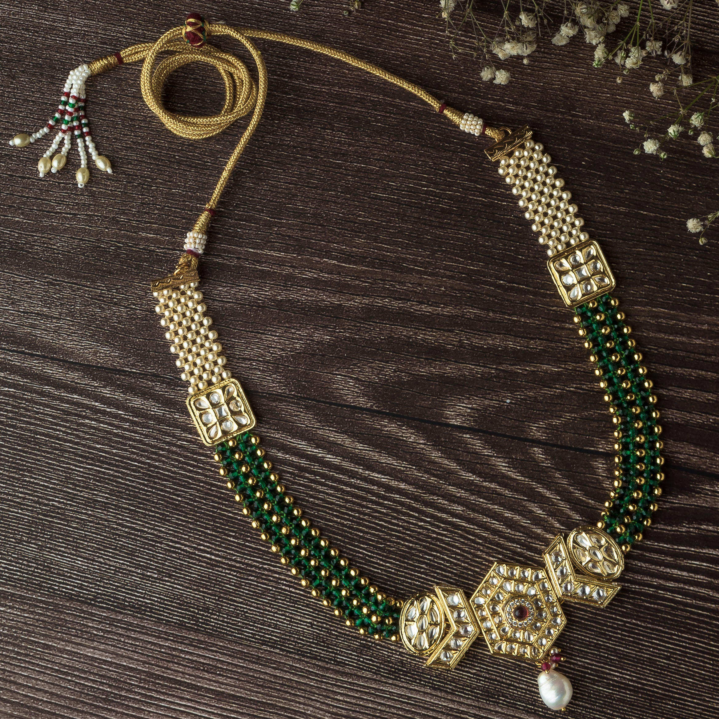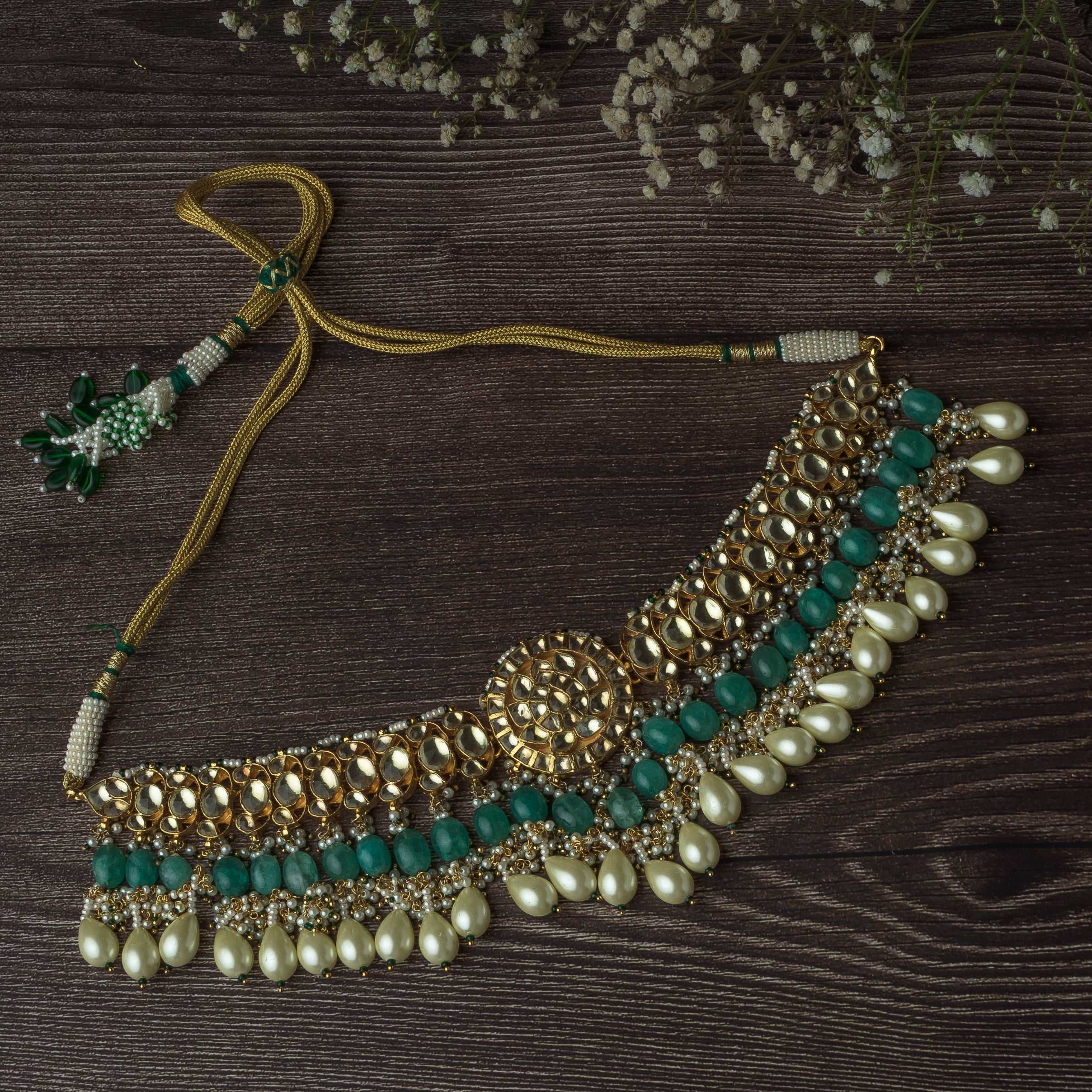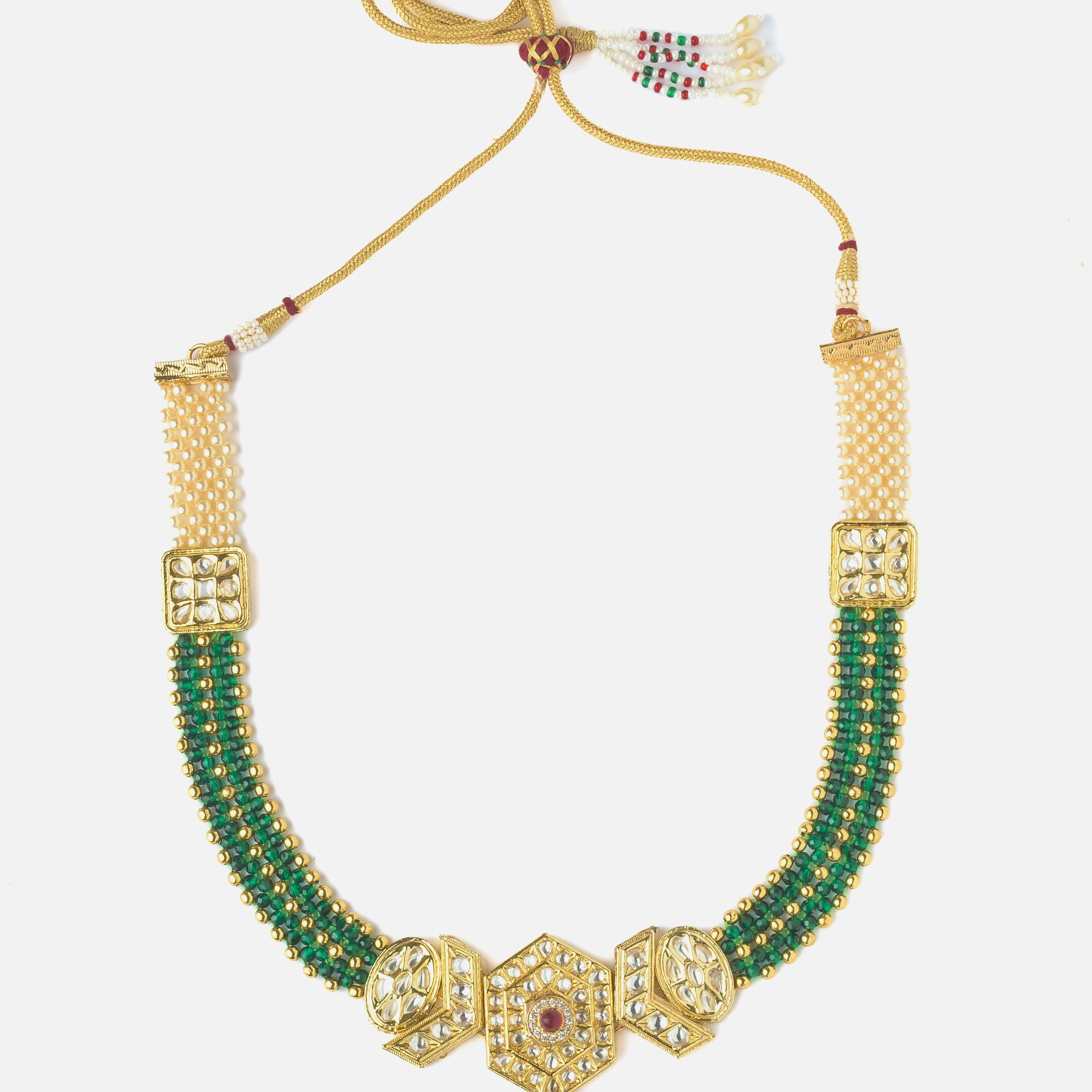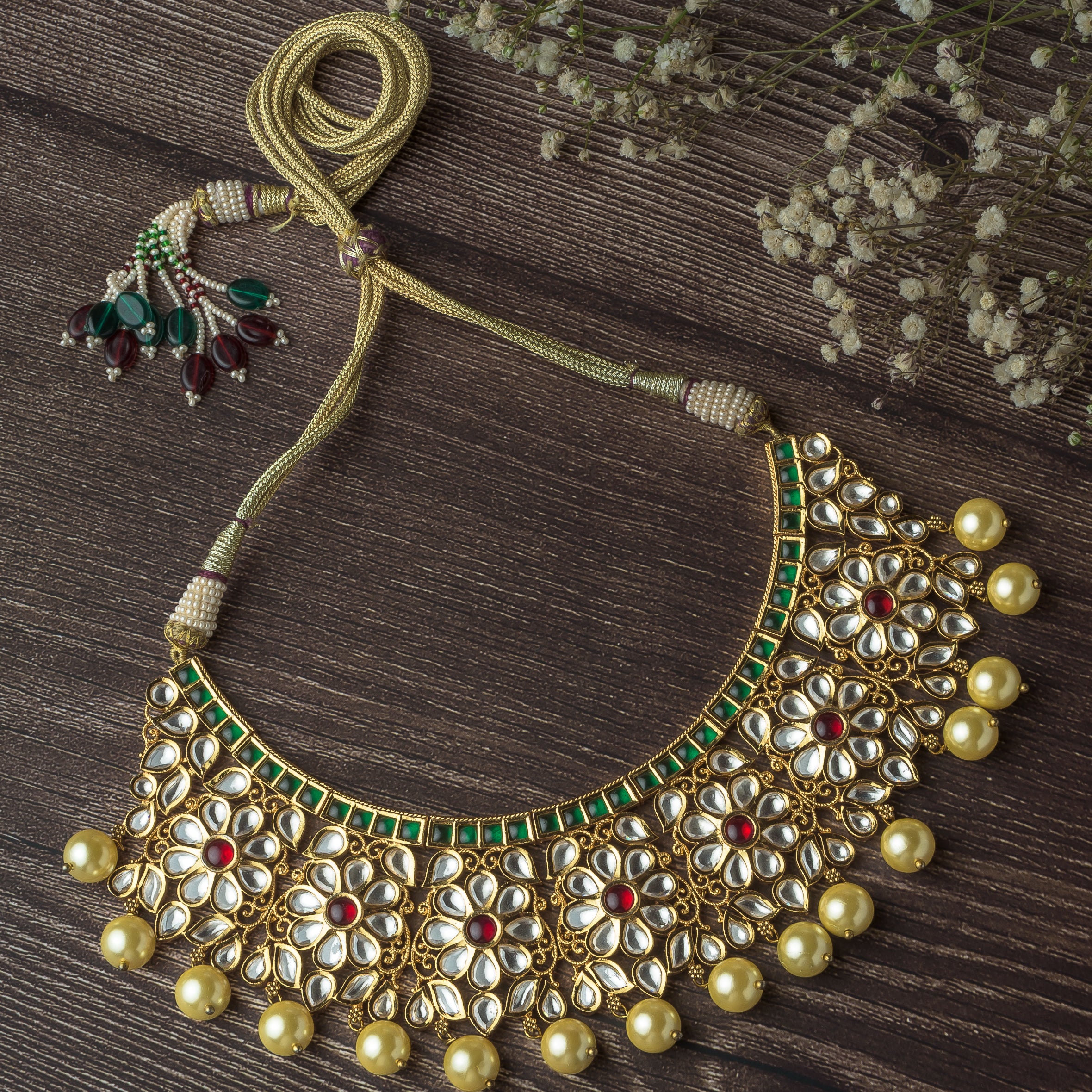 Gold Plated Green & Red Womens Kundan Choker Necklace