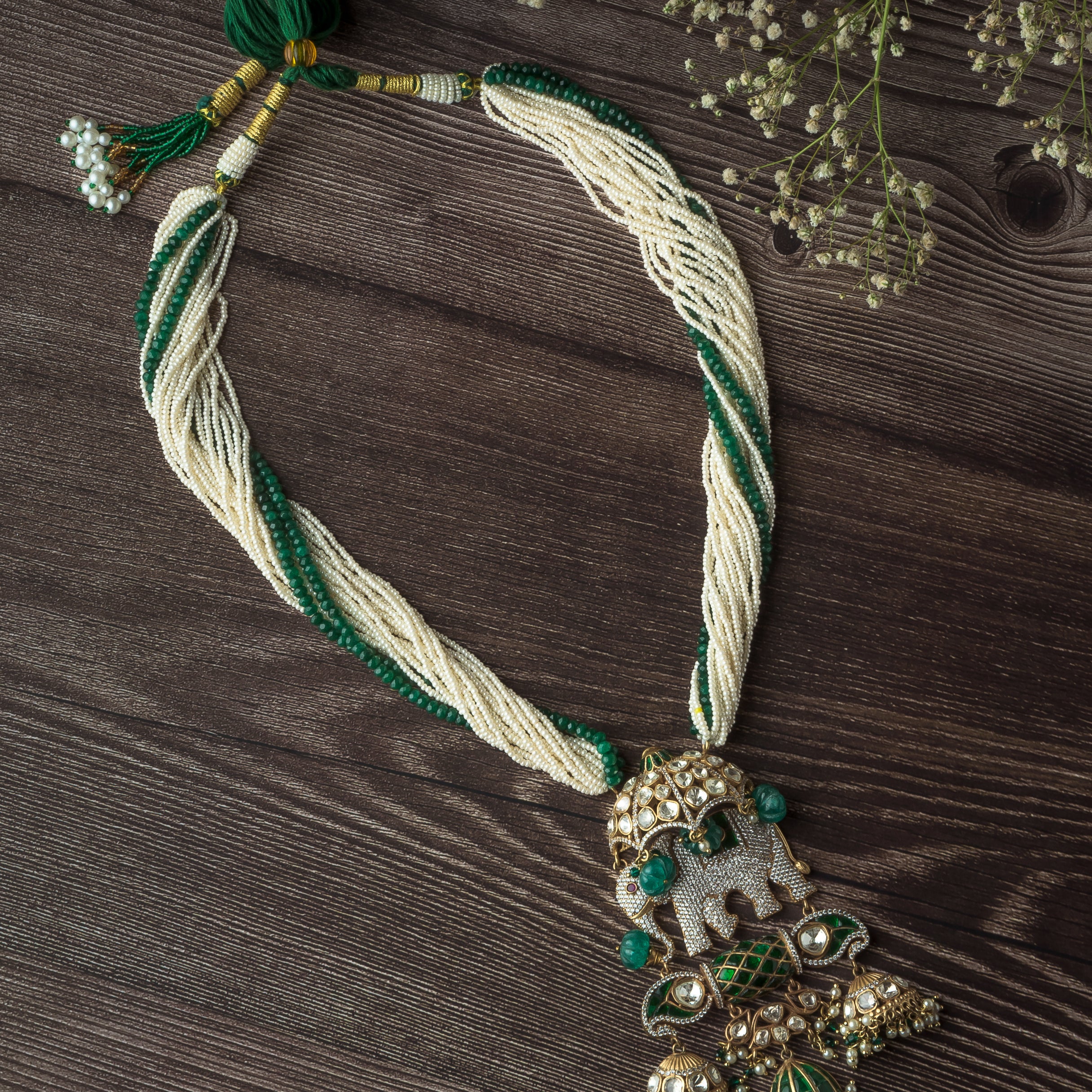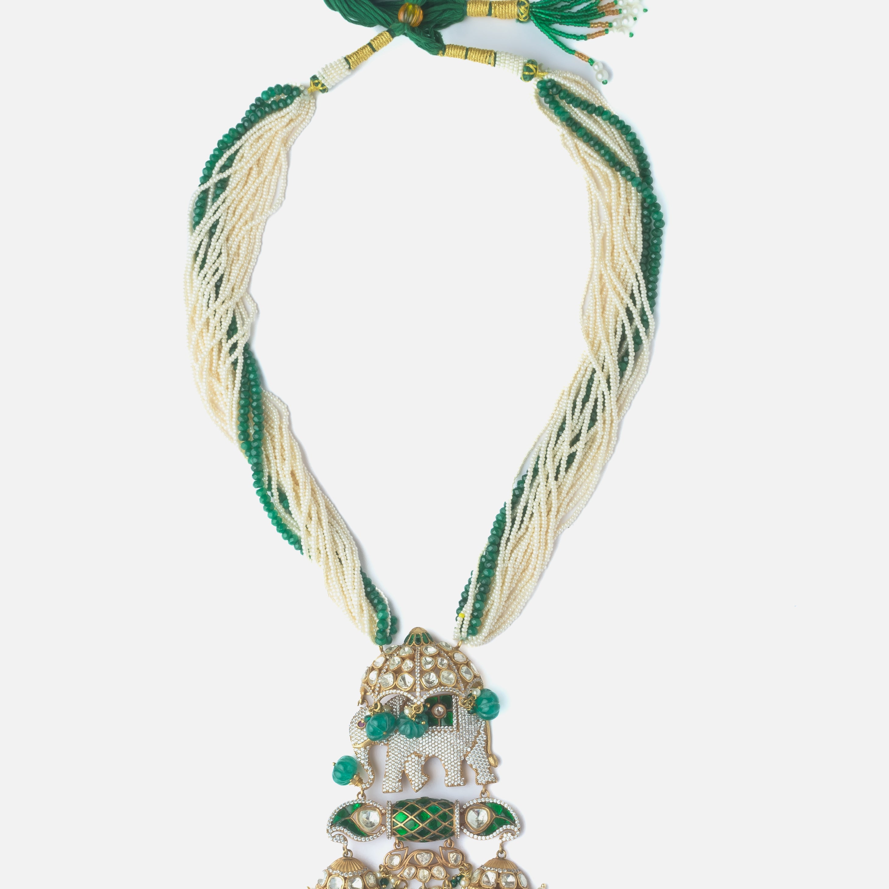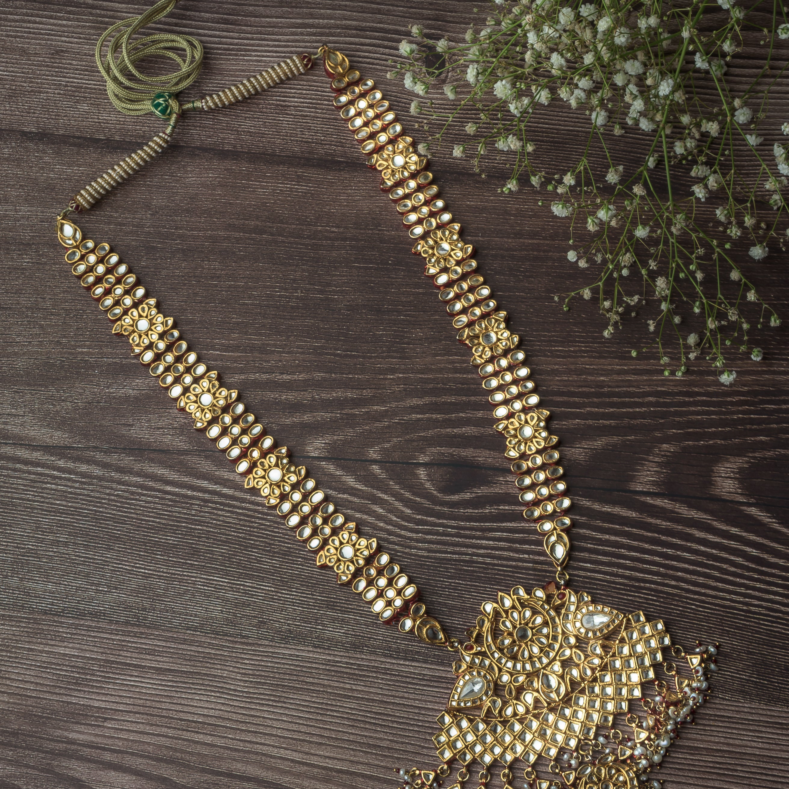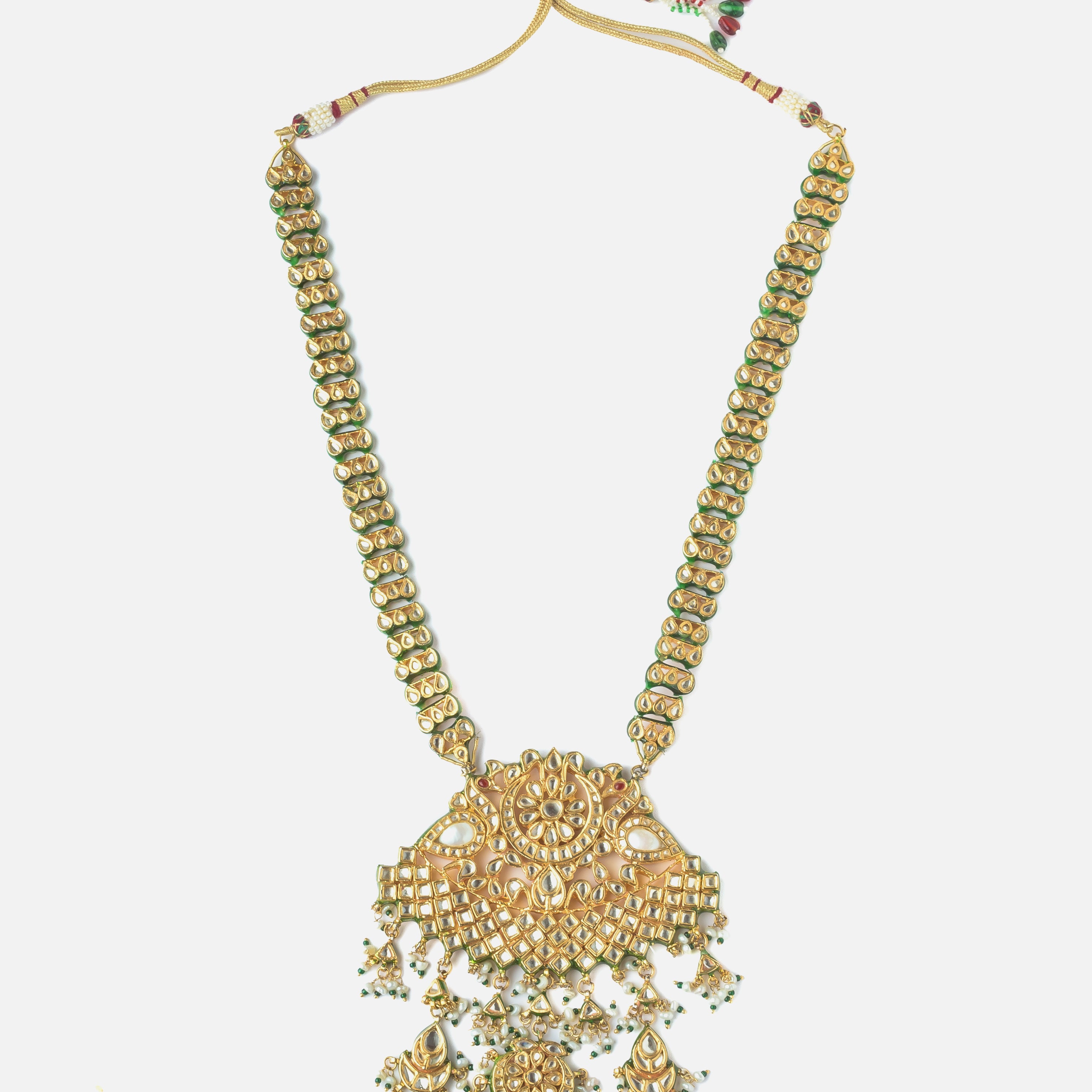 Gold Plated Green & Red Womens Kundan Choker Necklace