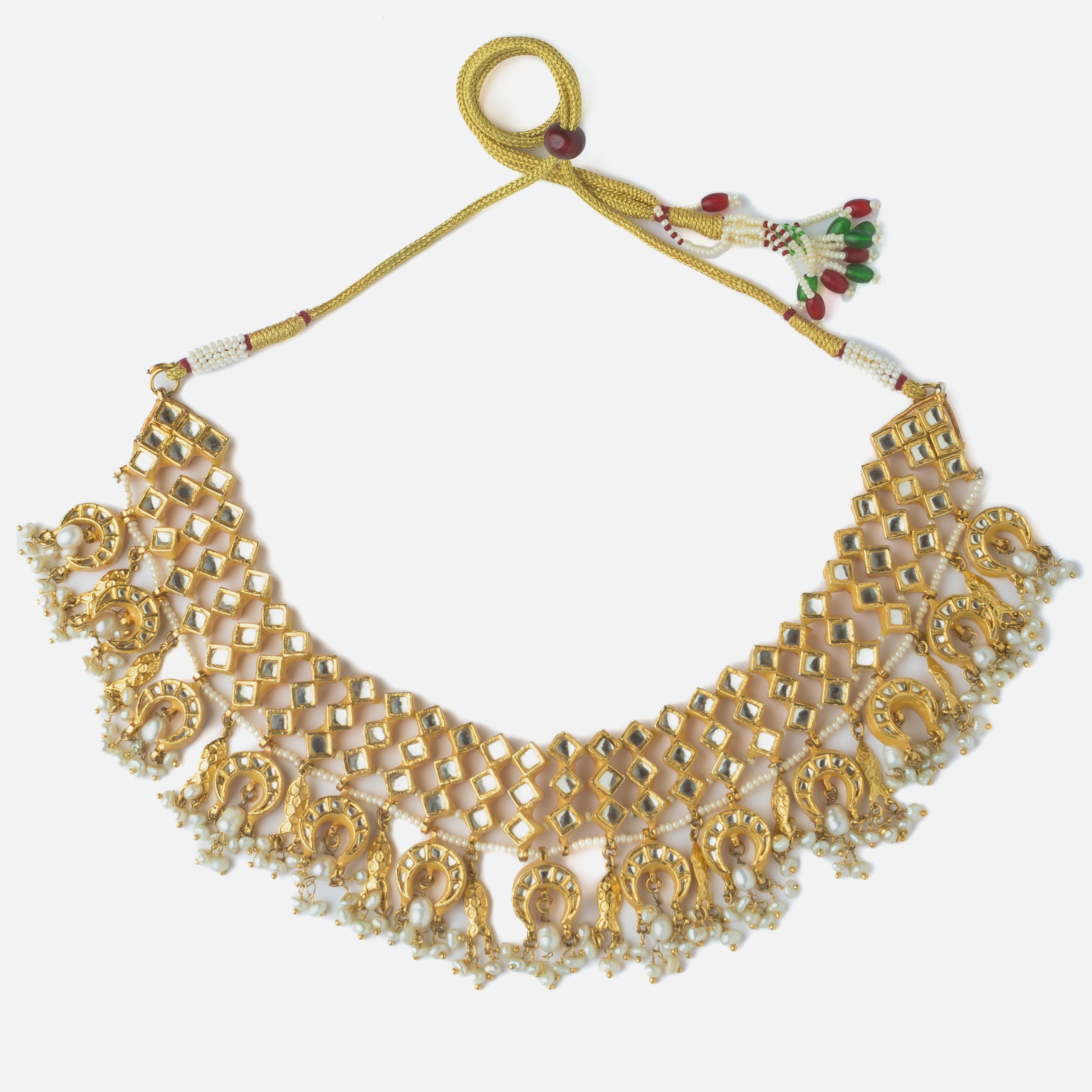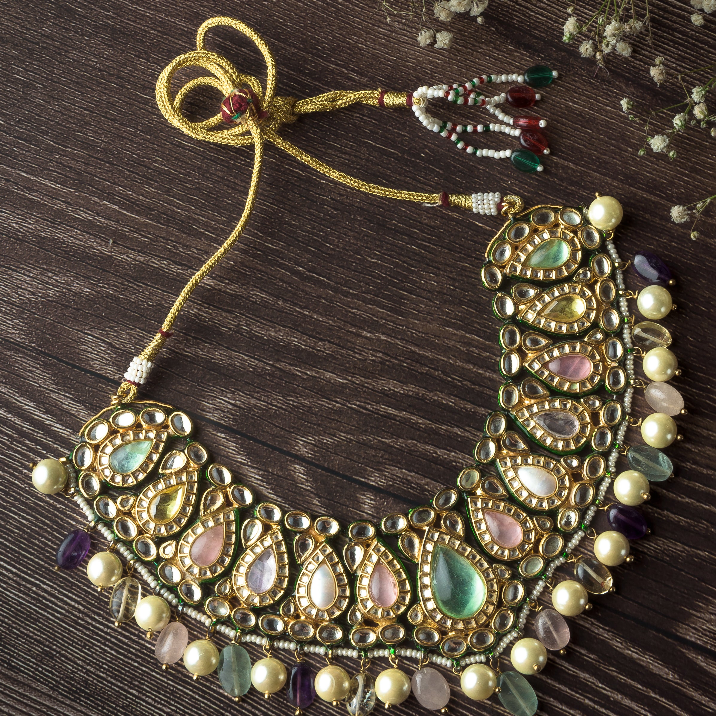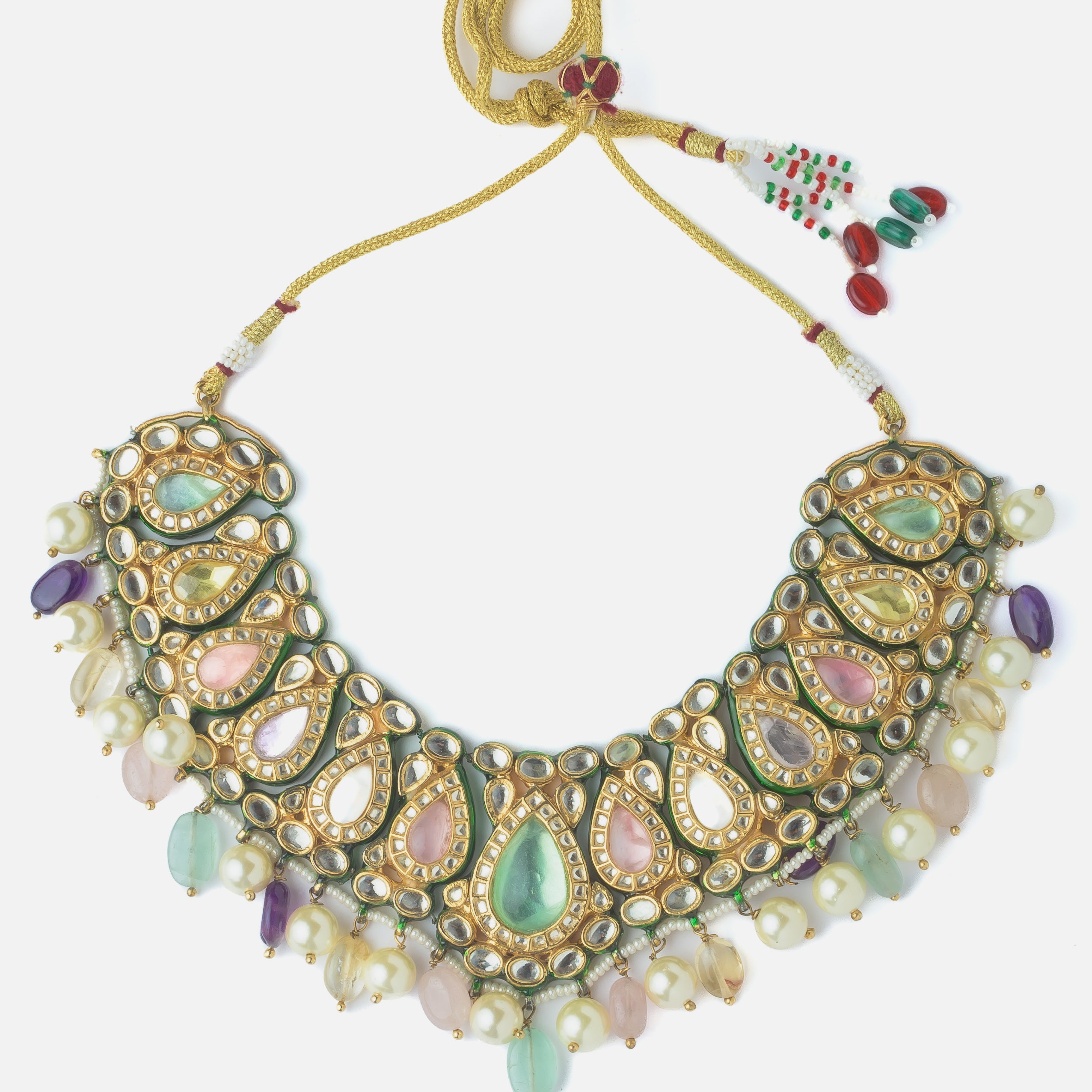 Gold Plated Multicolored Womens Kundan Choker Necklace
