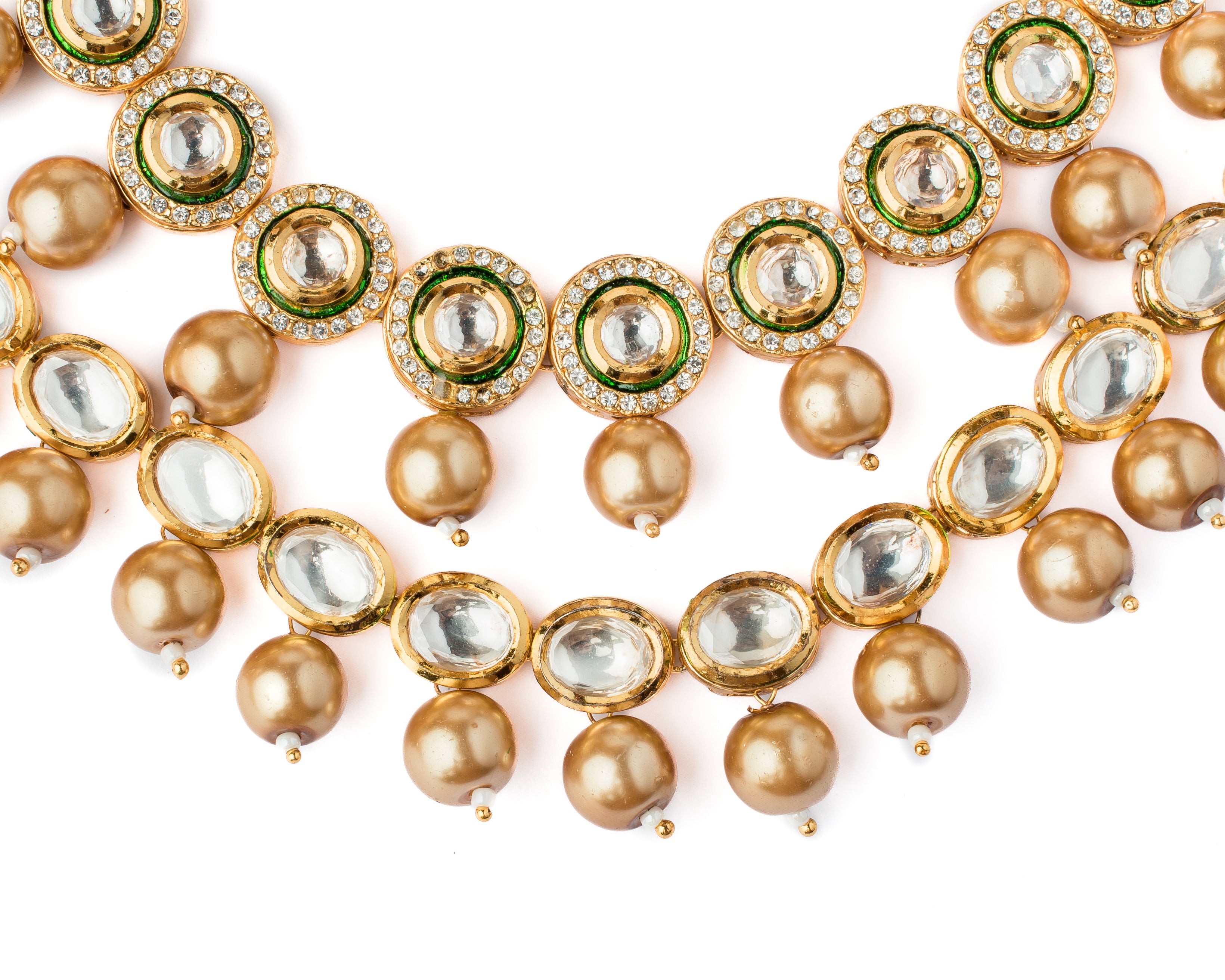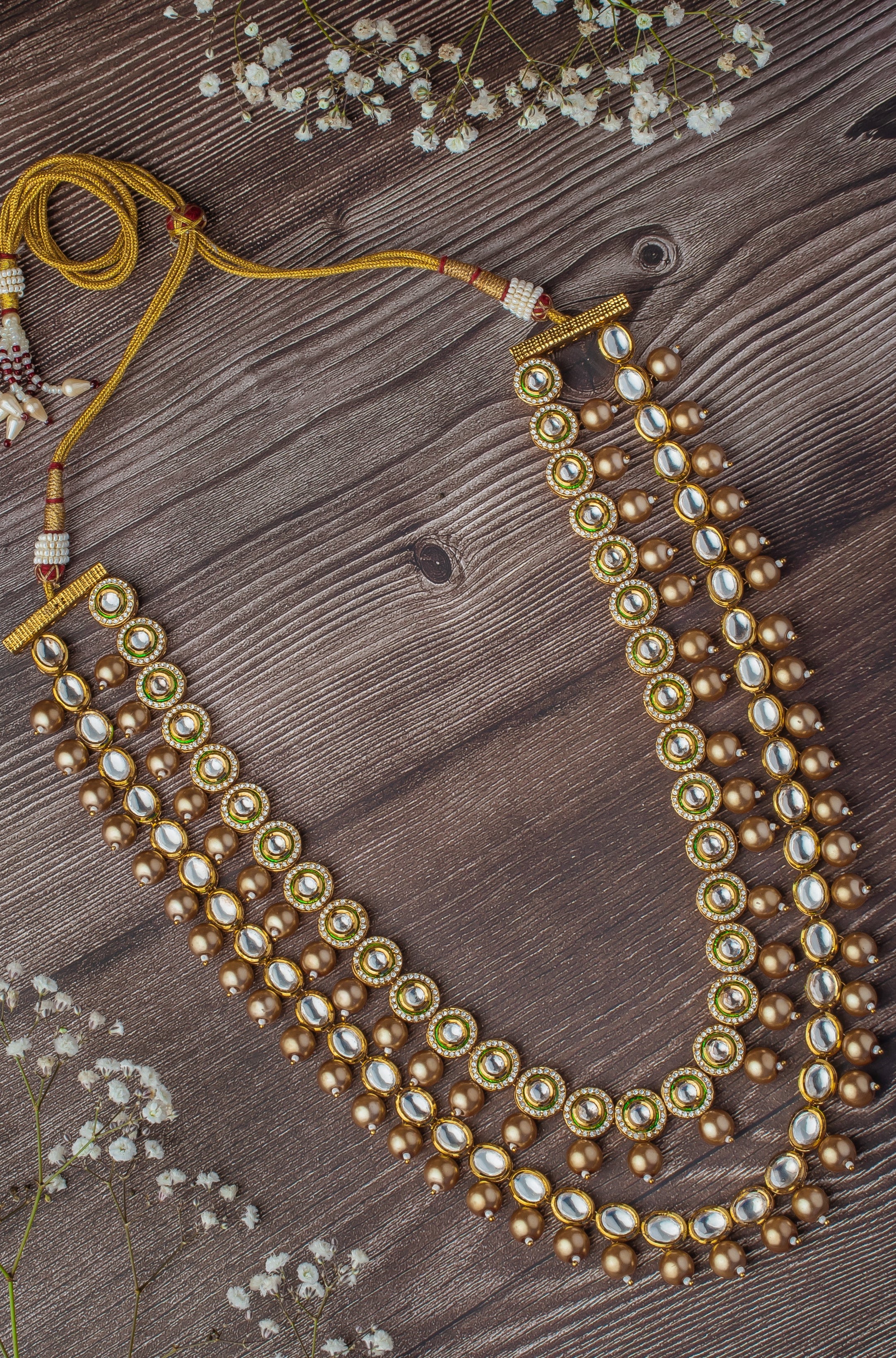 Inaayat Gold Plated Womens Kundan, Polki Long Necklace set (Freesize)