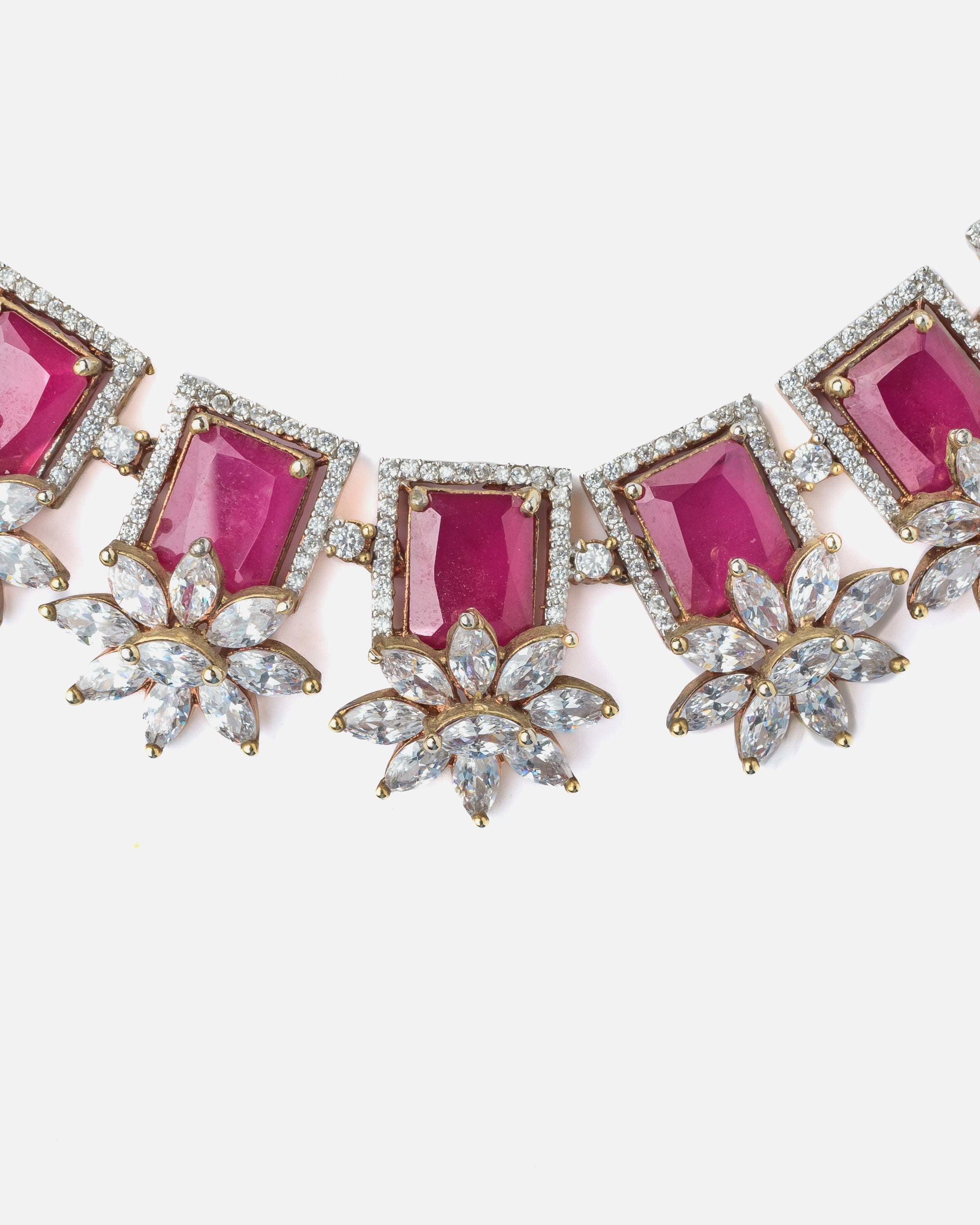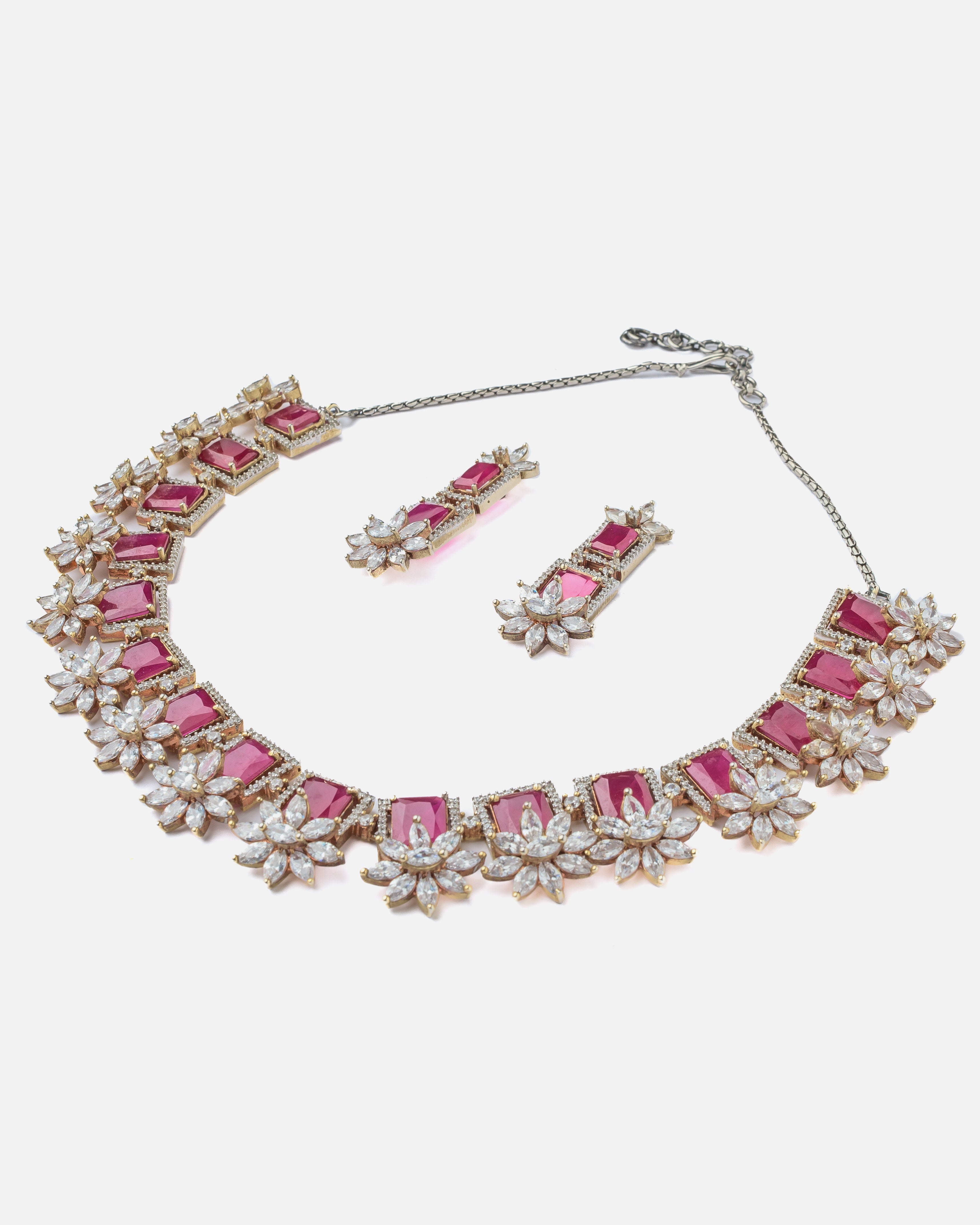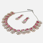 Florence Silver Plated Pink Womens Short Necklace Set with Pair of Earrings