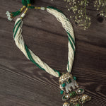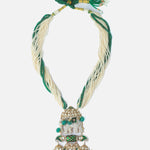 • Beaded Strand Design: Features twisted strands of white and green beads for a rich, layered look.