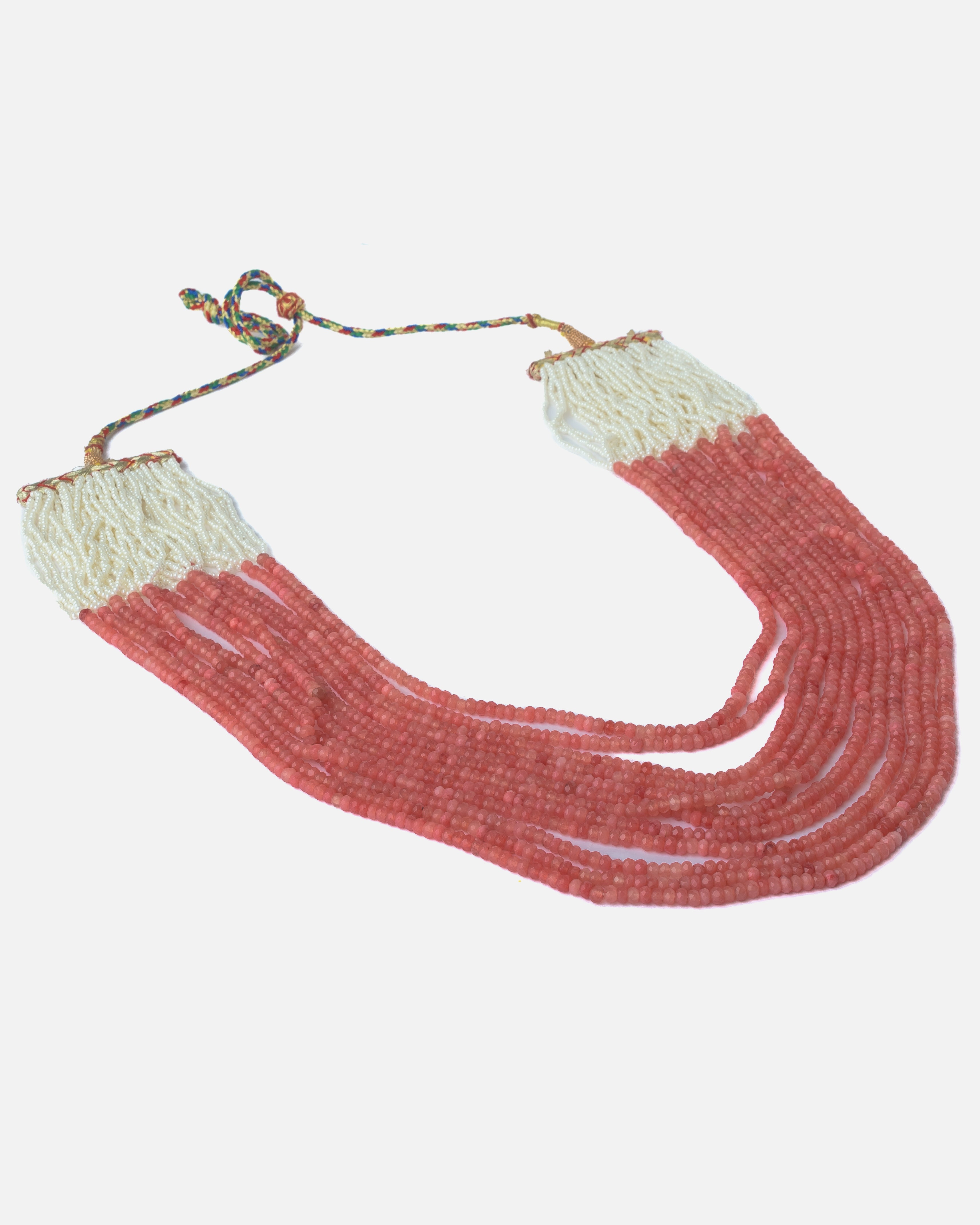 Beautiful handcrafted beaded necklace featuring multiple strands of red and off-white seed beads. A perfect blend of ethnic charm and boho elegance, ideal for festive, casual, or Indo-western looks.