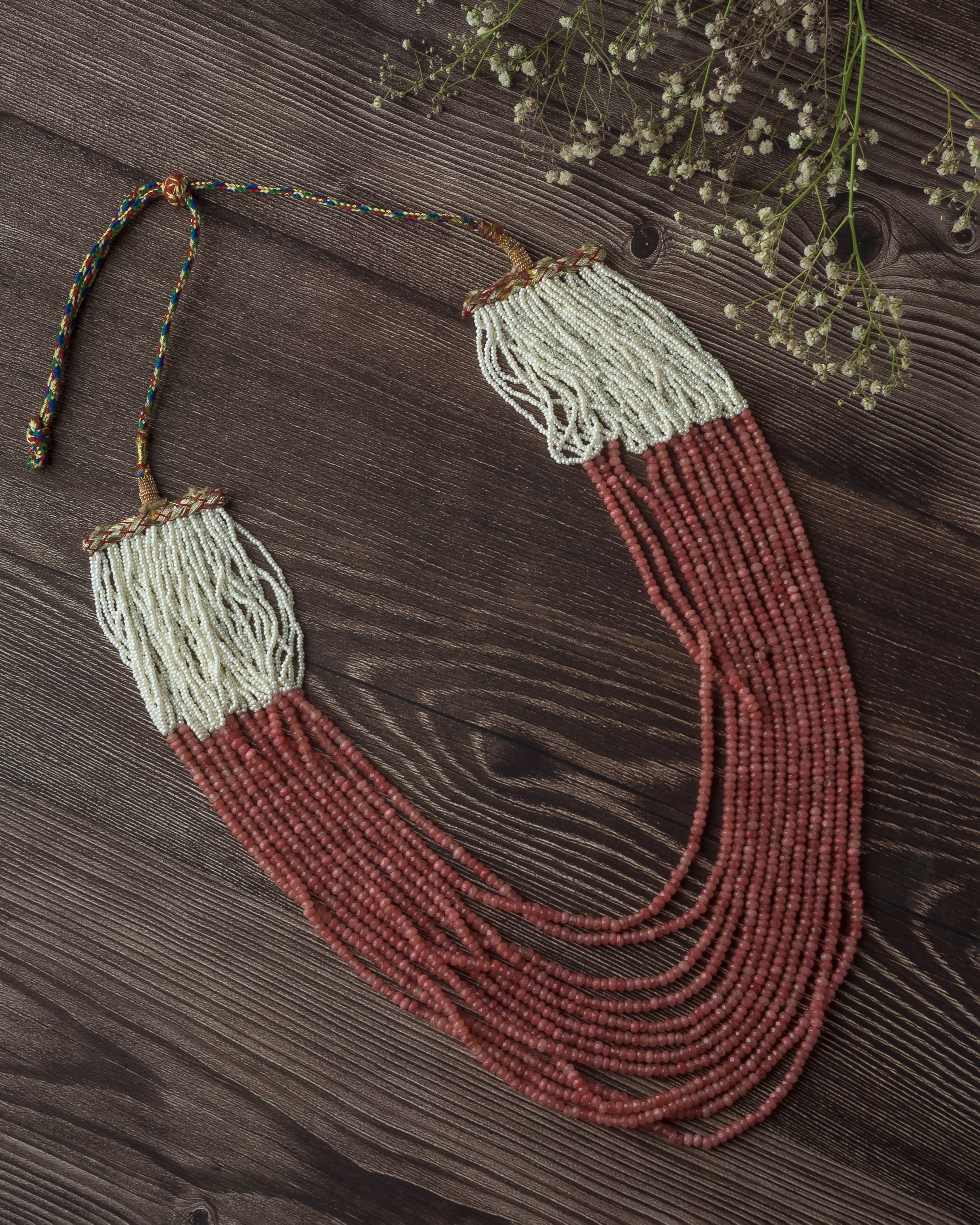 - Handcrafted Design: Features intricate, hand-strung seed beads in a dual-tone color scheme—ivory white transitioning into a rich terracotta red.