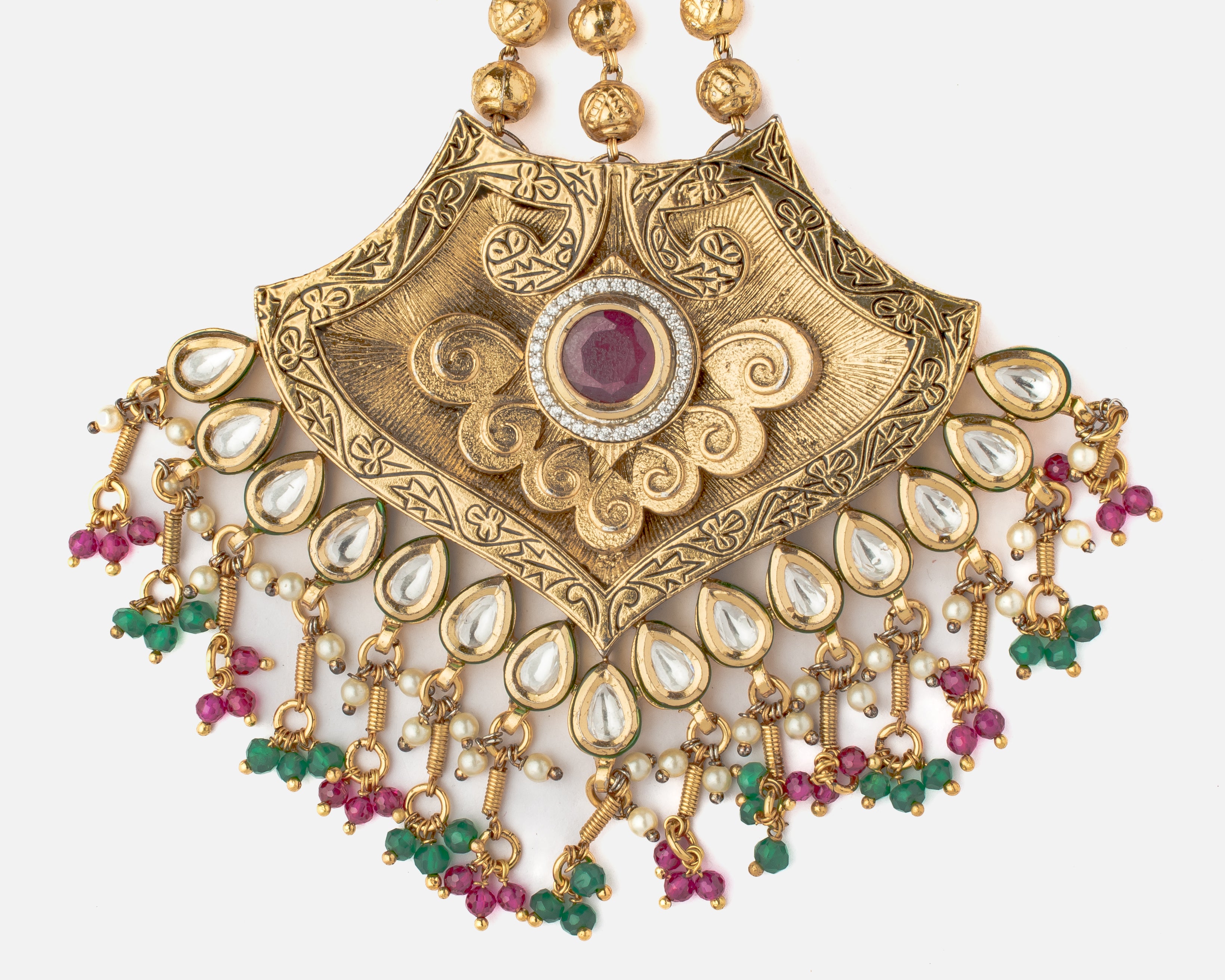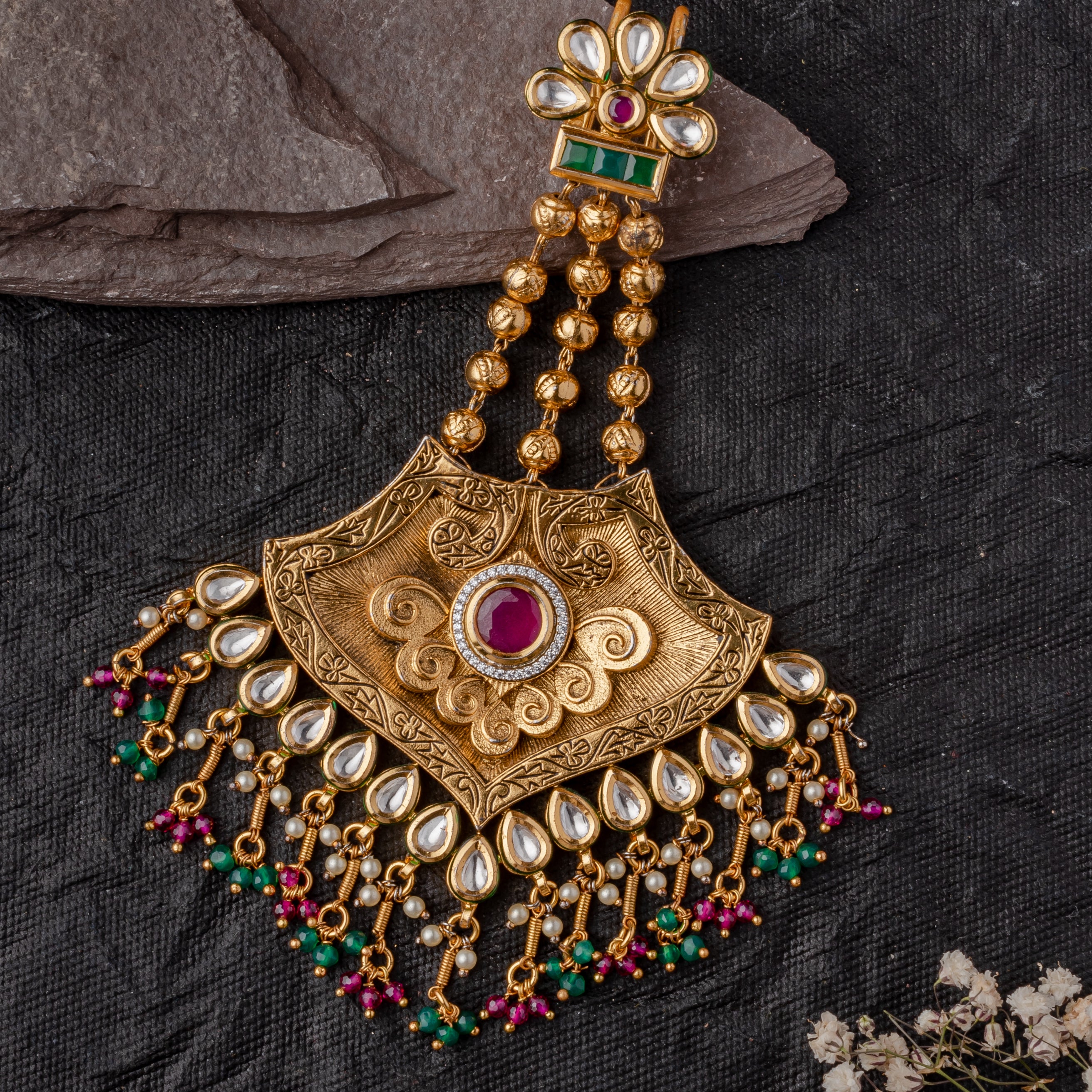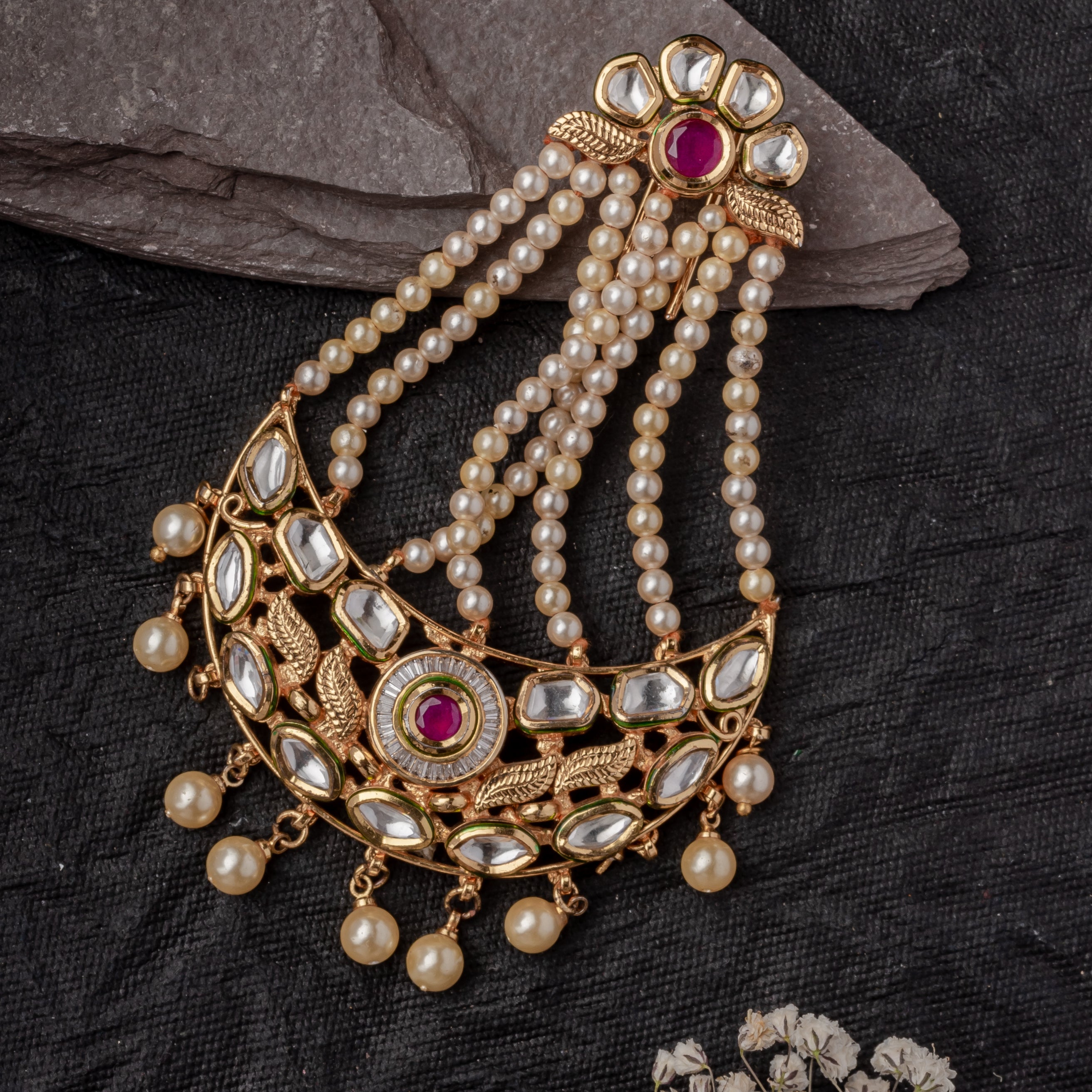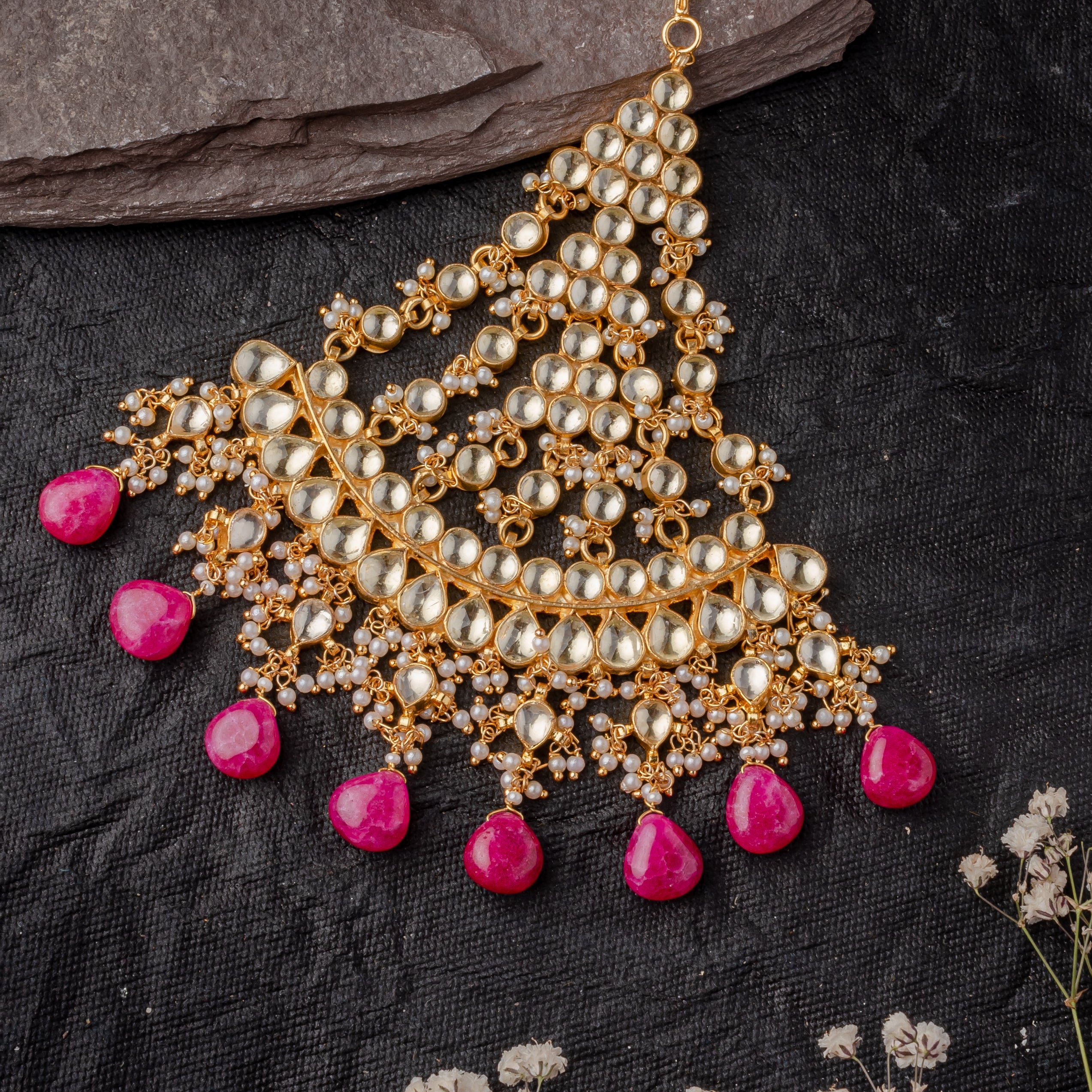 Gold Plated Pink Womens Kundan, Polki Paasa